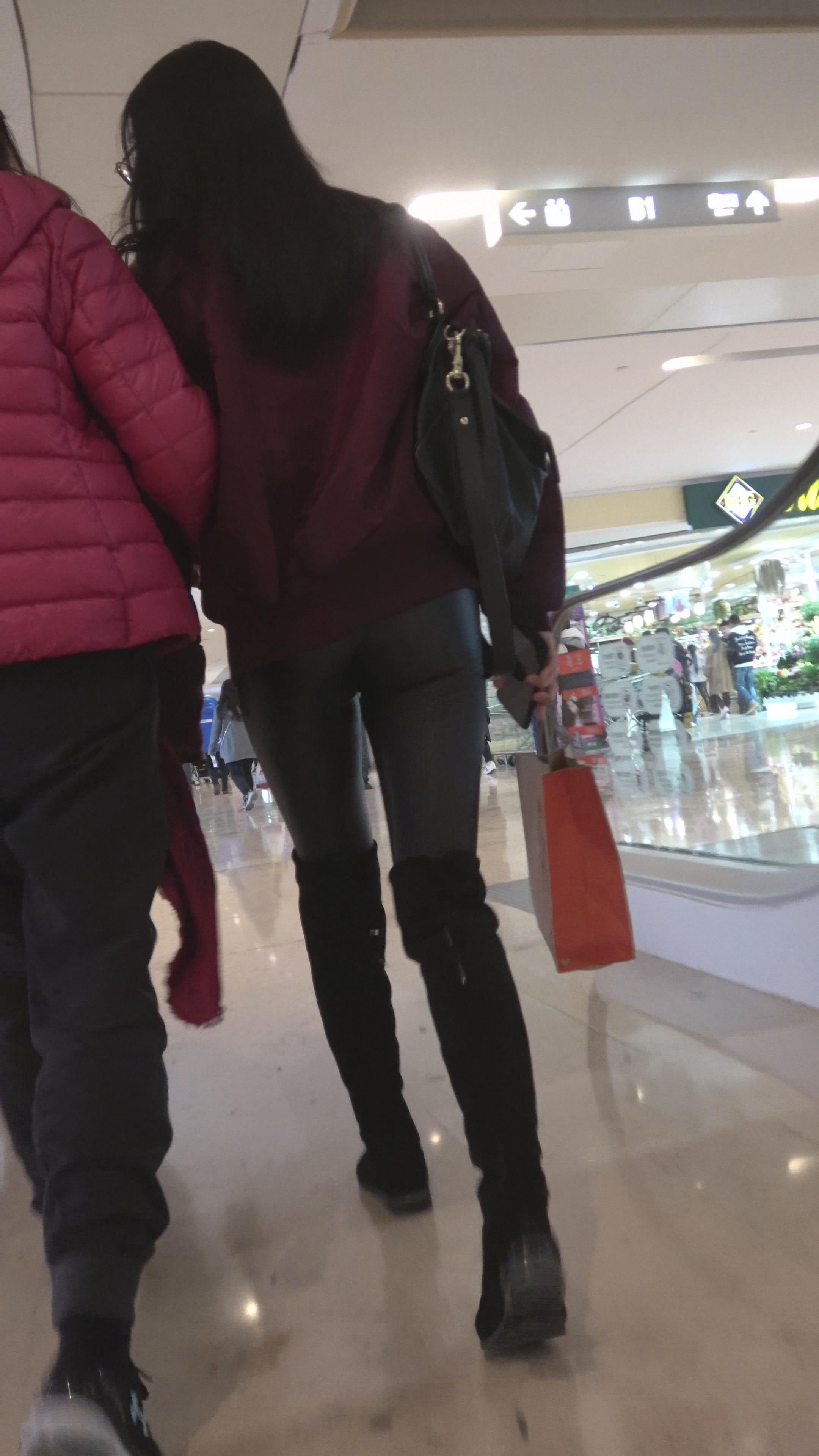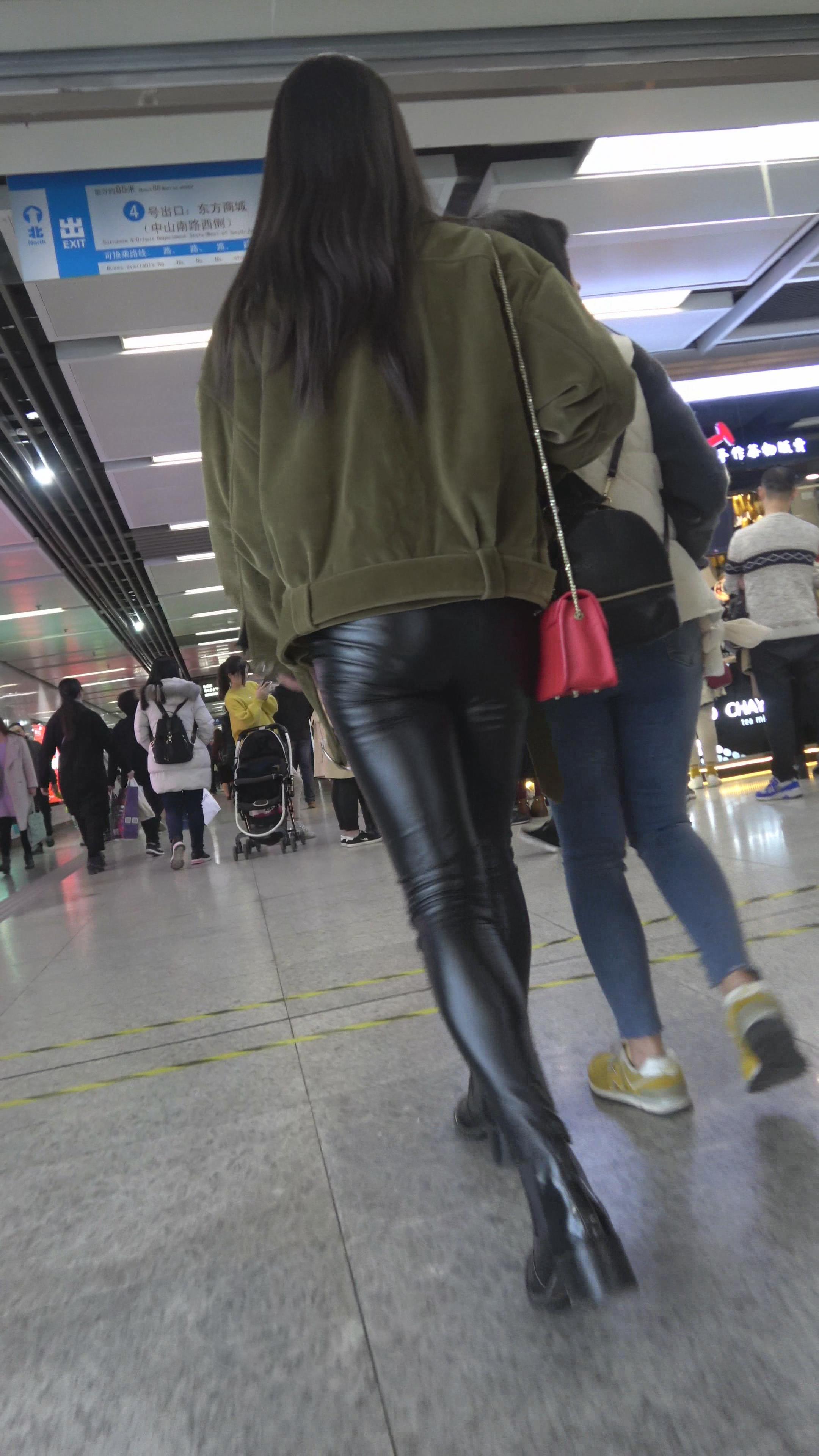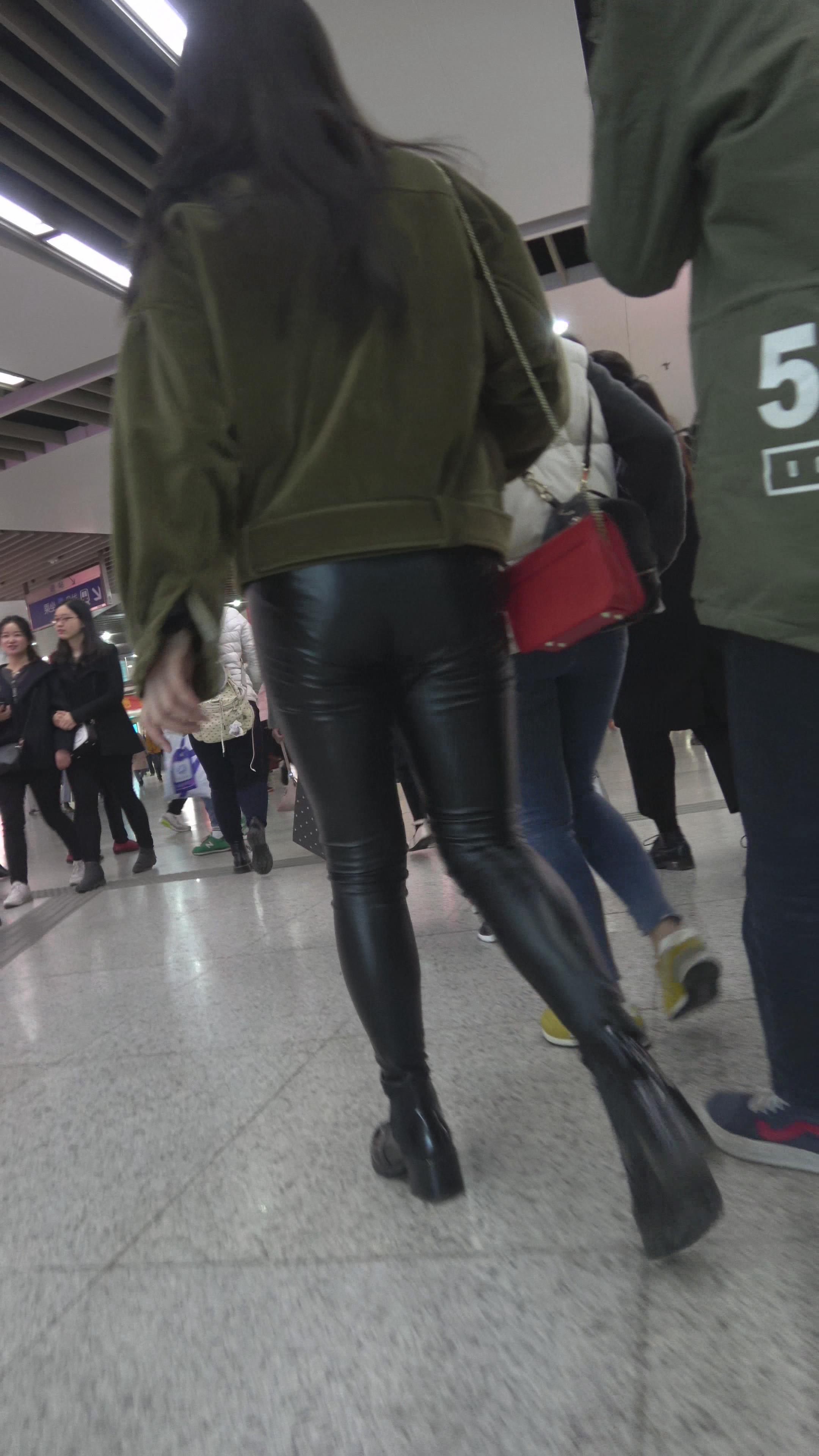 4K 酒红色外套街拍紧身皮裤眼镜美女 编号3138 |