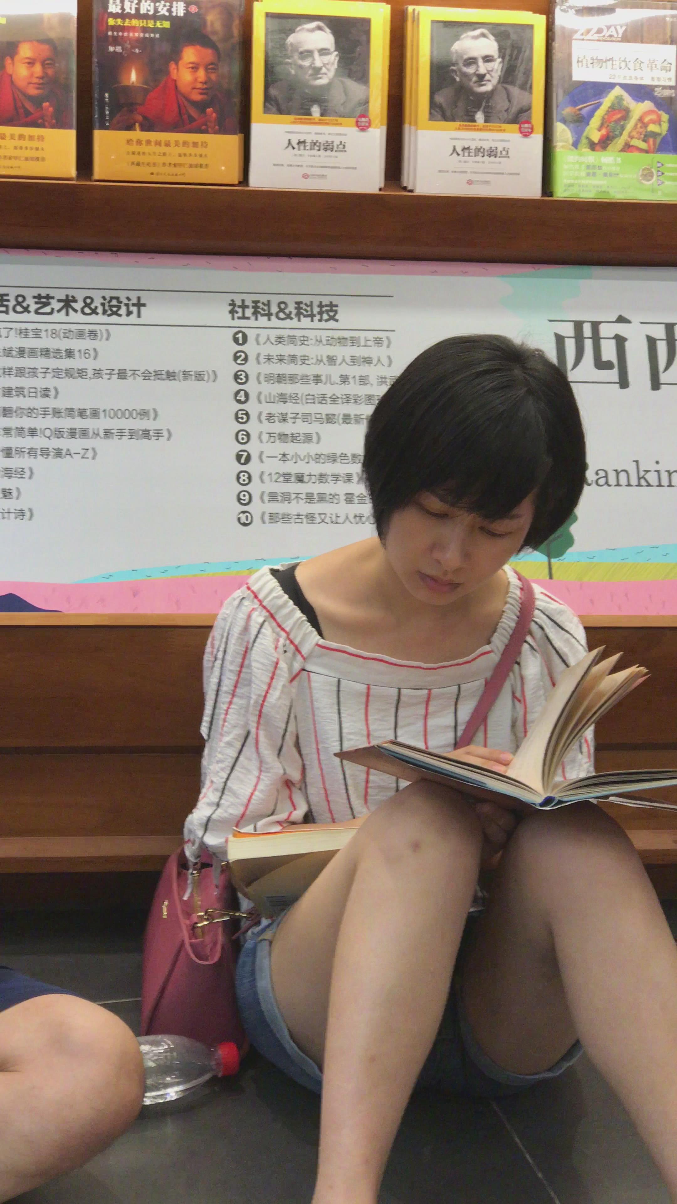 4K 周末图书馆认真看书的短发美少妇 编号3155 |