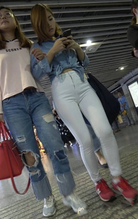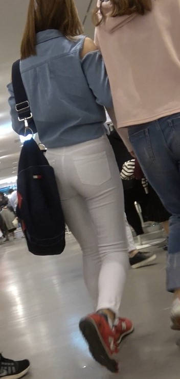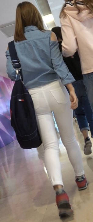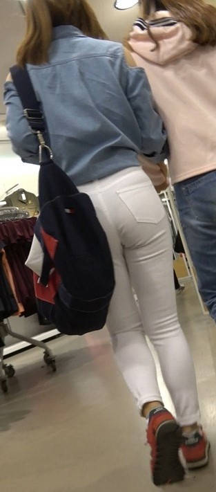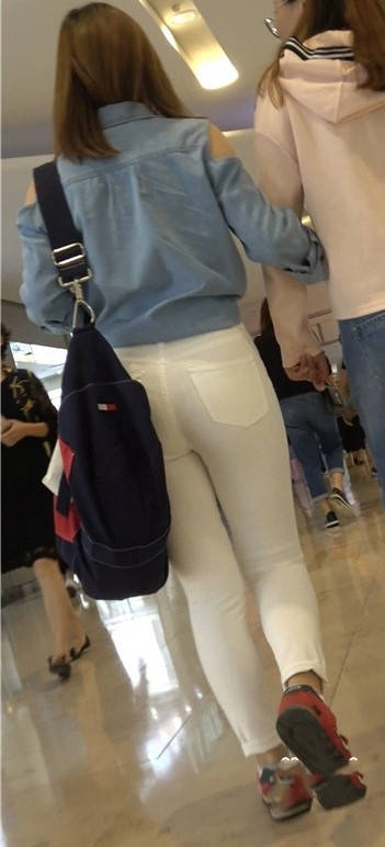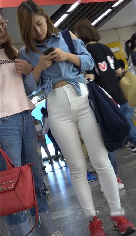 4K红色运动鞋街拍紧身白裤美臀漂亮美女小姐姐 编号9450 |