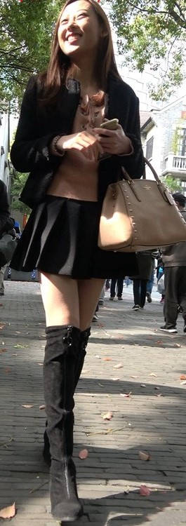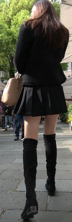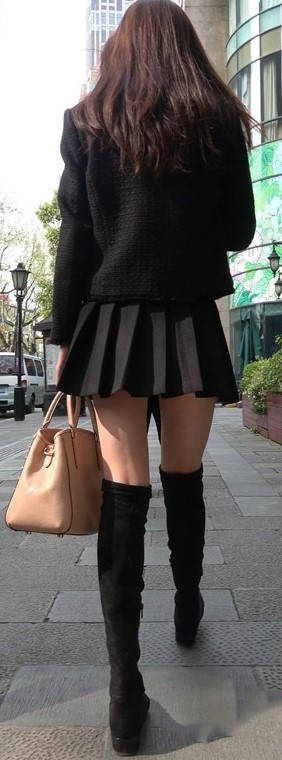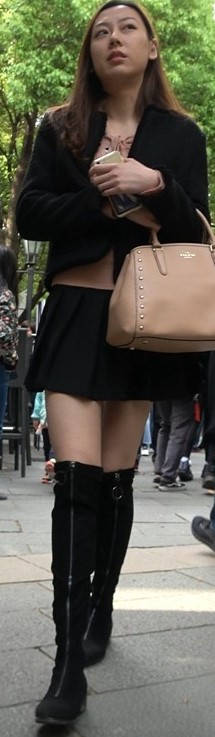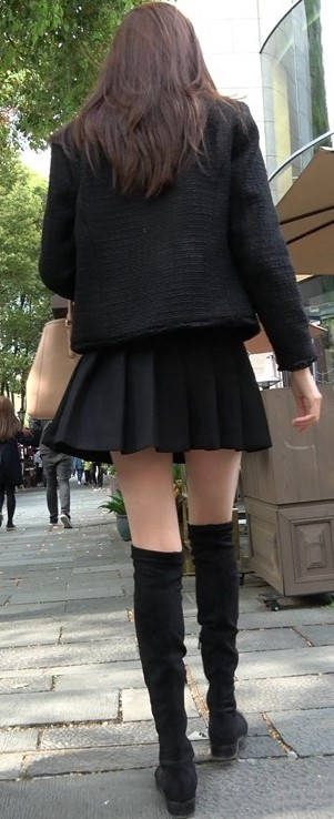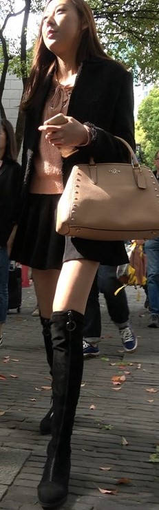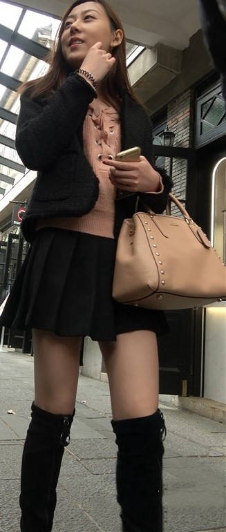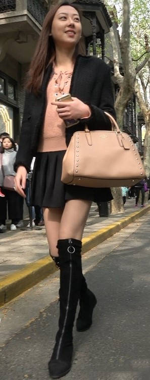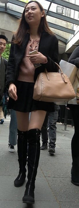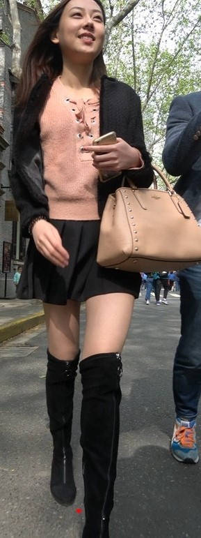 4k-黑色短裙长筒靴粉衣甜美街拍美女 编号9453 |