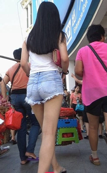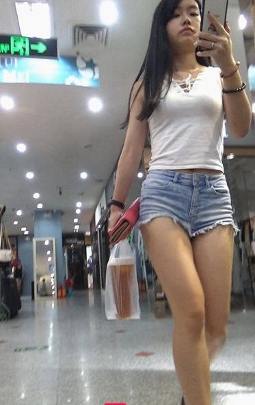 牛仔热裤圆润翘臀极品长发美女 编号9107 |