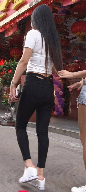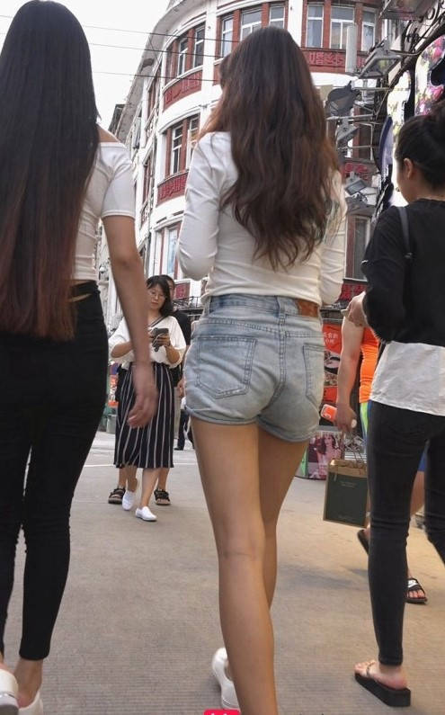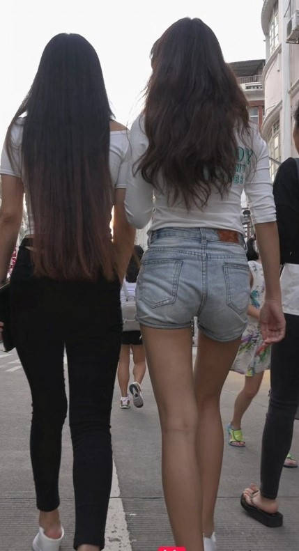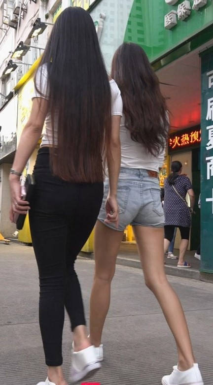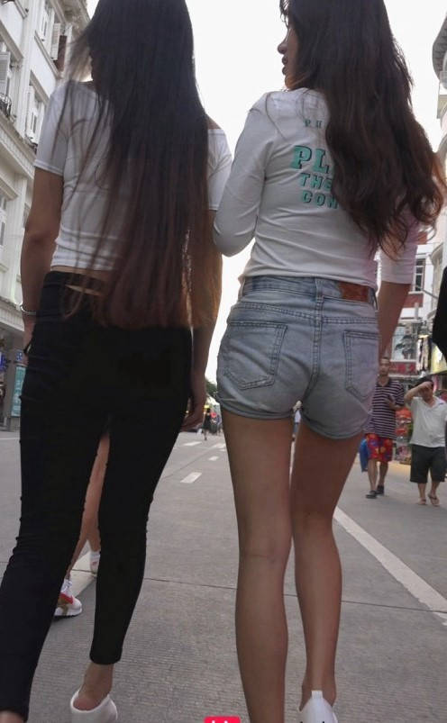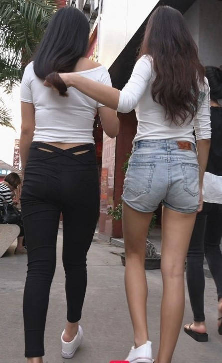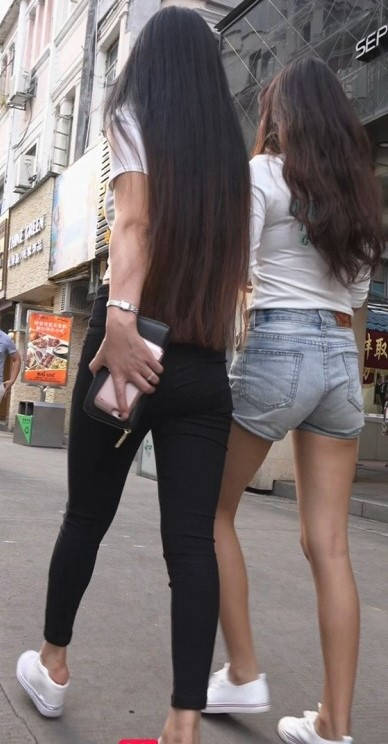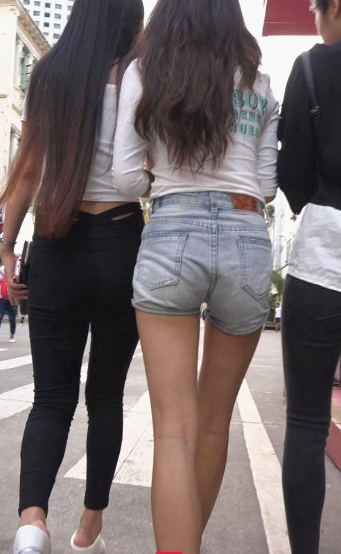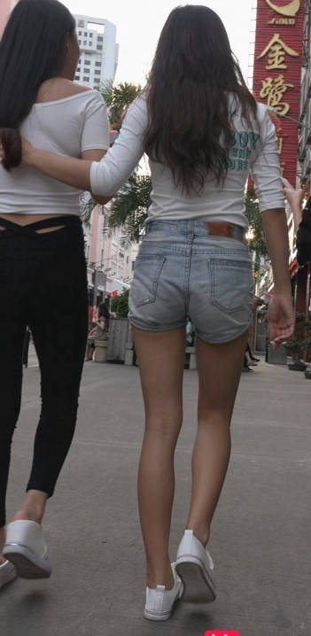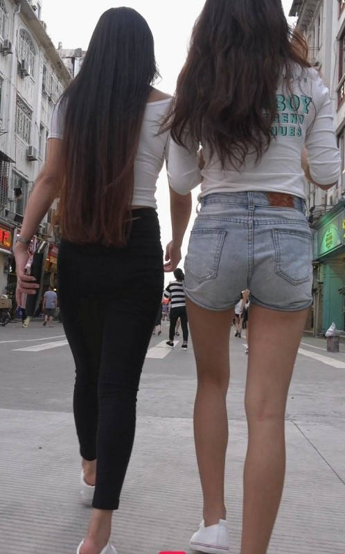 包臀黑裤牛仔热裤两美女在逛街 编号9165 |