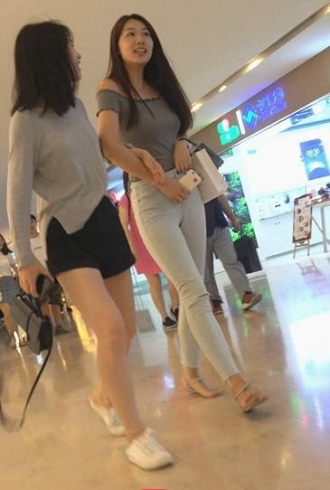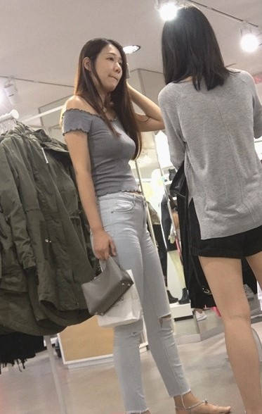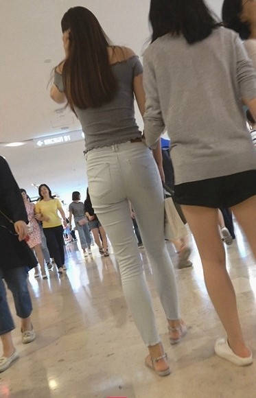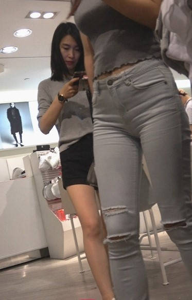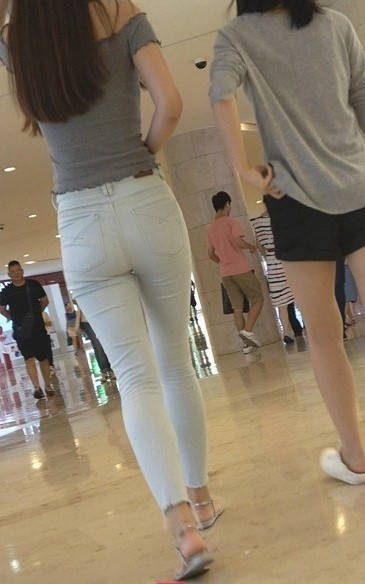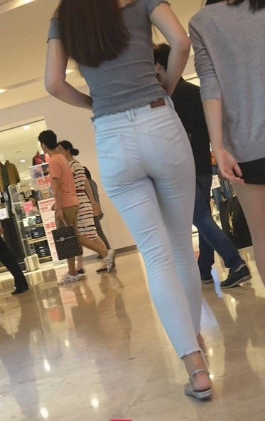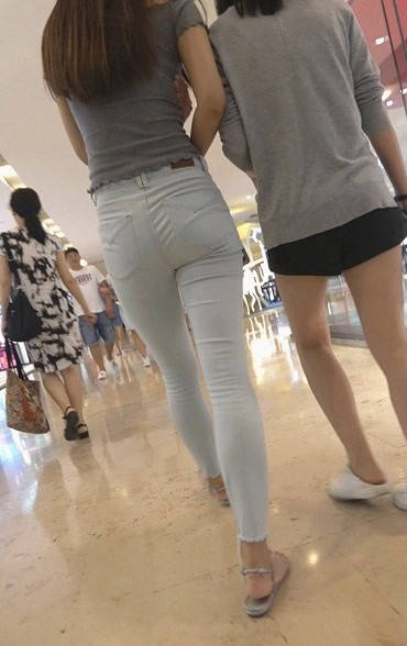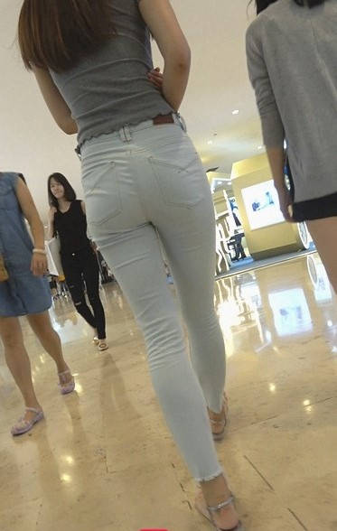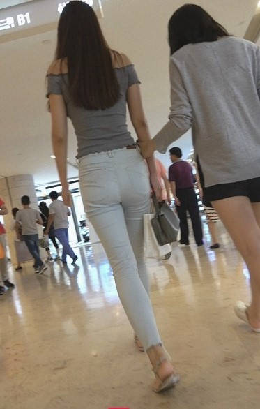 4K-商场浅灰紧身牛仔裤圆润翘臀长发美女 编号9311 |