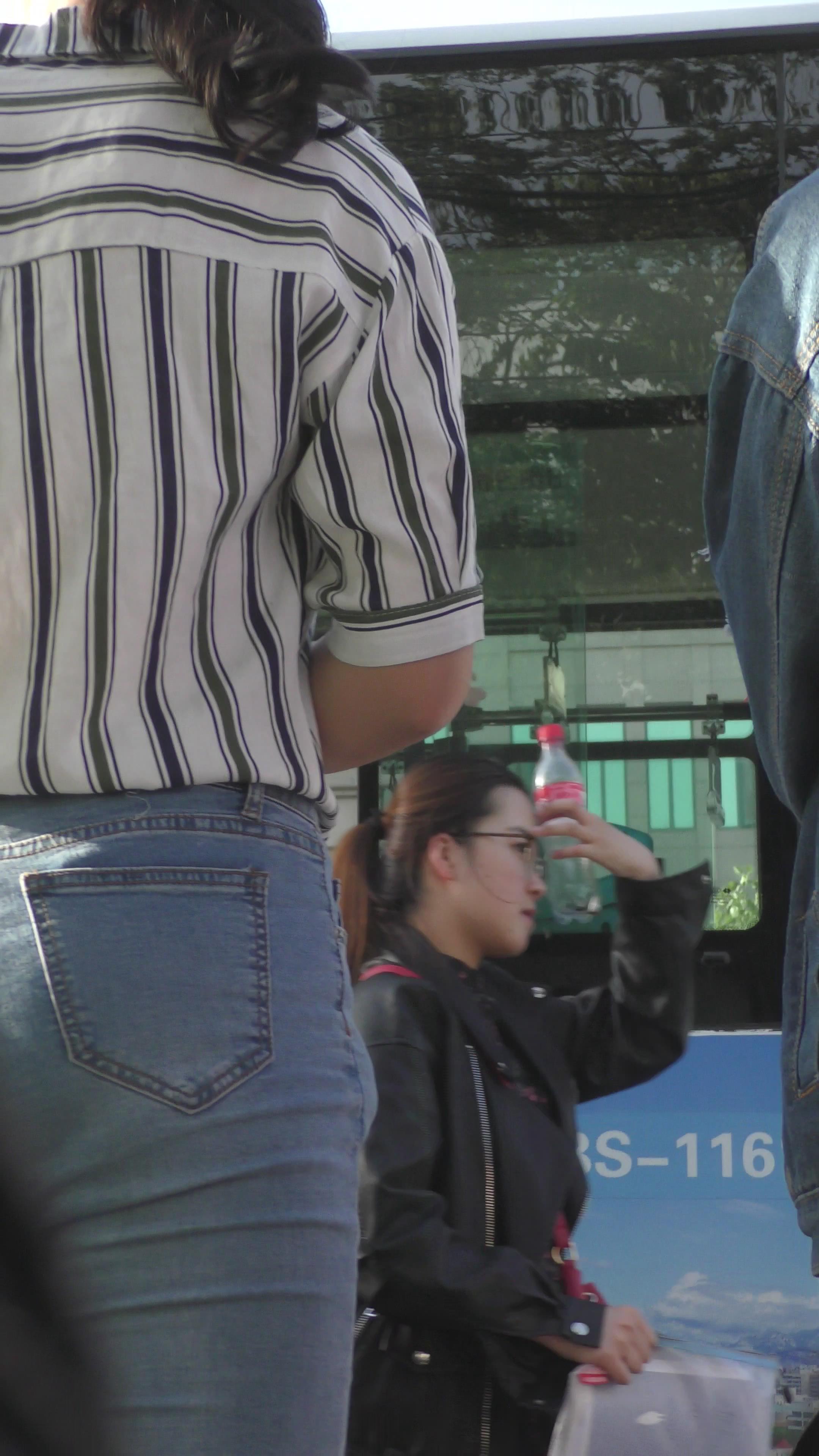 4K 街拍条纹衬衫紧身牛仔美女姐姐 编号3174 |