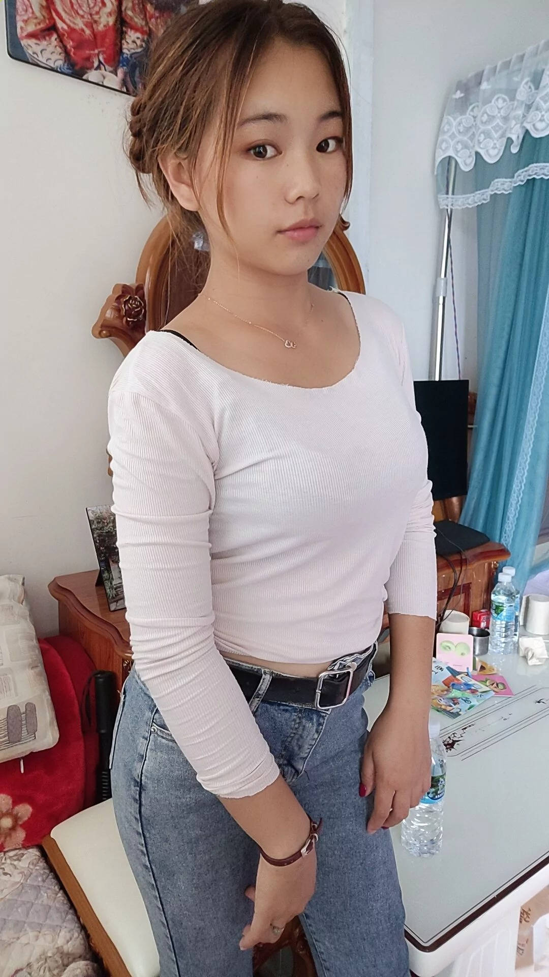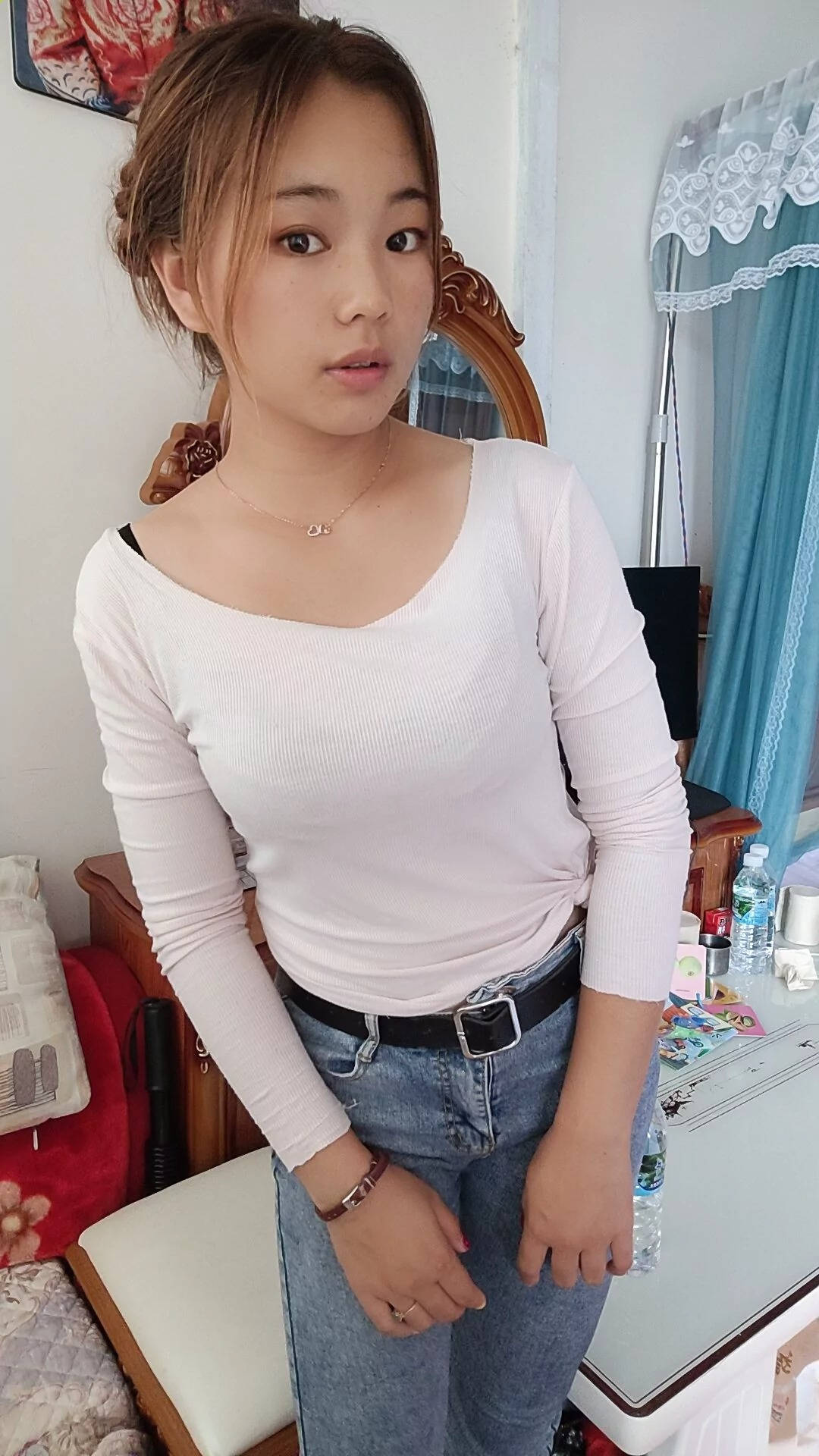 火车站候车的蓝色牛仔裤白色高跟尤物玩自拍SN131 |