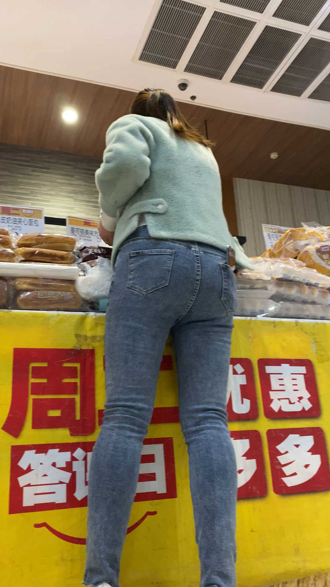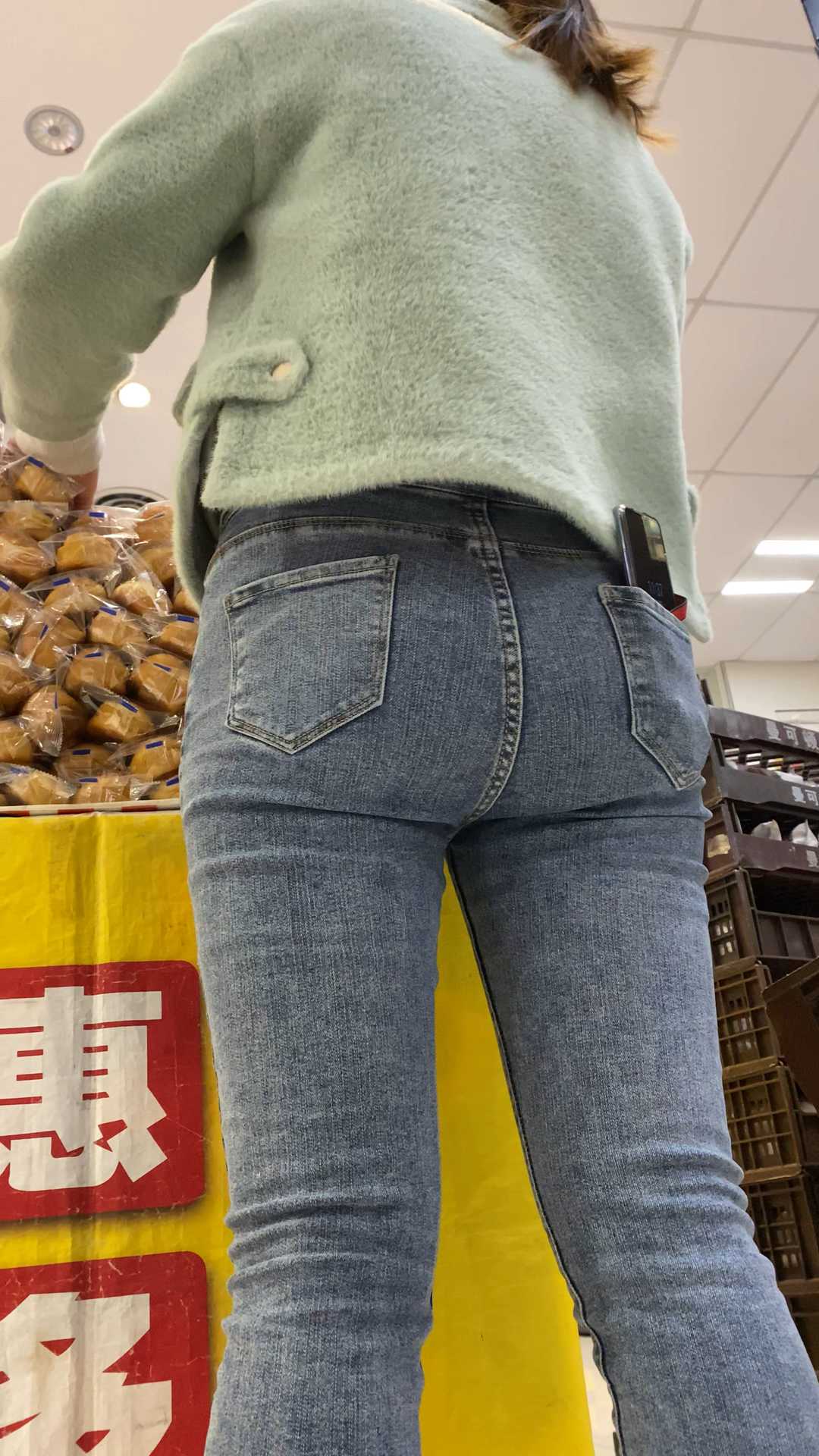 B1527商场包臀灰牛仔裤妹子 |
