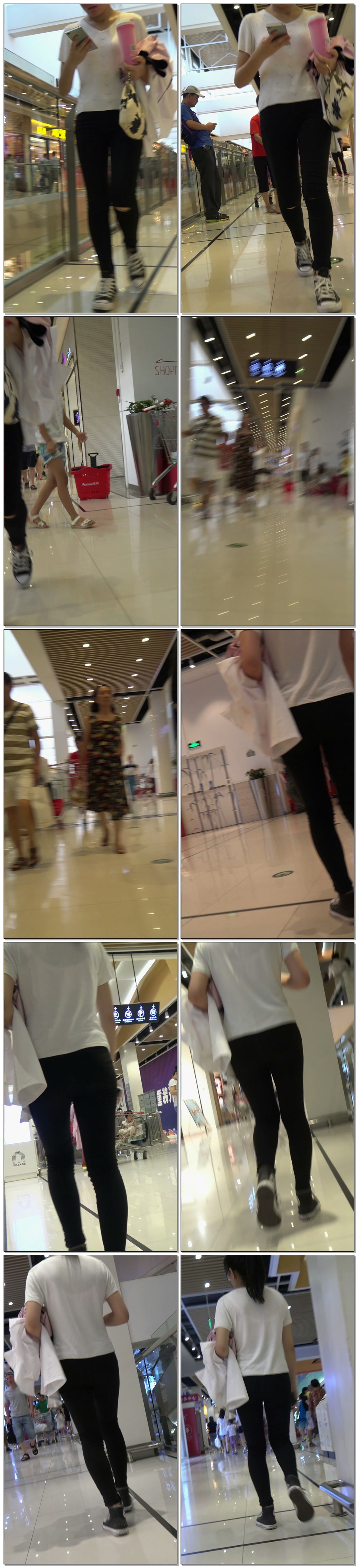 B1539商场打底黑裤玩手机 |