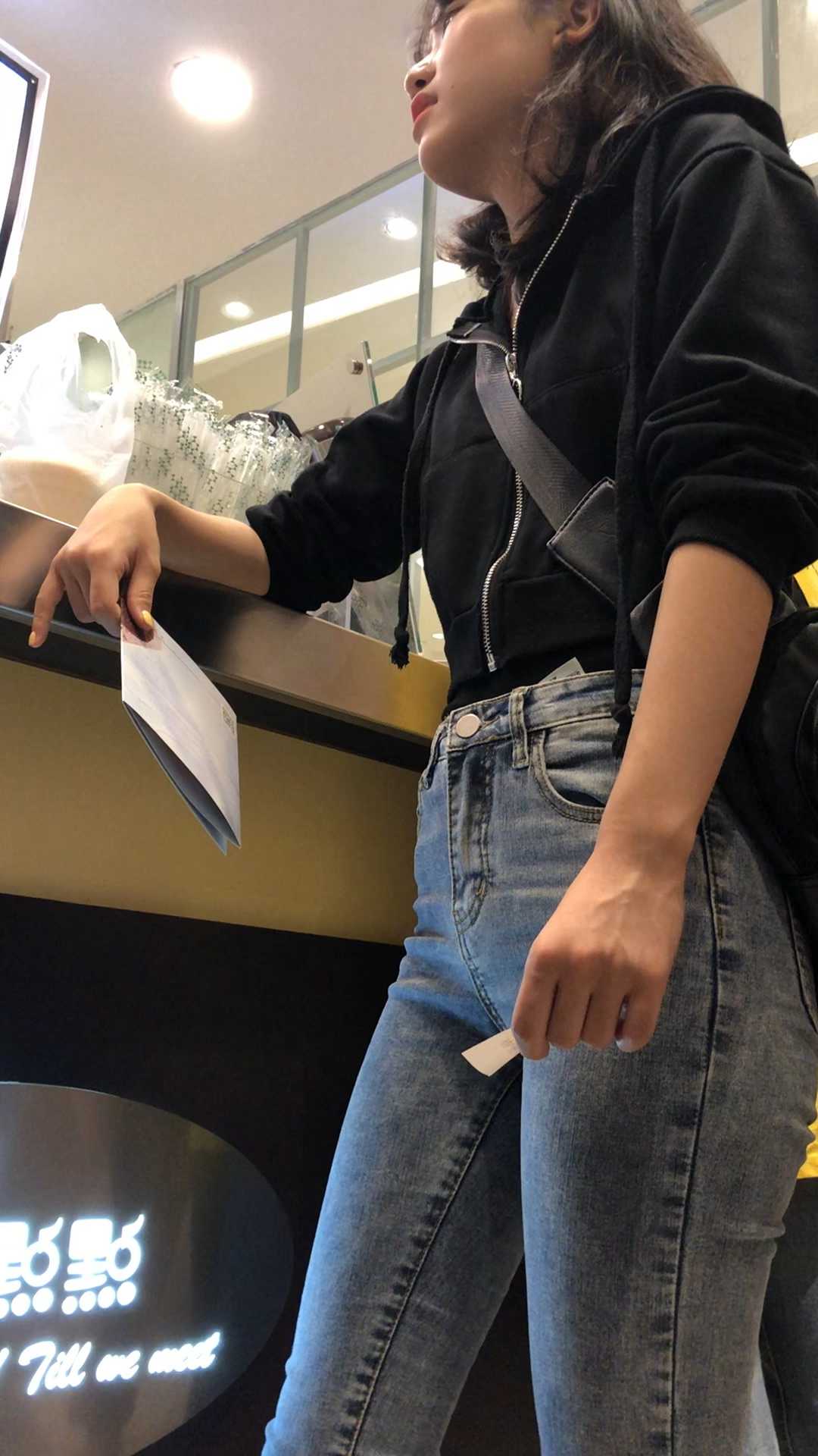 B1551商场紧身包臀牛仔小妹 |