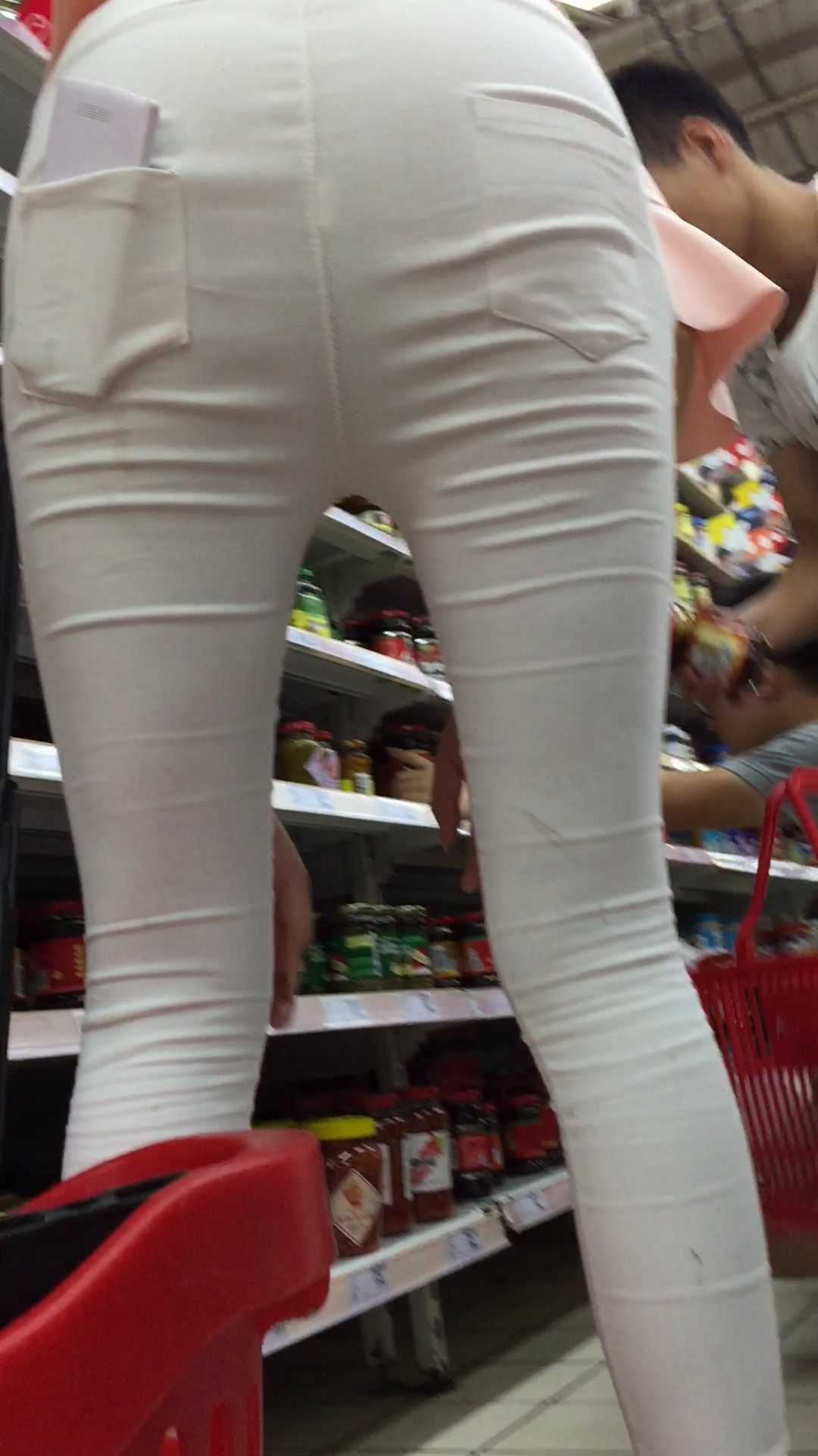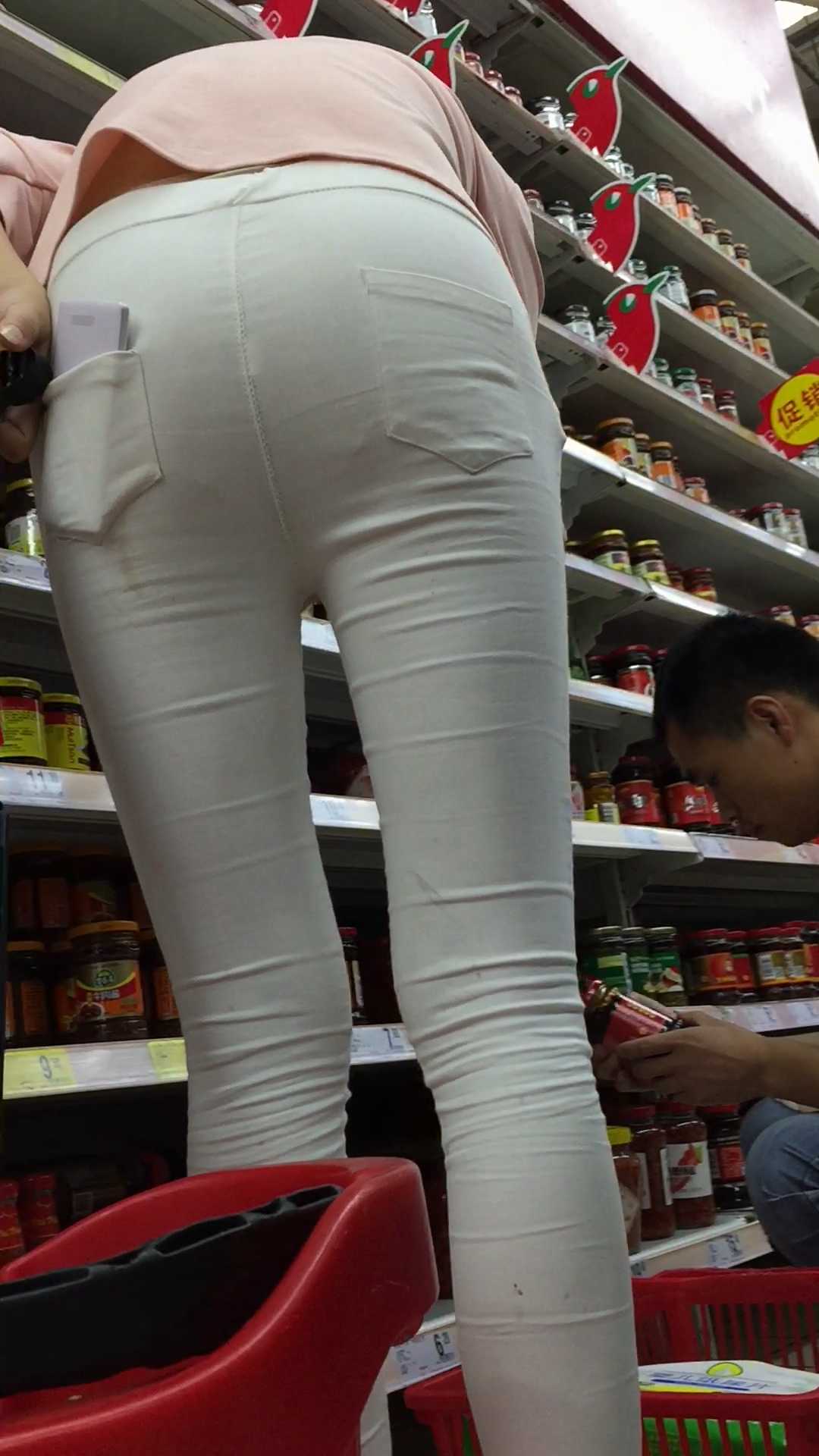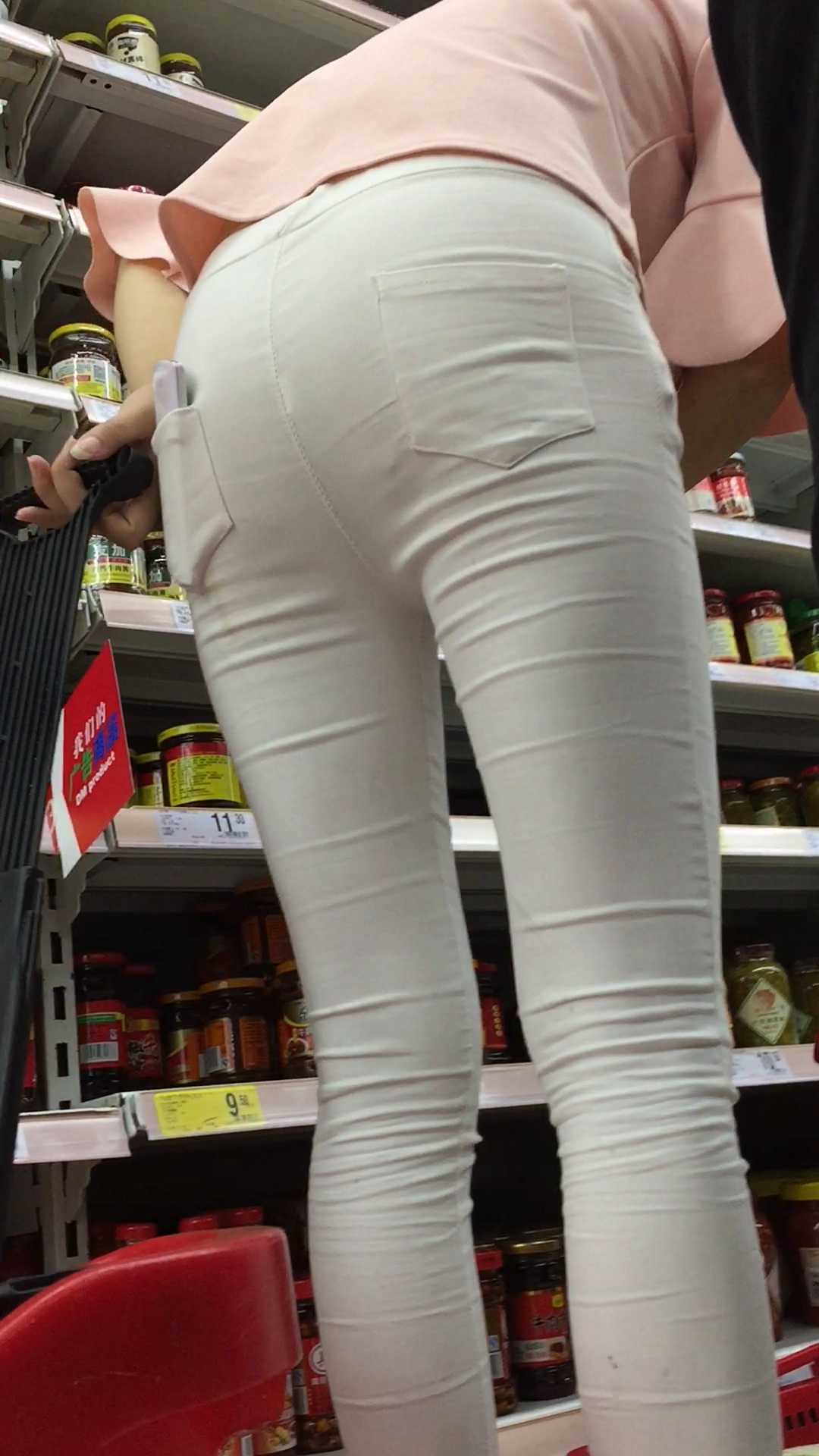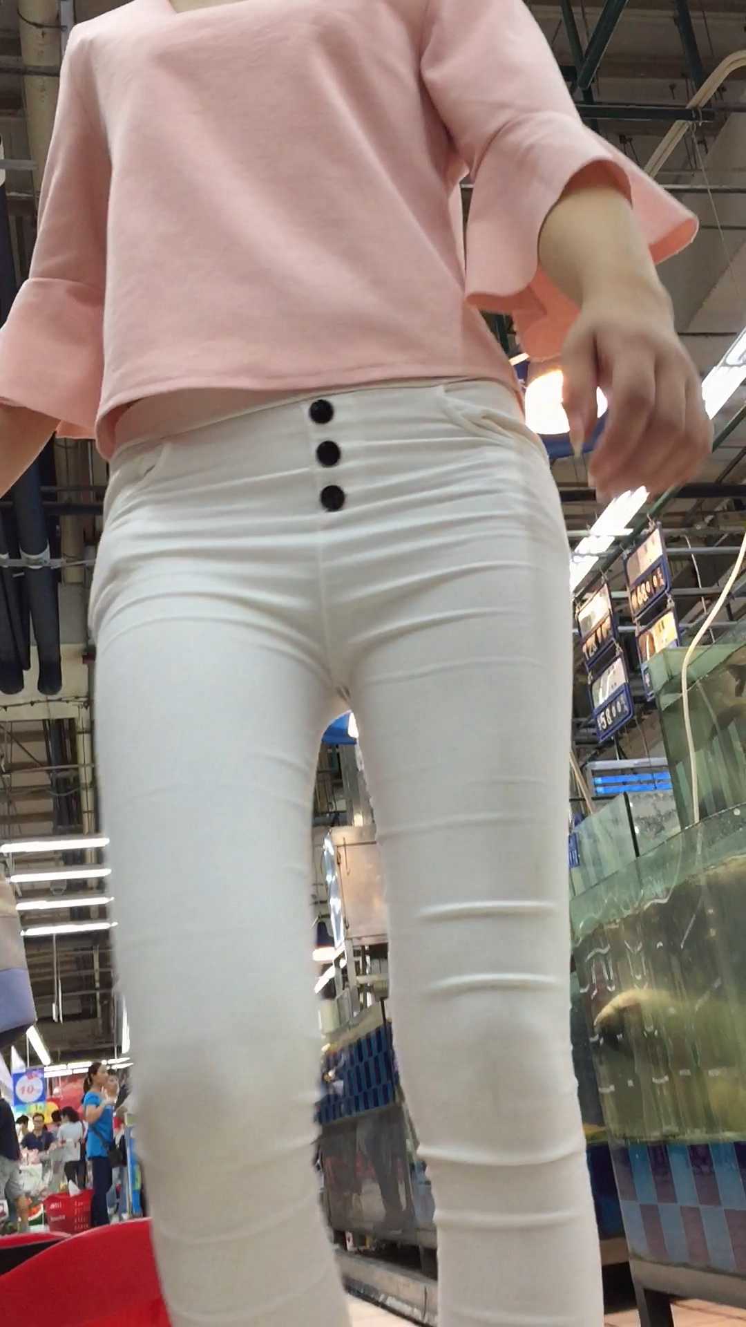 B1645性感白裤少女前后三角特写 |