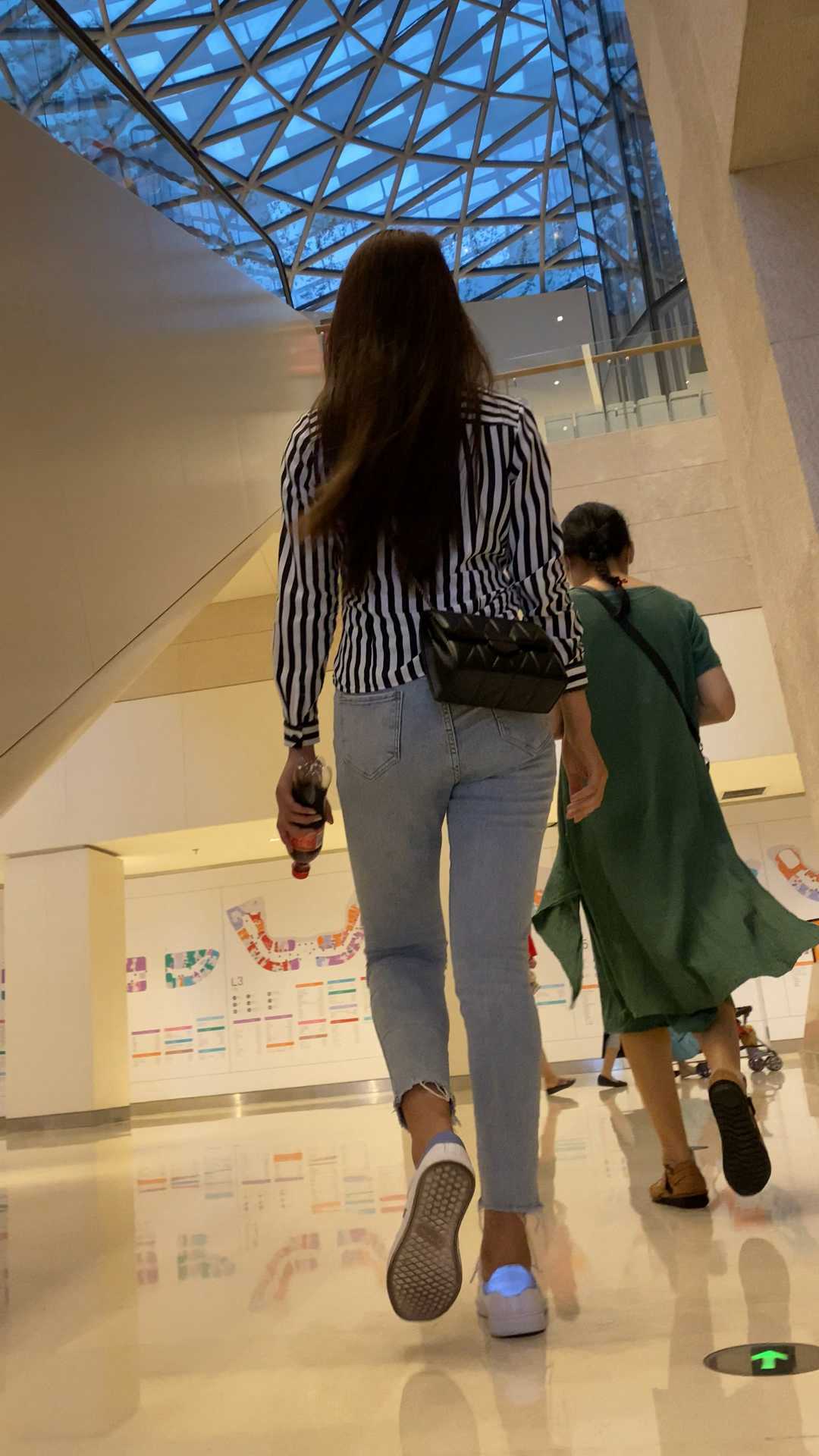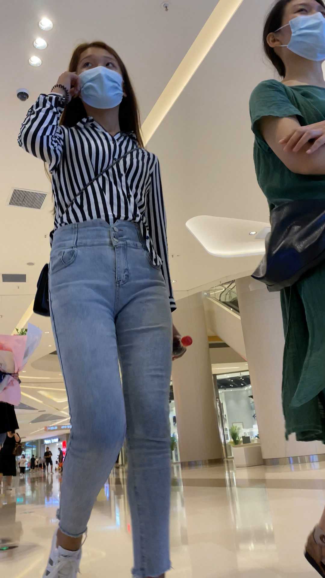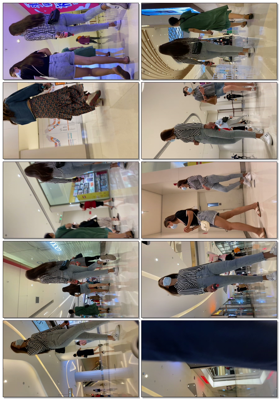 B981商场紧身灰牛仔长发妹子 |