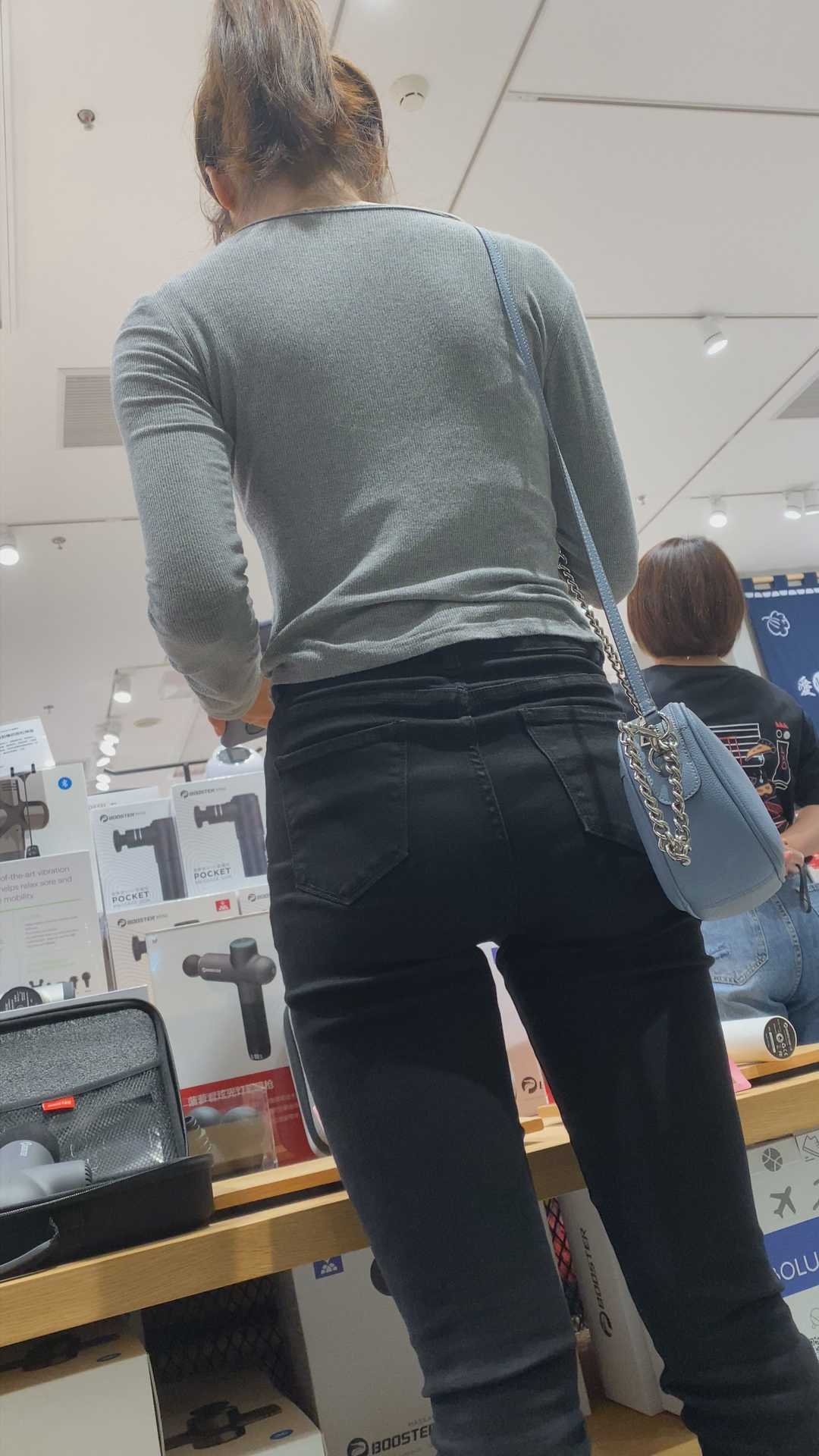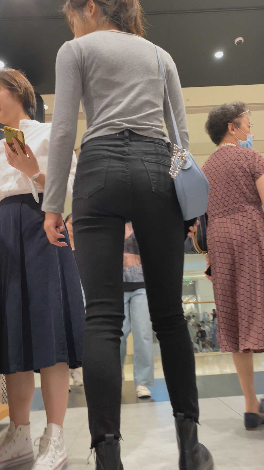B1319紧身黑裤紧臀会摆姿势 |