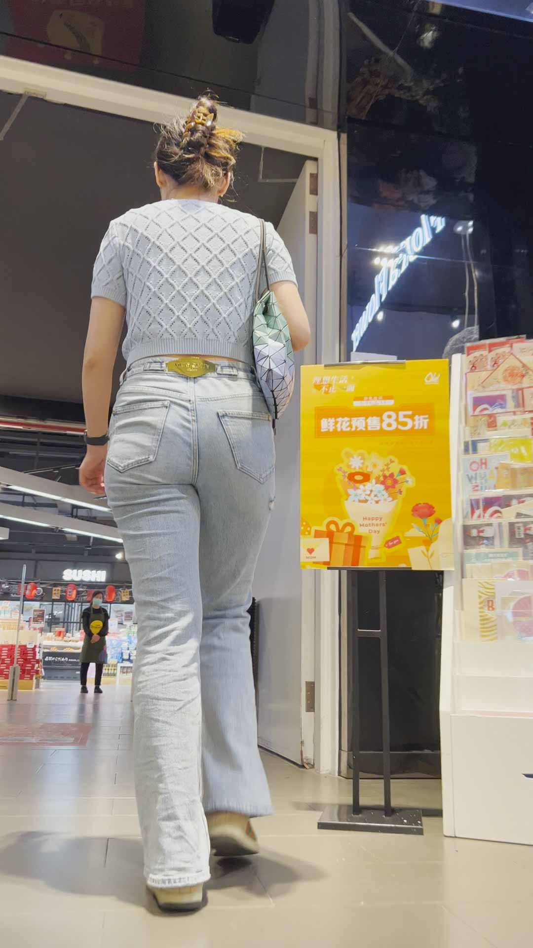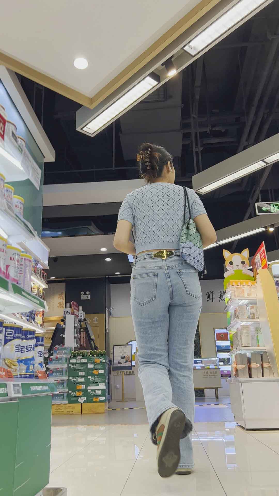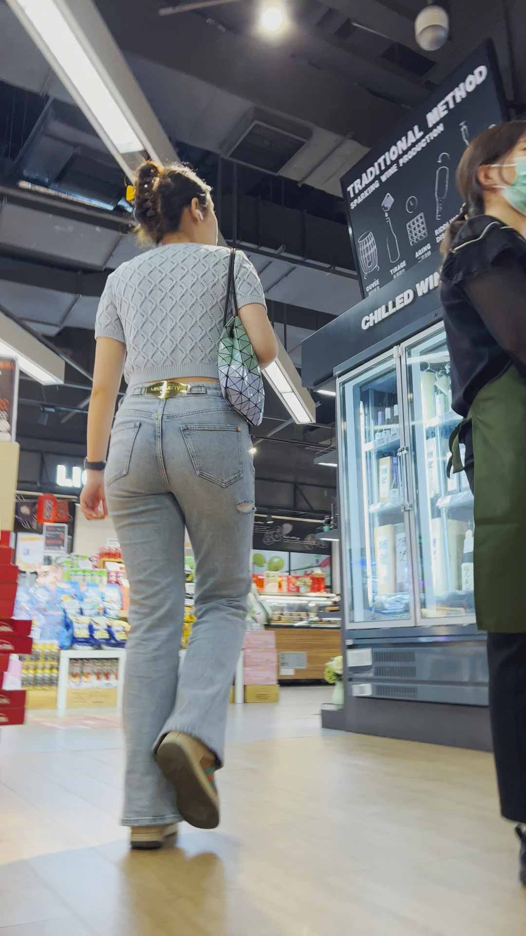 B1384饱满丰臀灰牛仔逛超市 |