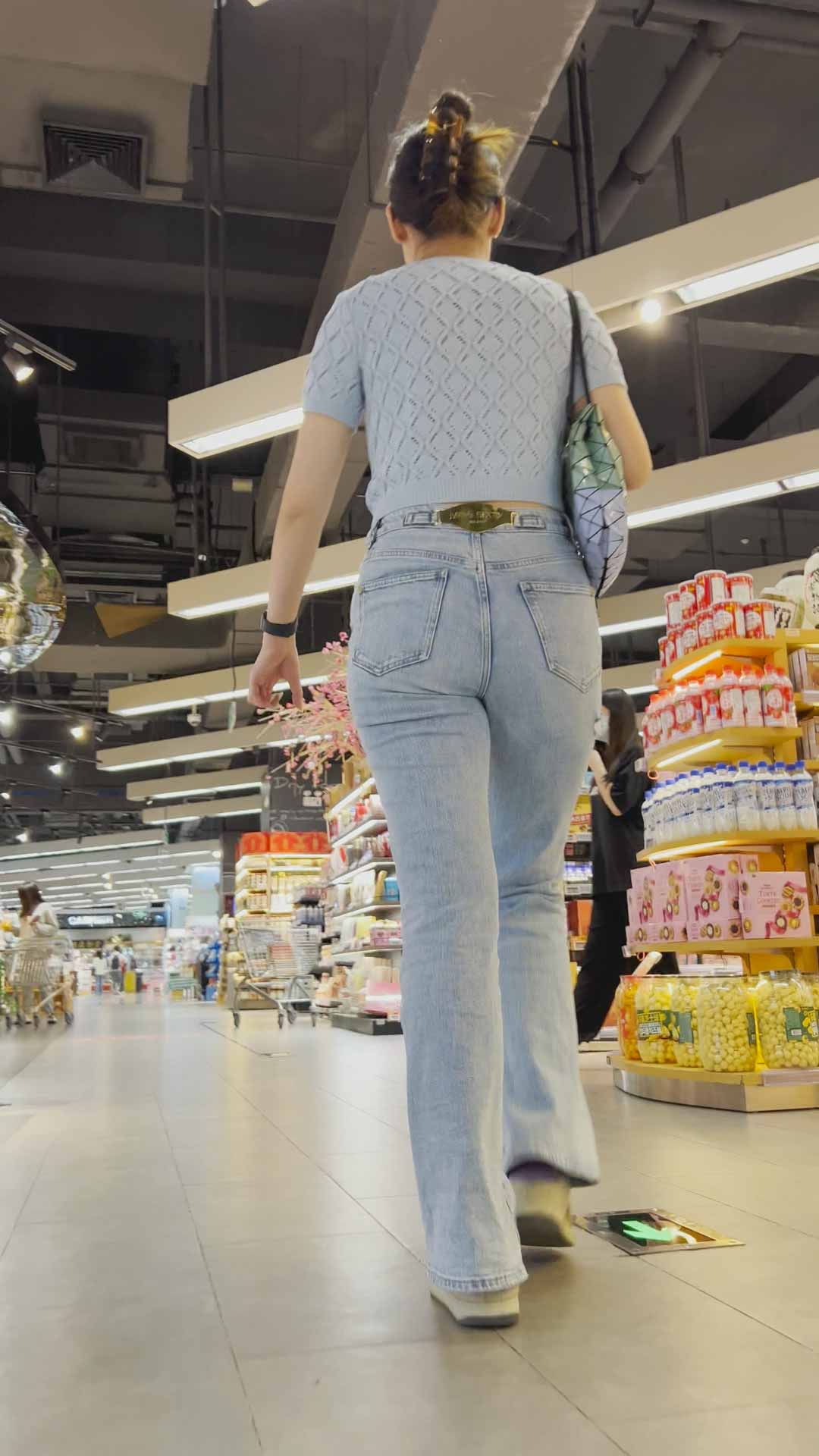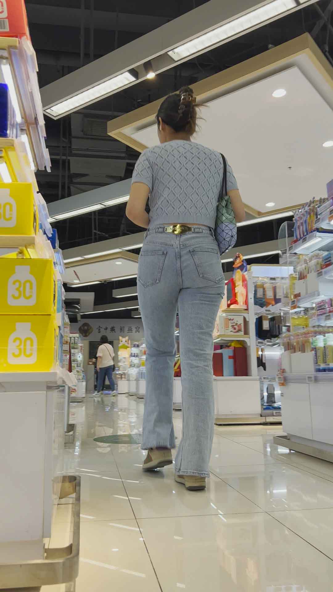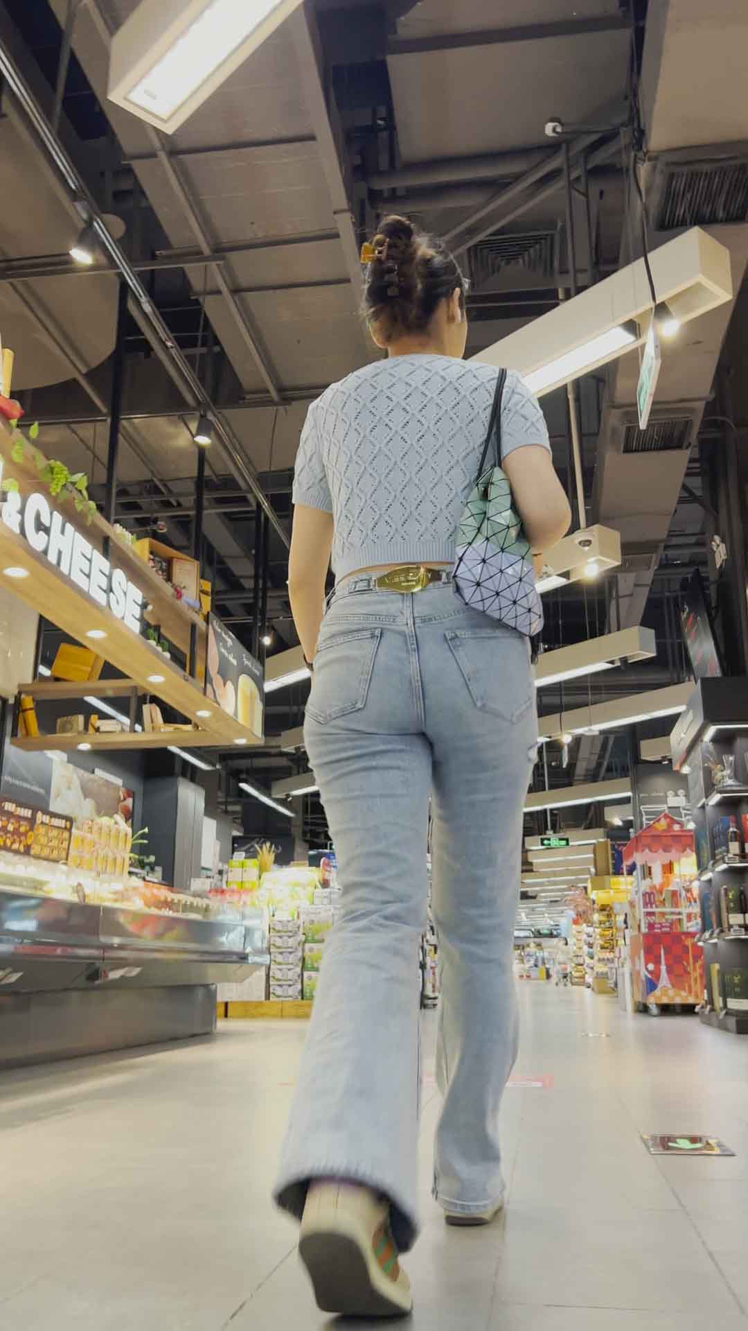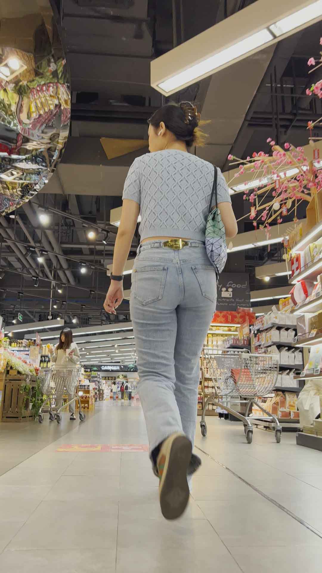 B1384饱满丰臀灰牛仔逛超市 |