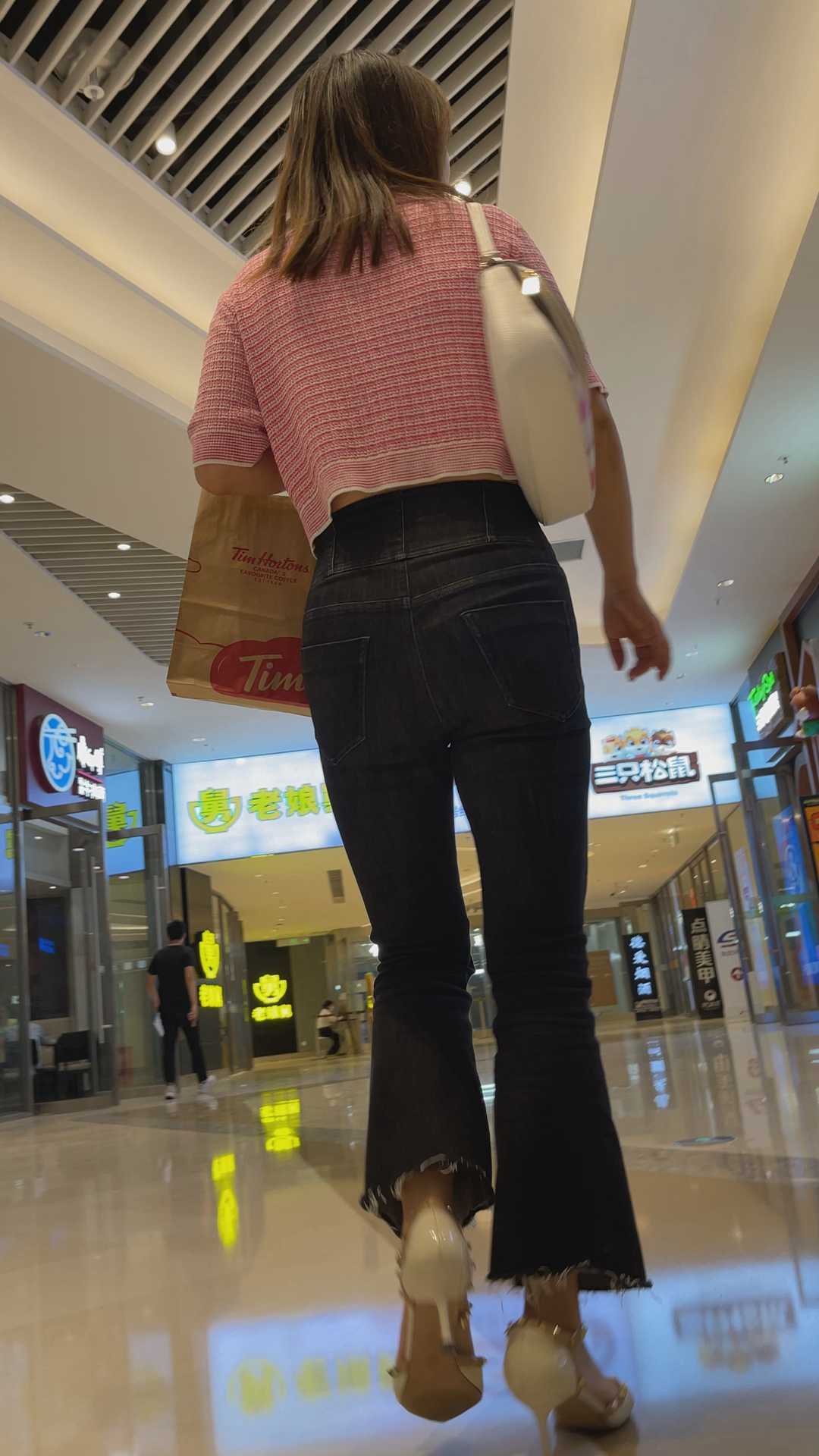 B193商场紧身黑牛仔喇叭裤妹子 |