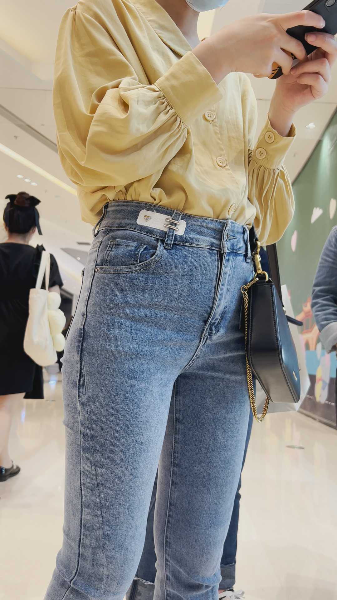 B293性感牛仔紧臀金三角眼镜妹 |