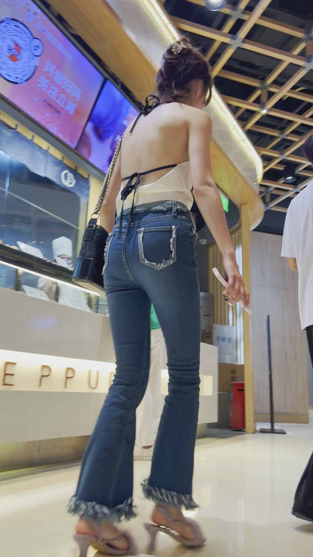 B622紧身牛仔裤露背大美女 |