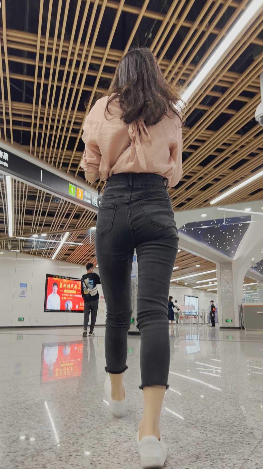 B663细腰紧臀灰牛仔小姐姐 |