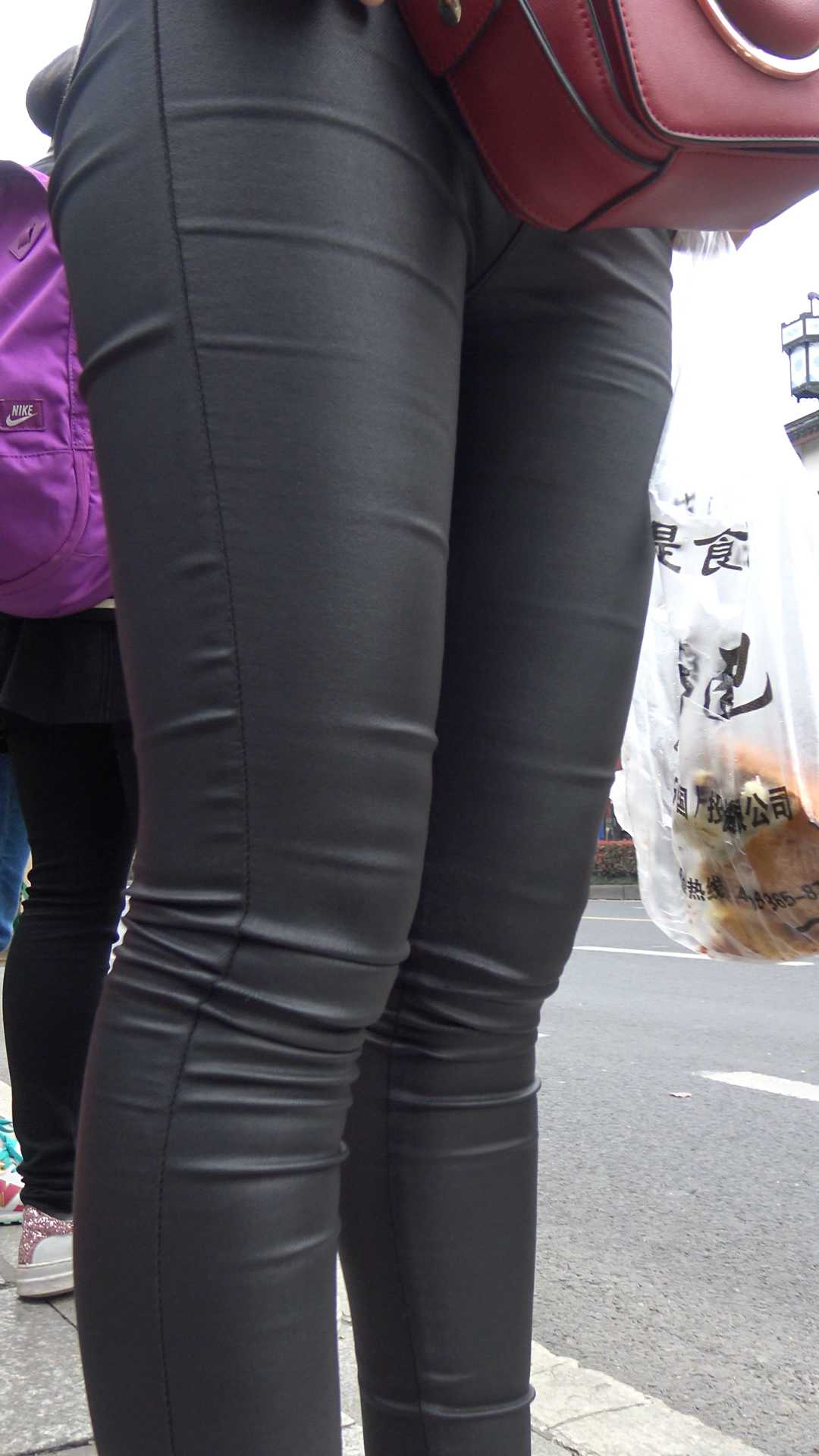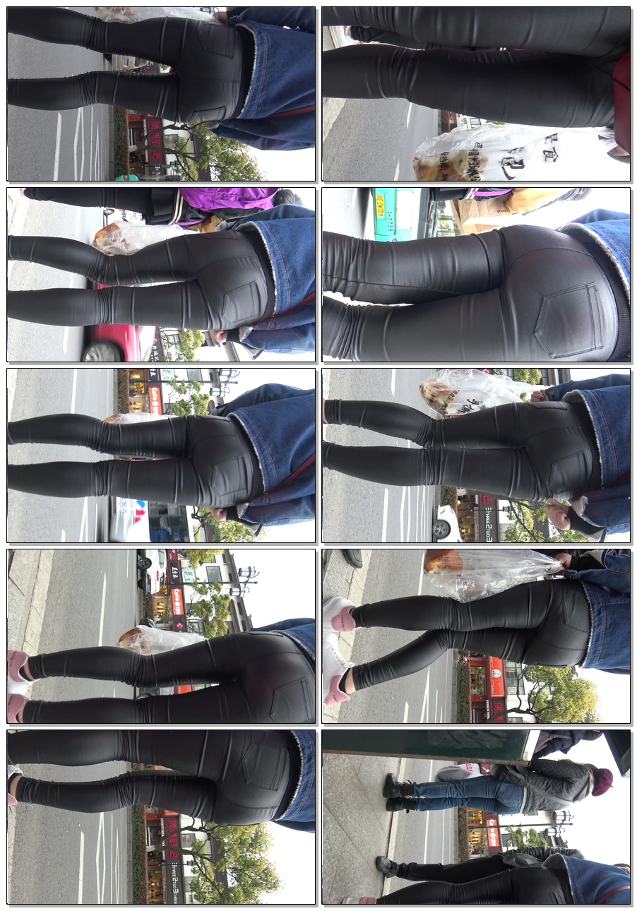 C402公交站皮裤宽大臀特写 |