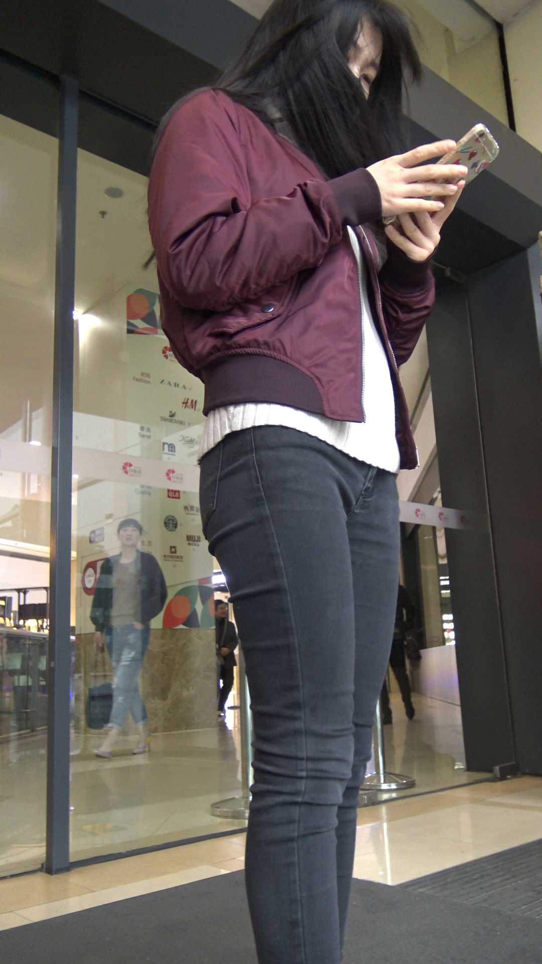 C535商场超紧黑牛仔美女前后摄 |