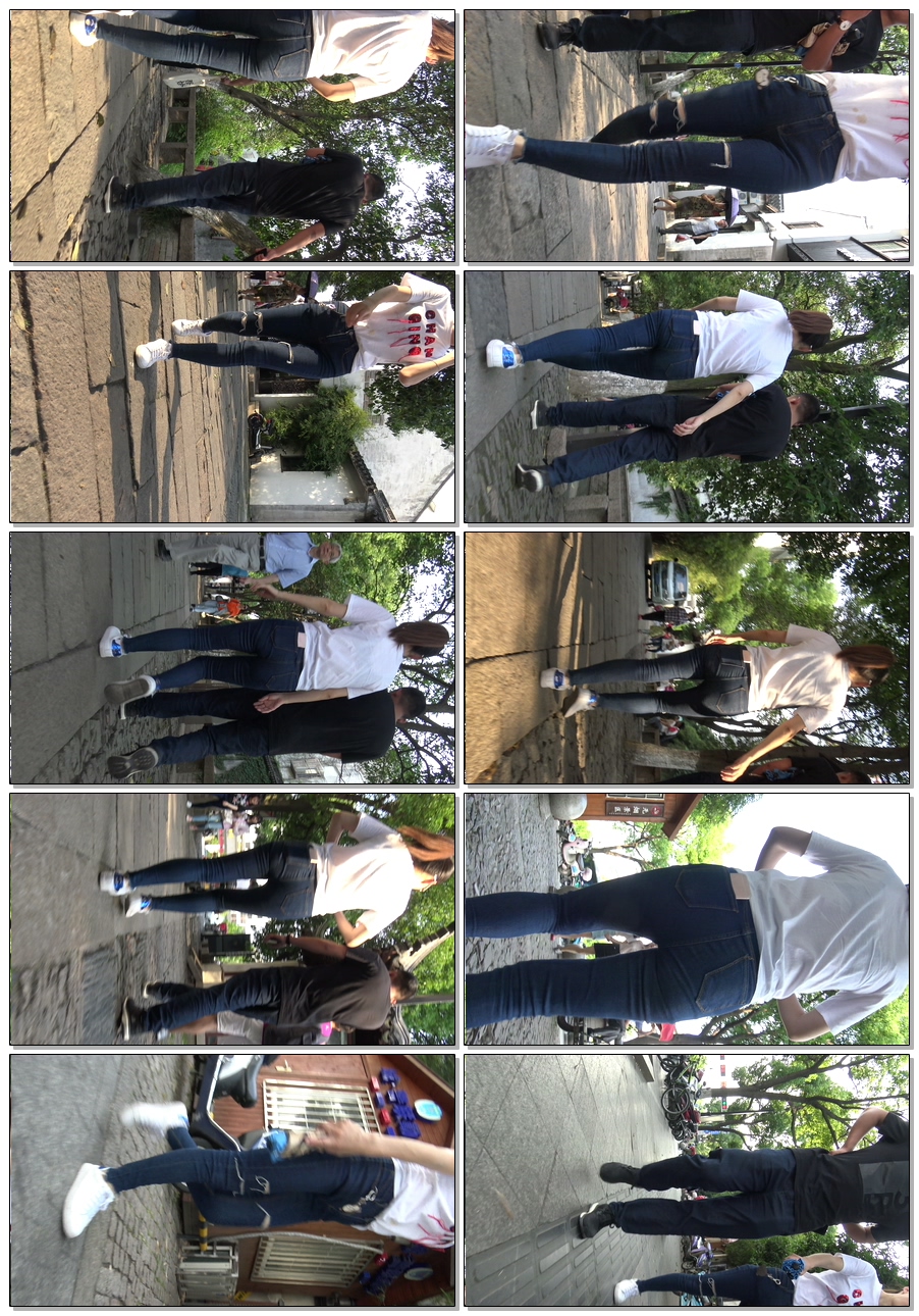 C1047街拍牛仔裤走路变形 |