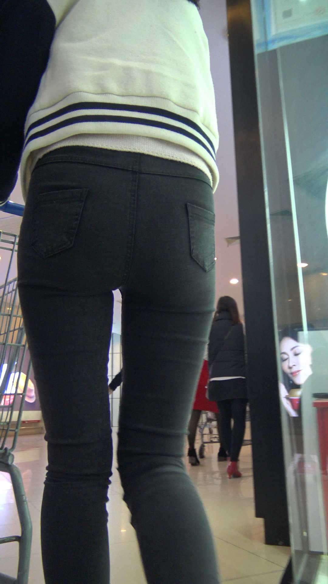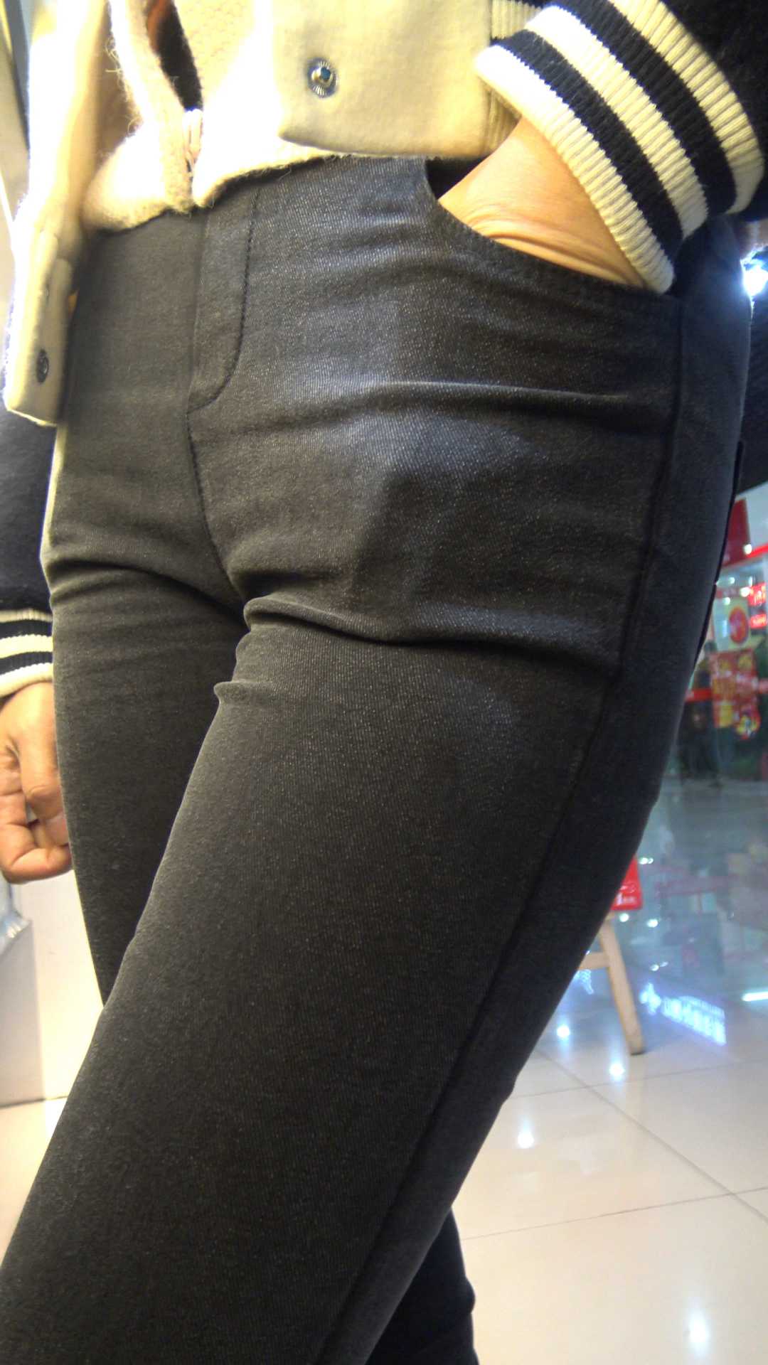 C1185超市紧身黑裤宽大臀美女 |