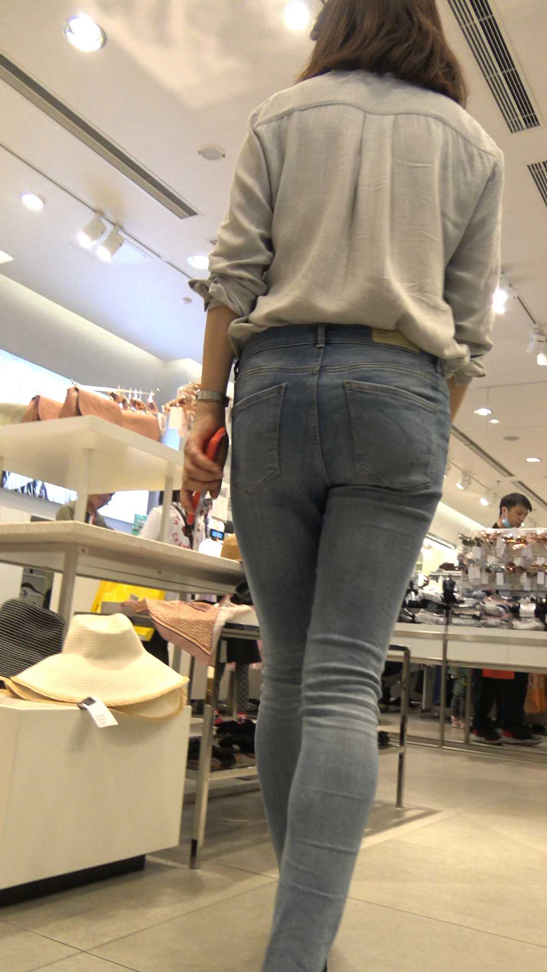 C182服装店包臀紧身灰牛仔少女 |