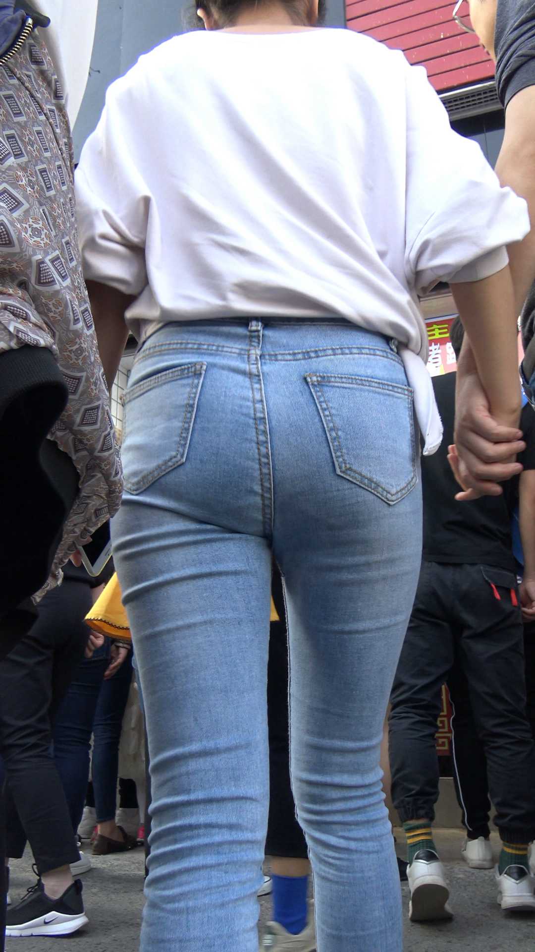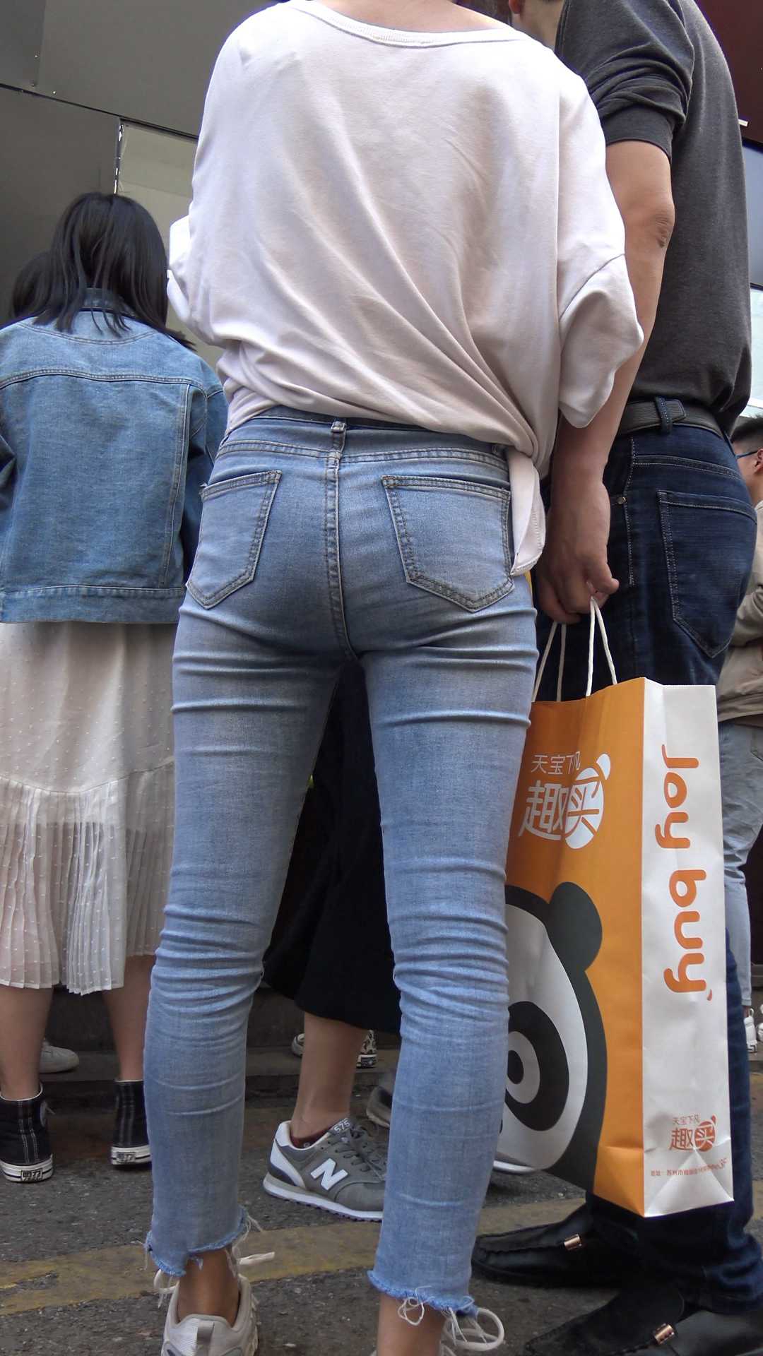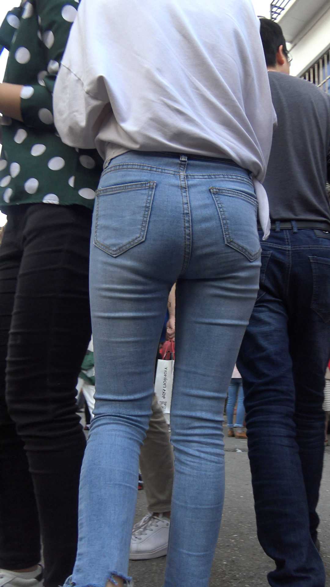 C267街拍灰色牛仔裤小姐姐 |
