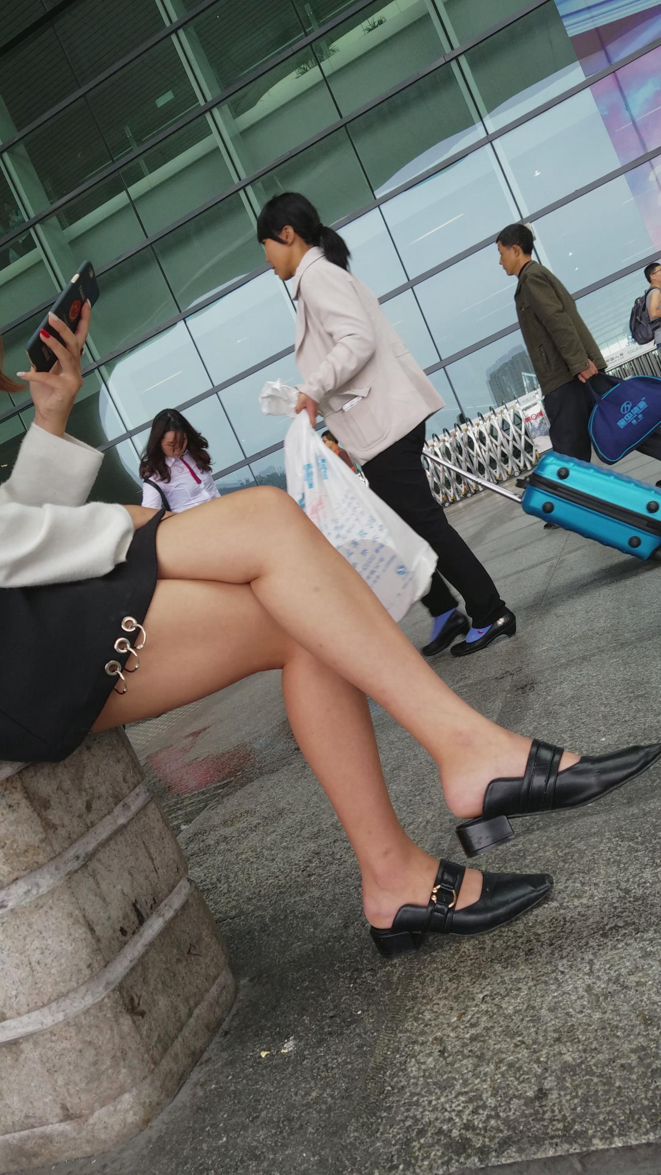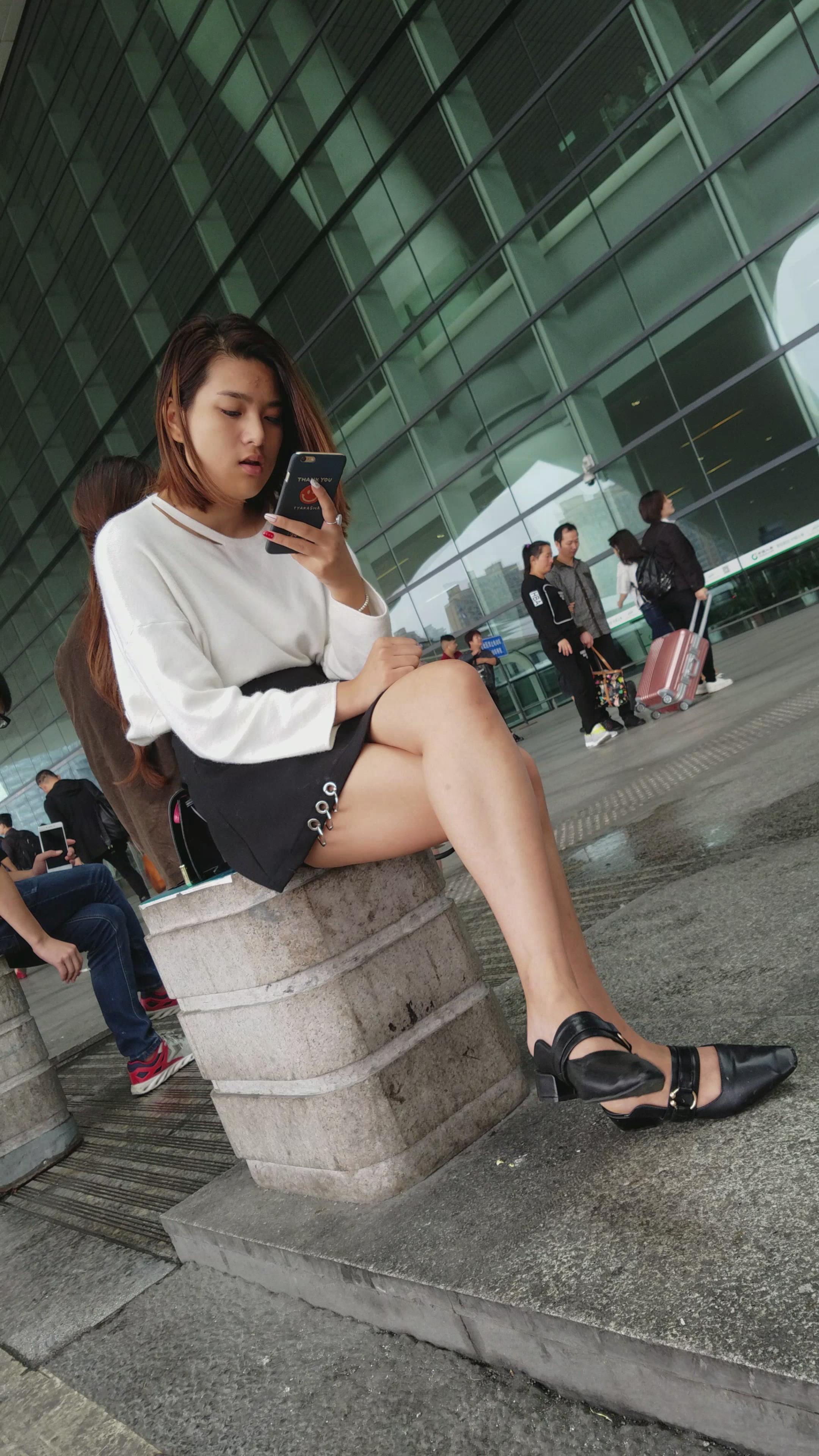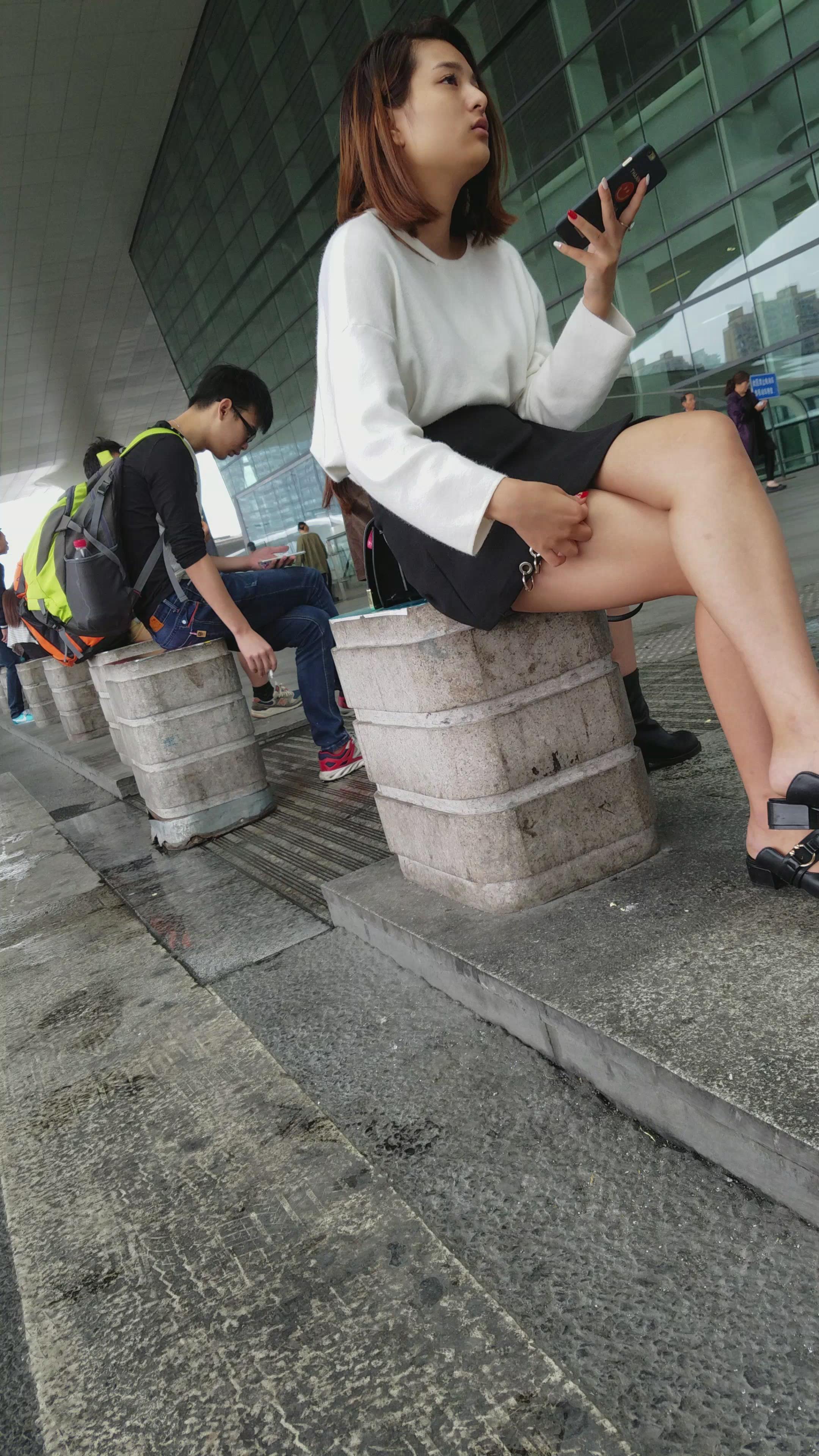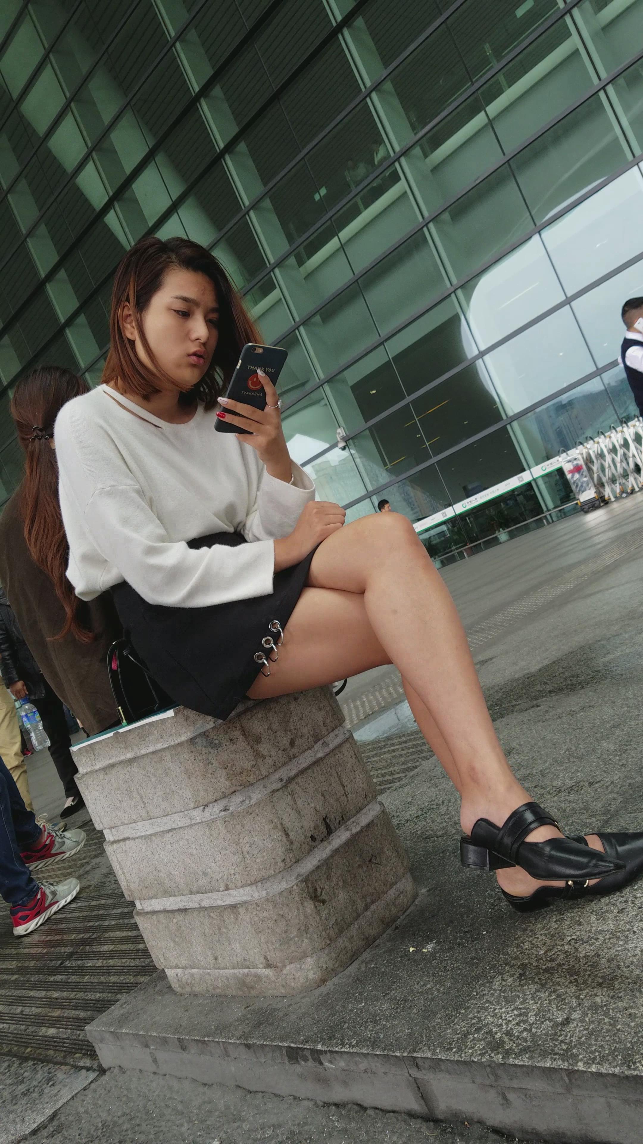 4k-坐在石墩上玩手机的美腿短裙美女姐姐 编号3312 |