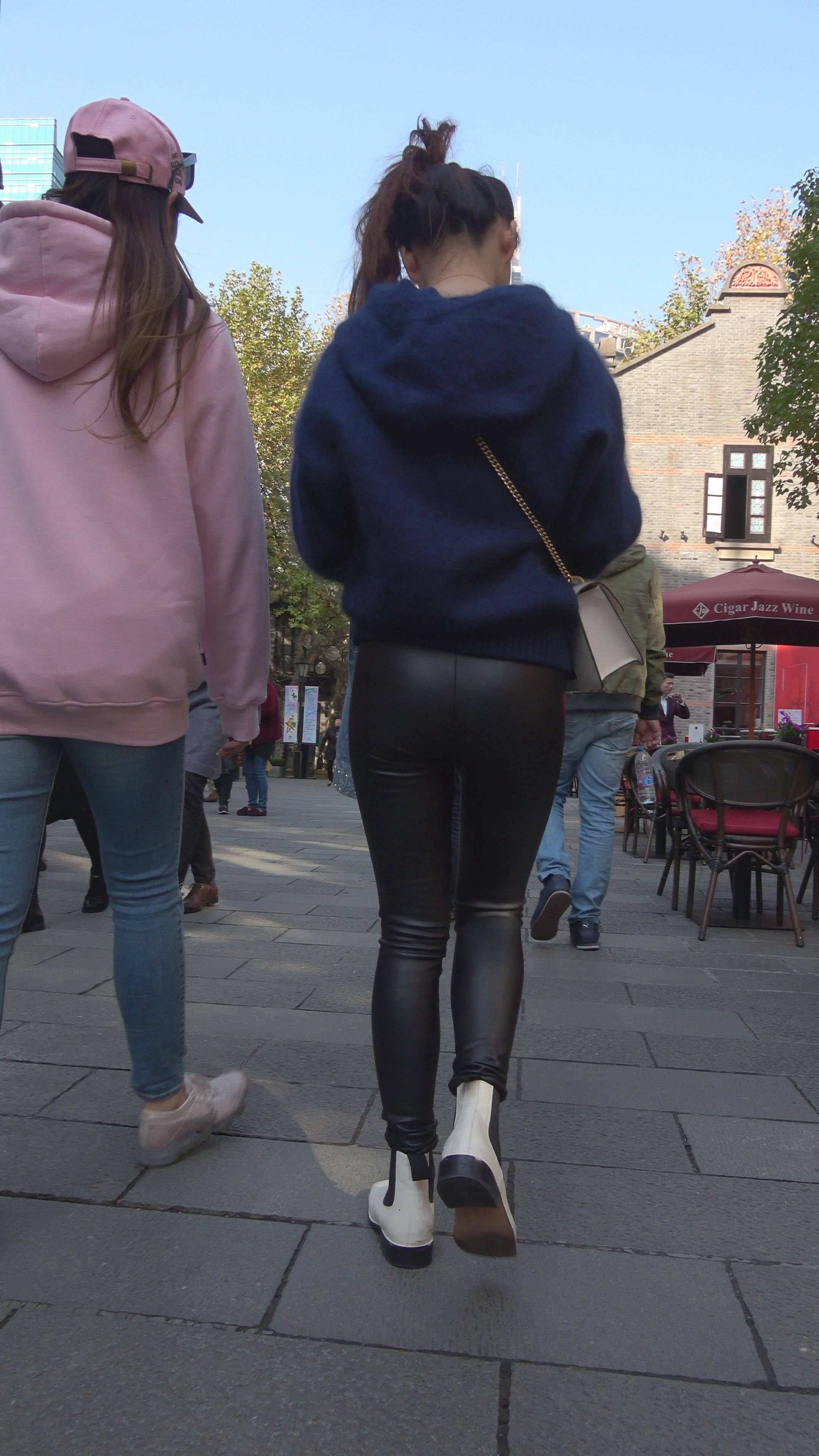4K 深蓝色卫衣街拍皮裤美女 3 编号7328 |