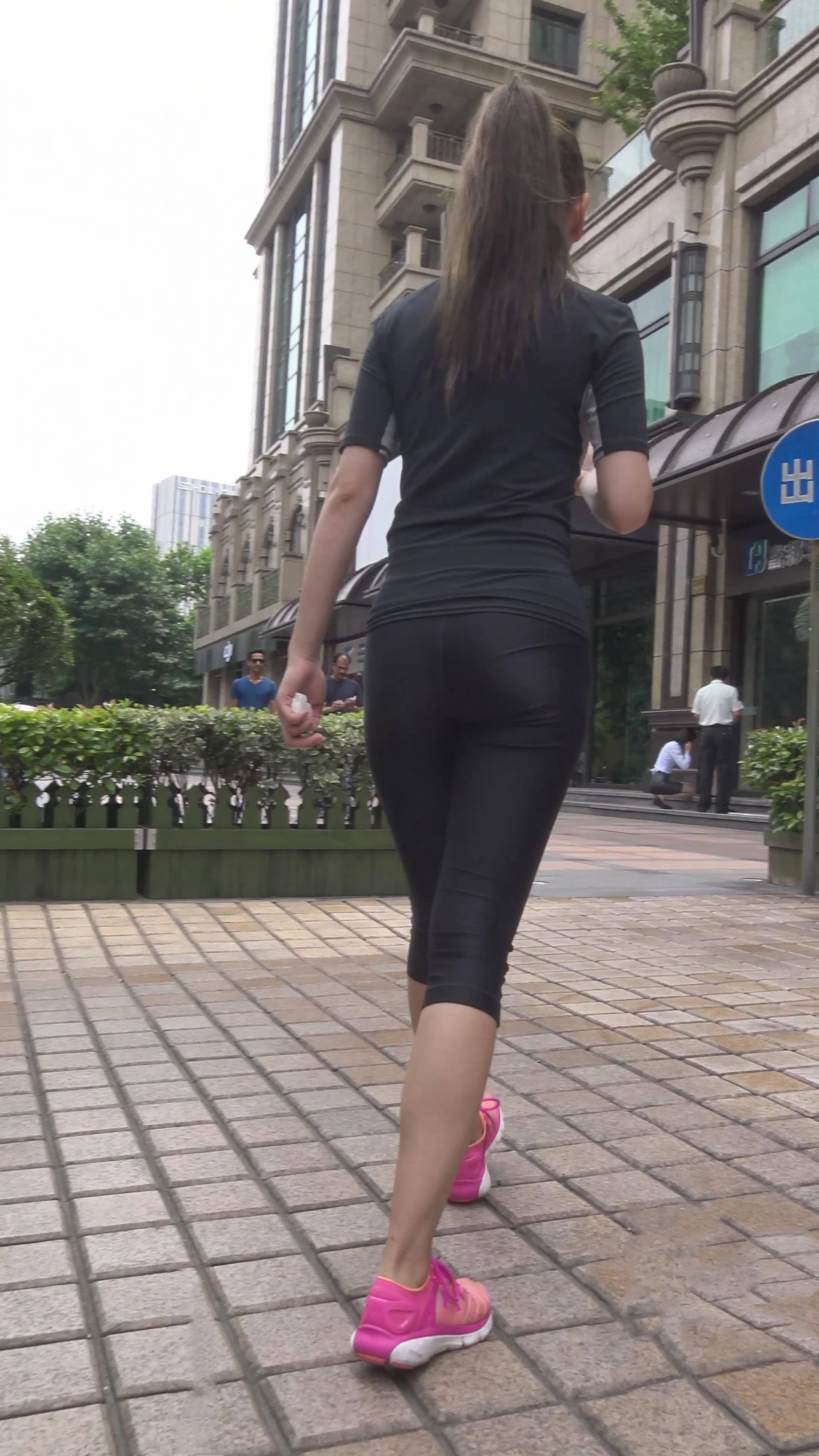 4k-紧身秀美黑色运动弹力裤美女 编号7443 |