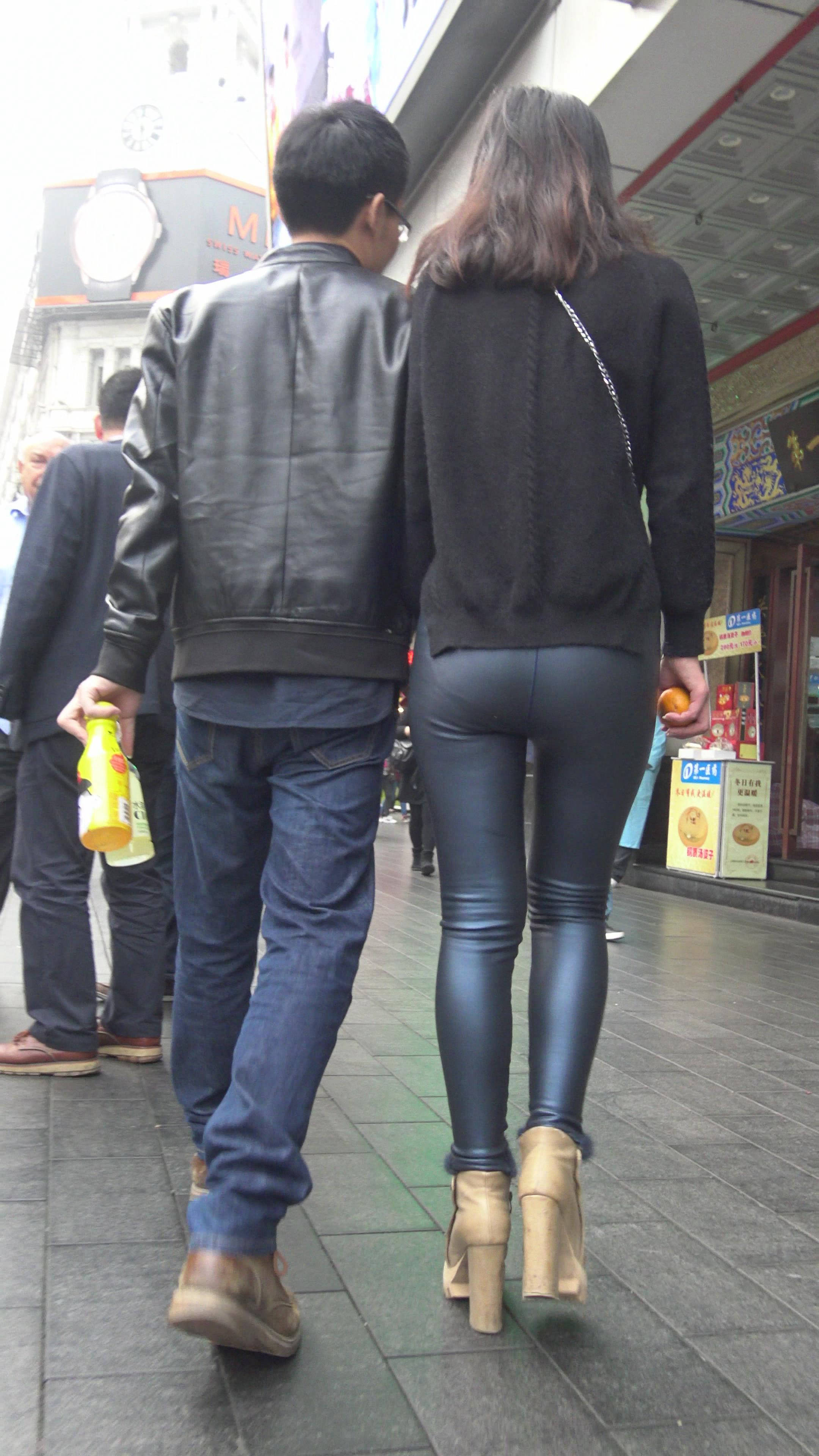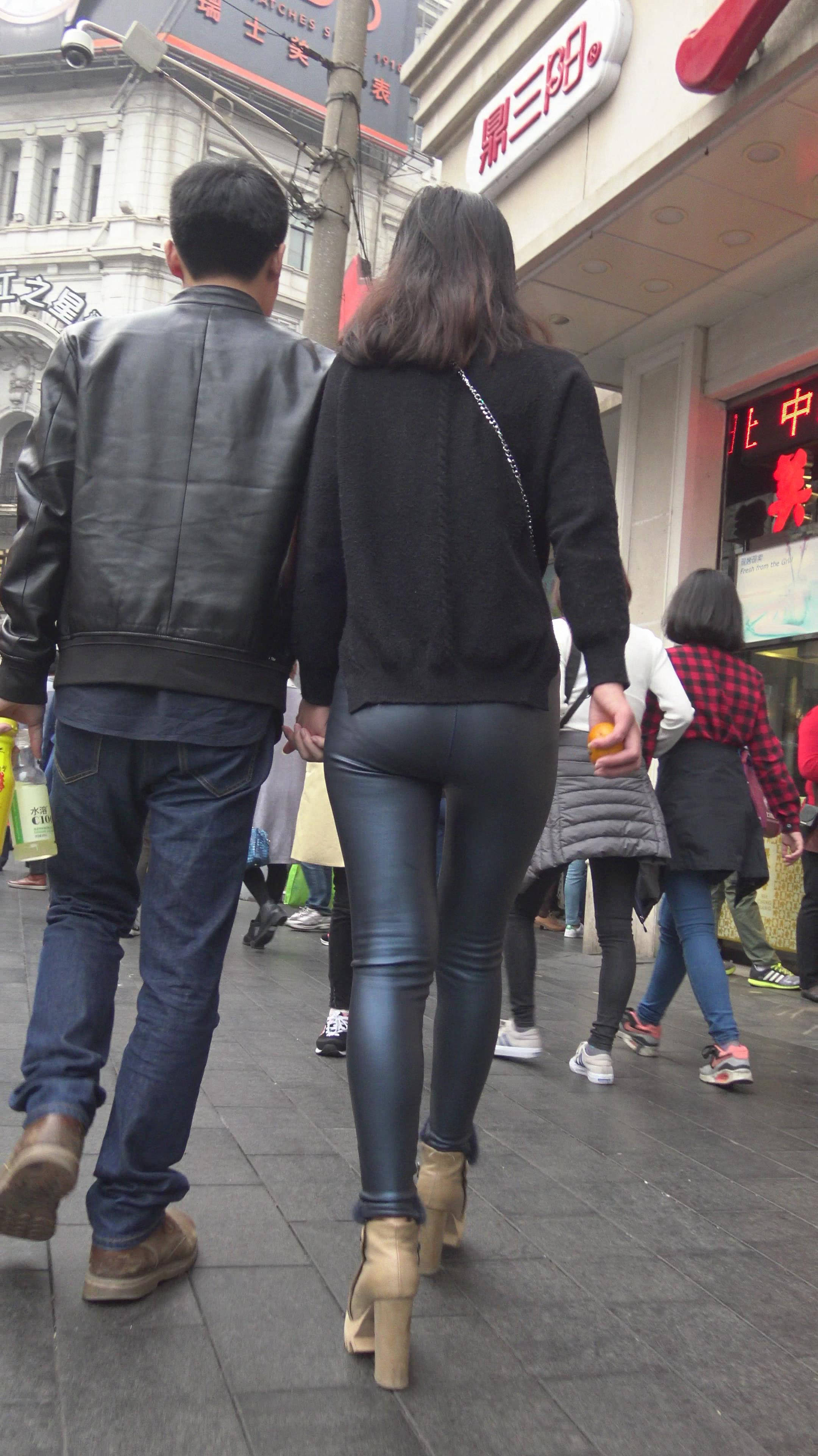 4K - 完美身材街拍皮裤性感美女 编号7481 |