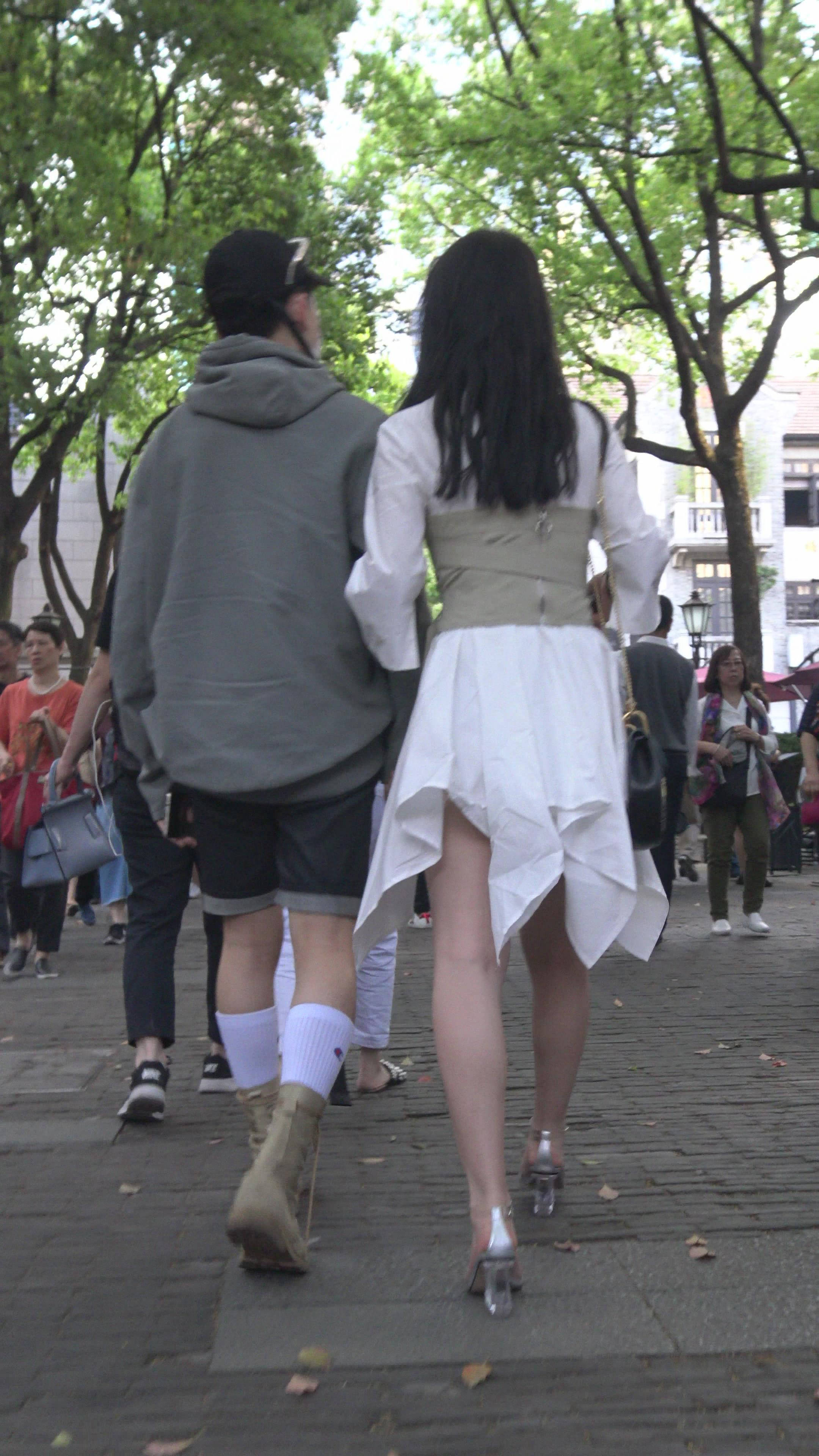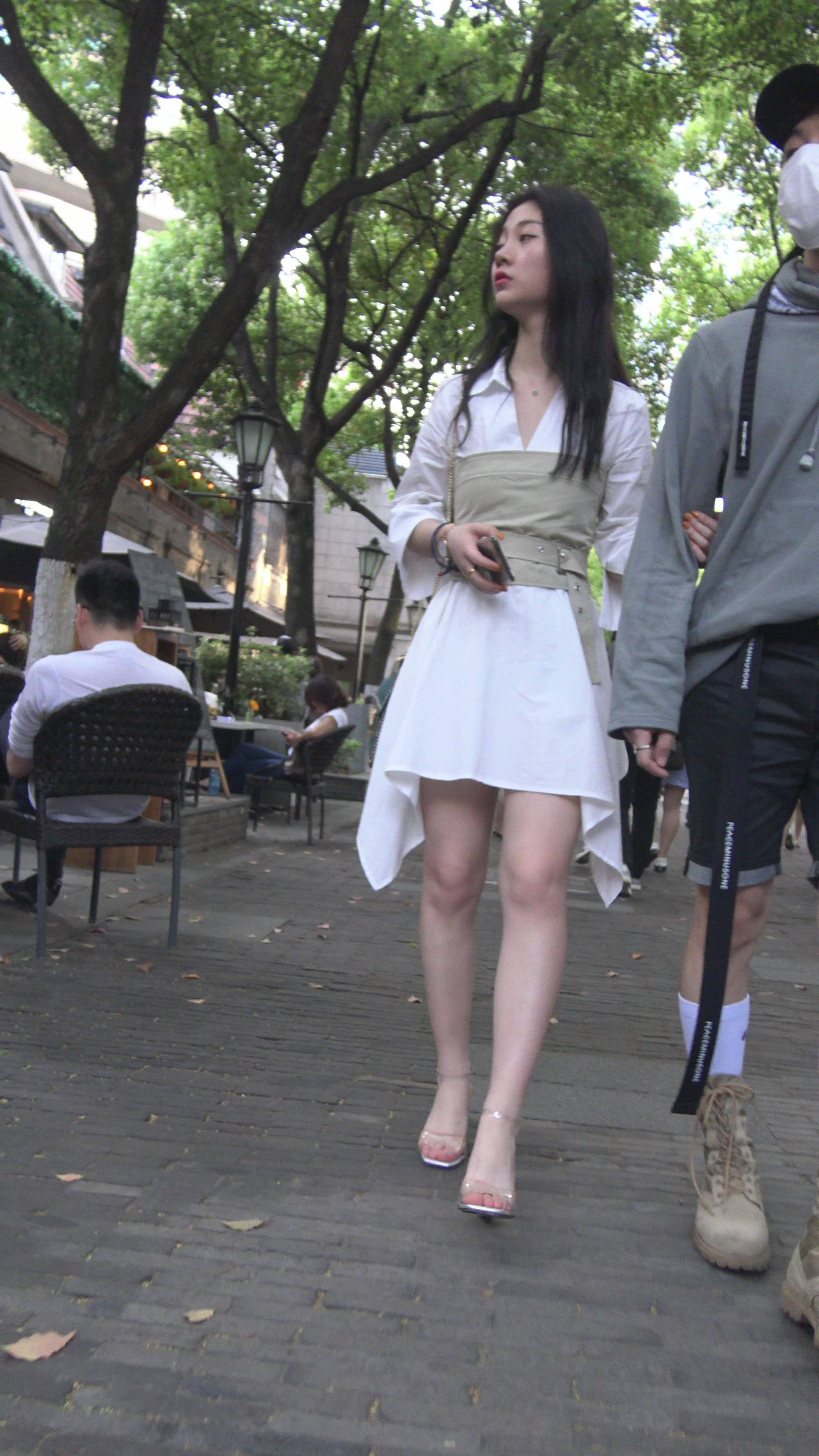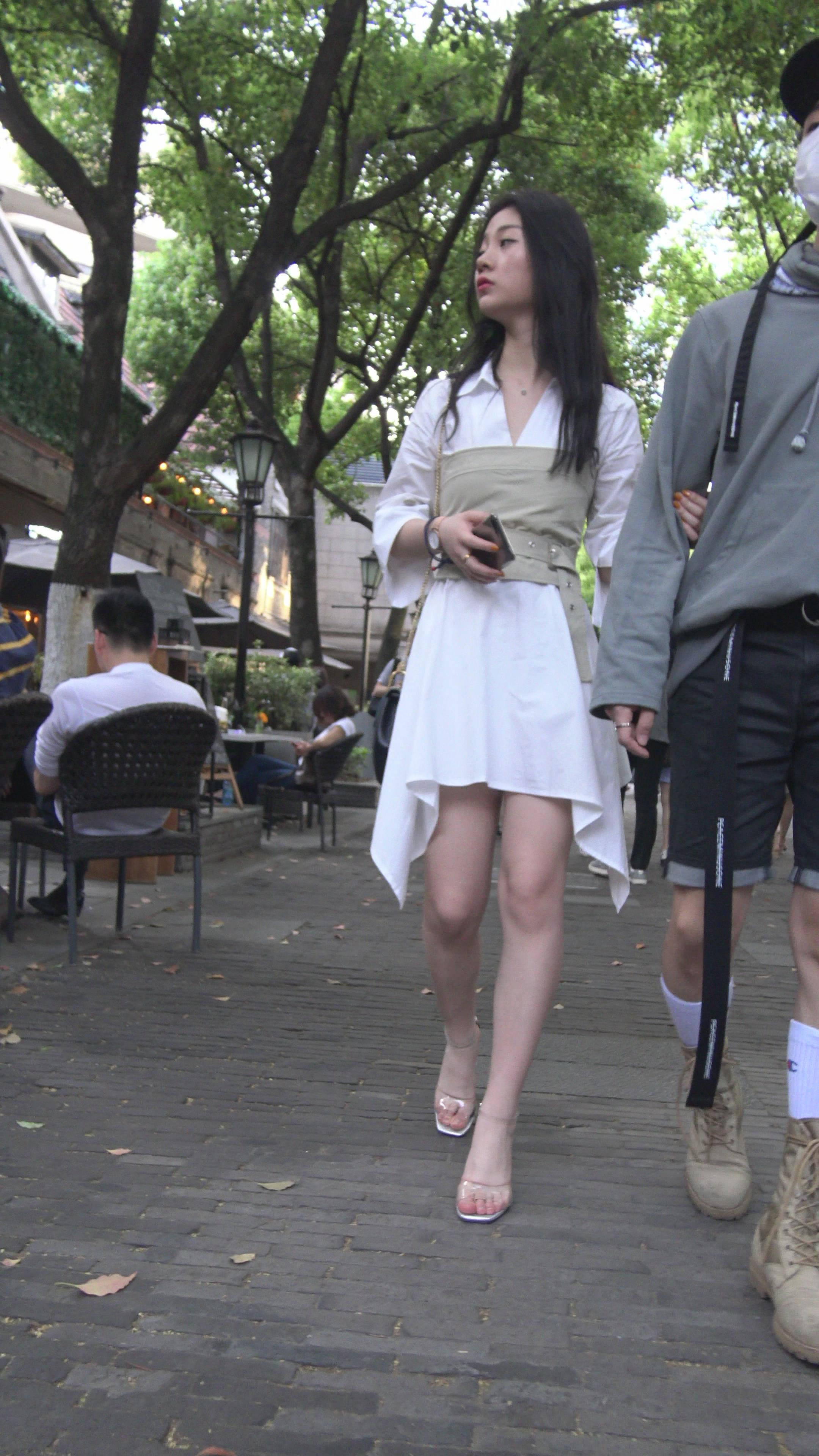 4K 白色连衣裙街拍高跟鞋美女姐姐 编号7501 |