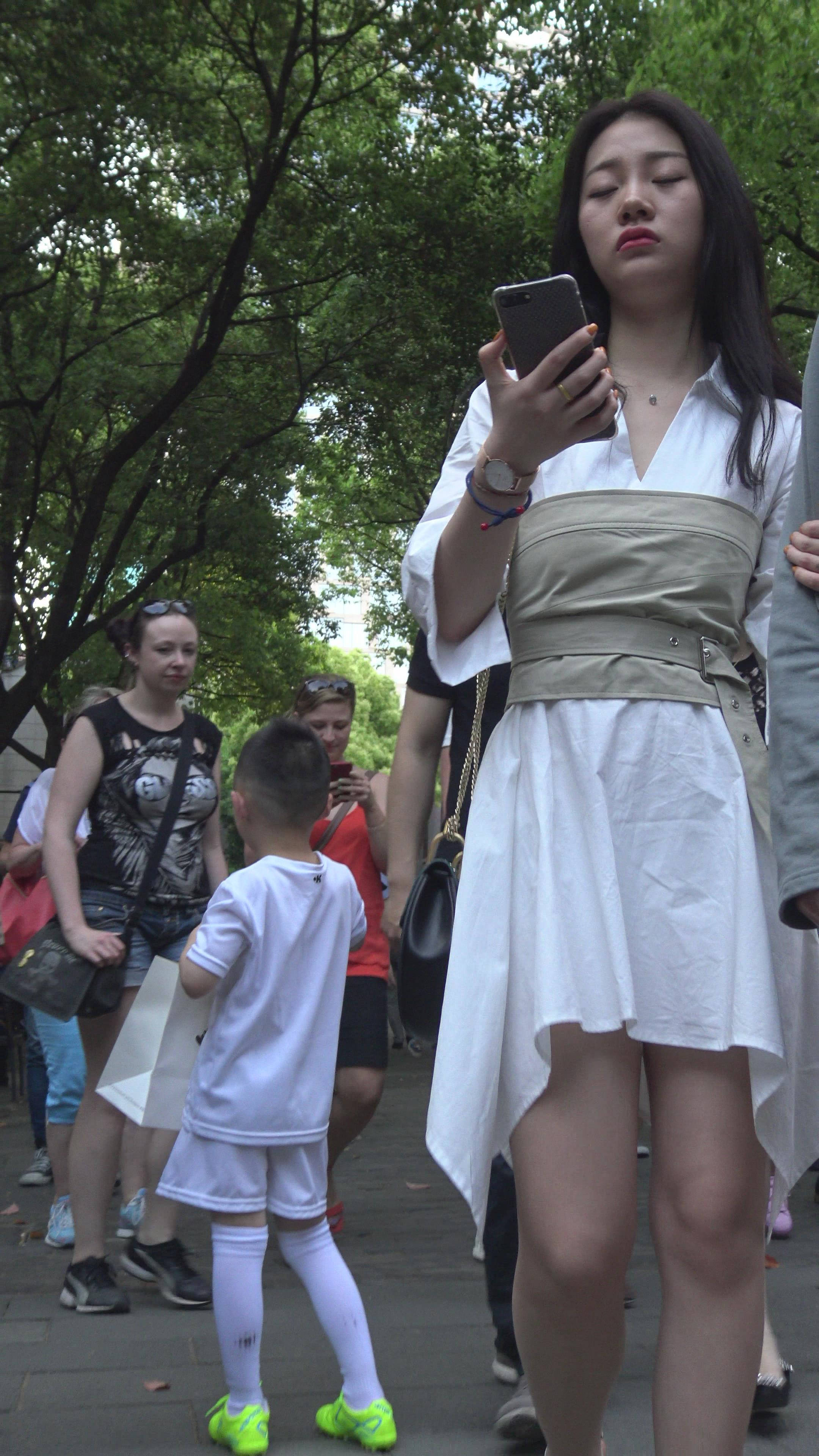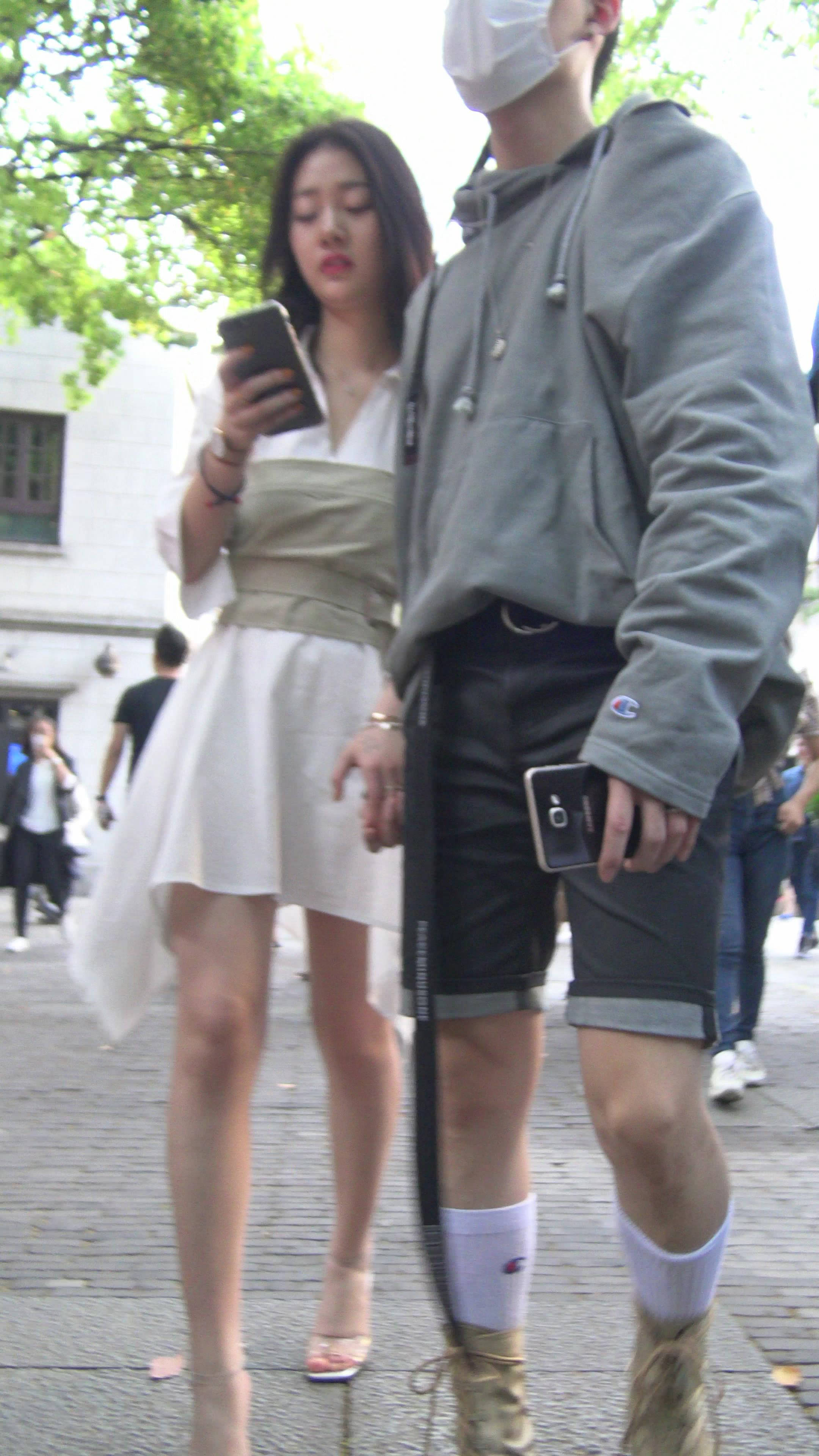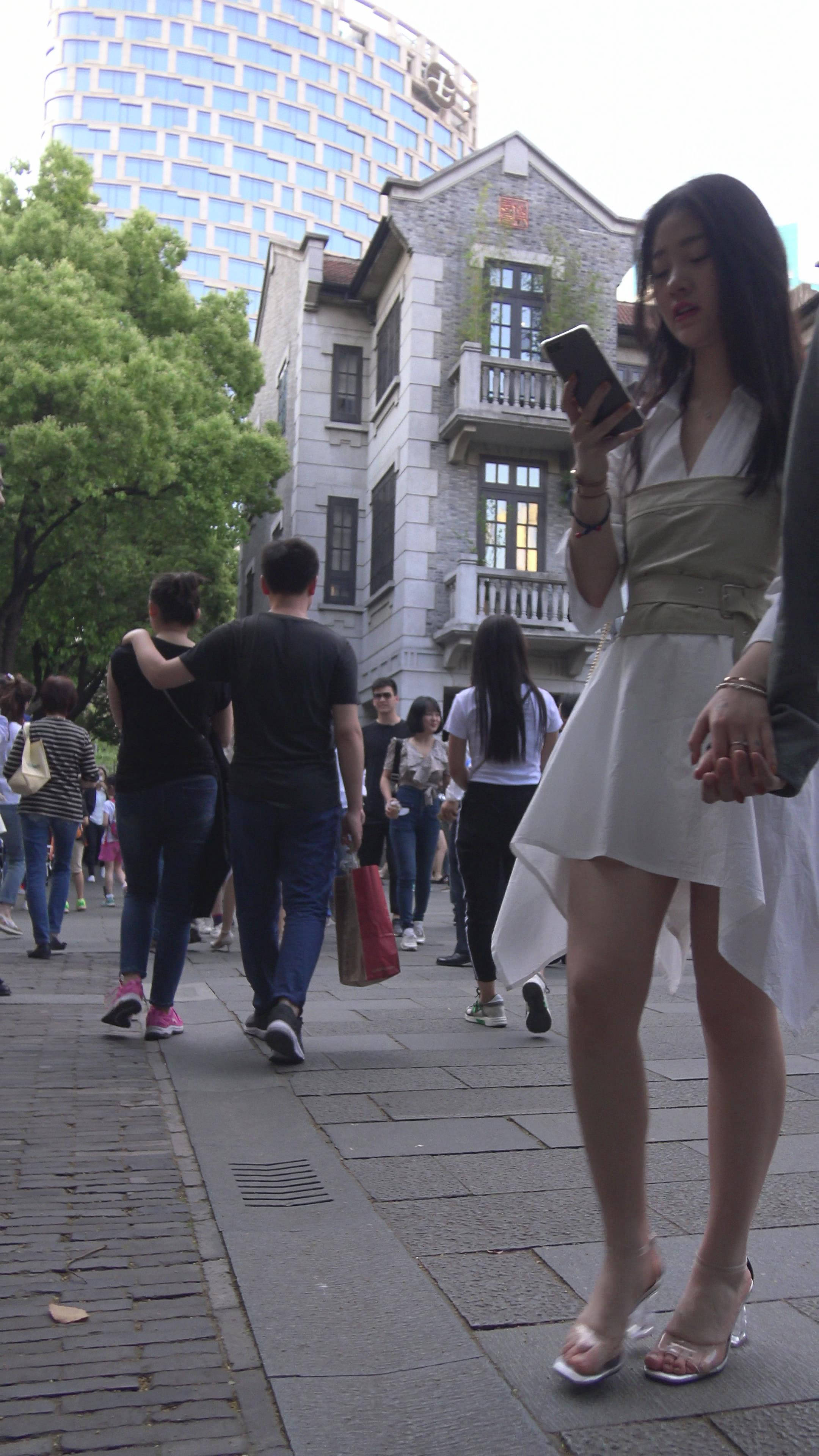 4K 白色连衣裙街拍高跟鞋美女姐姐 编号7501 |