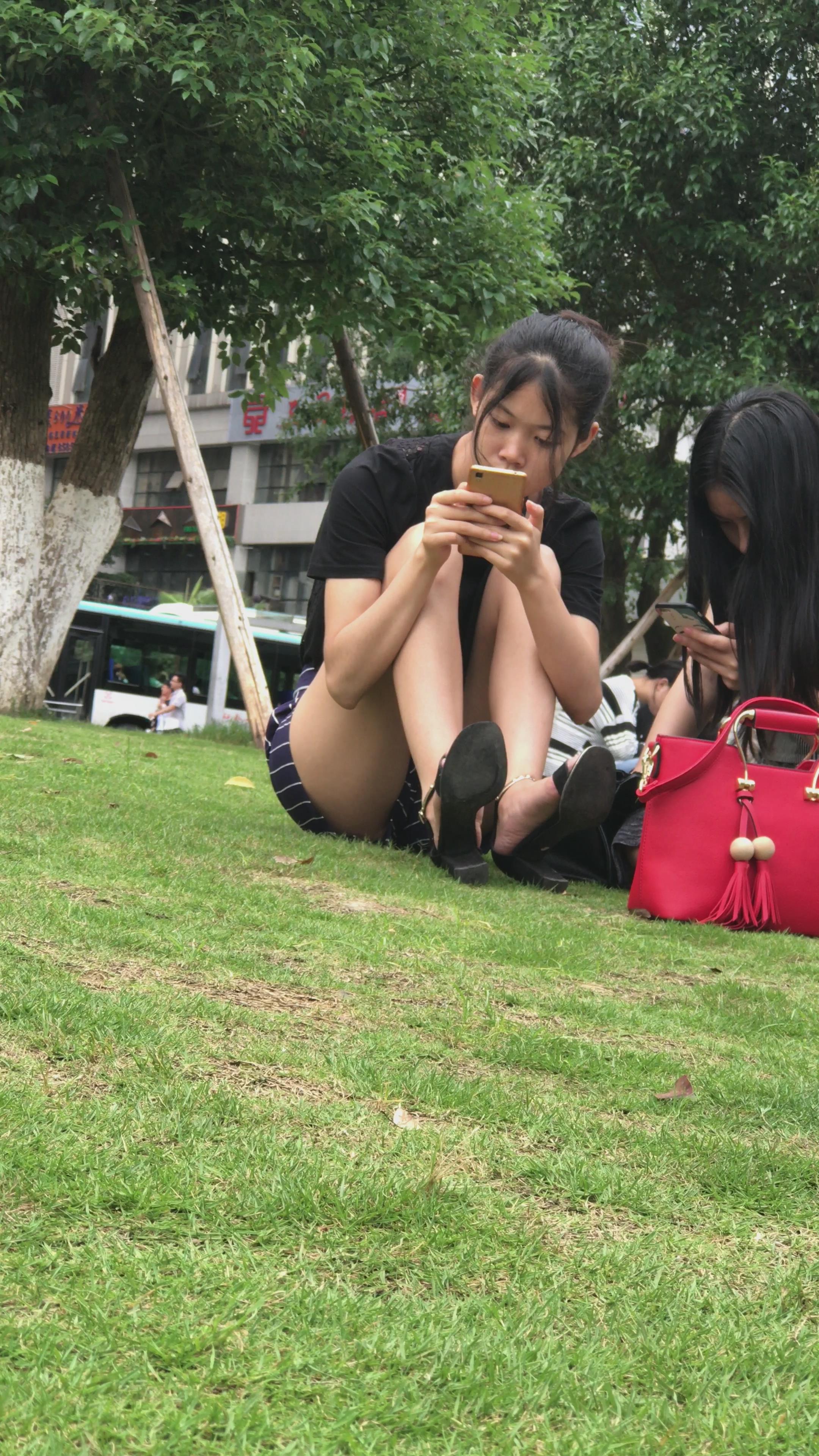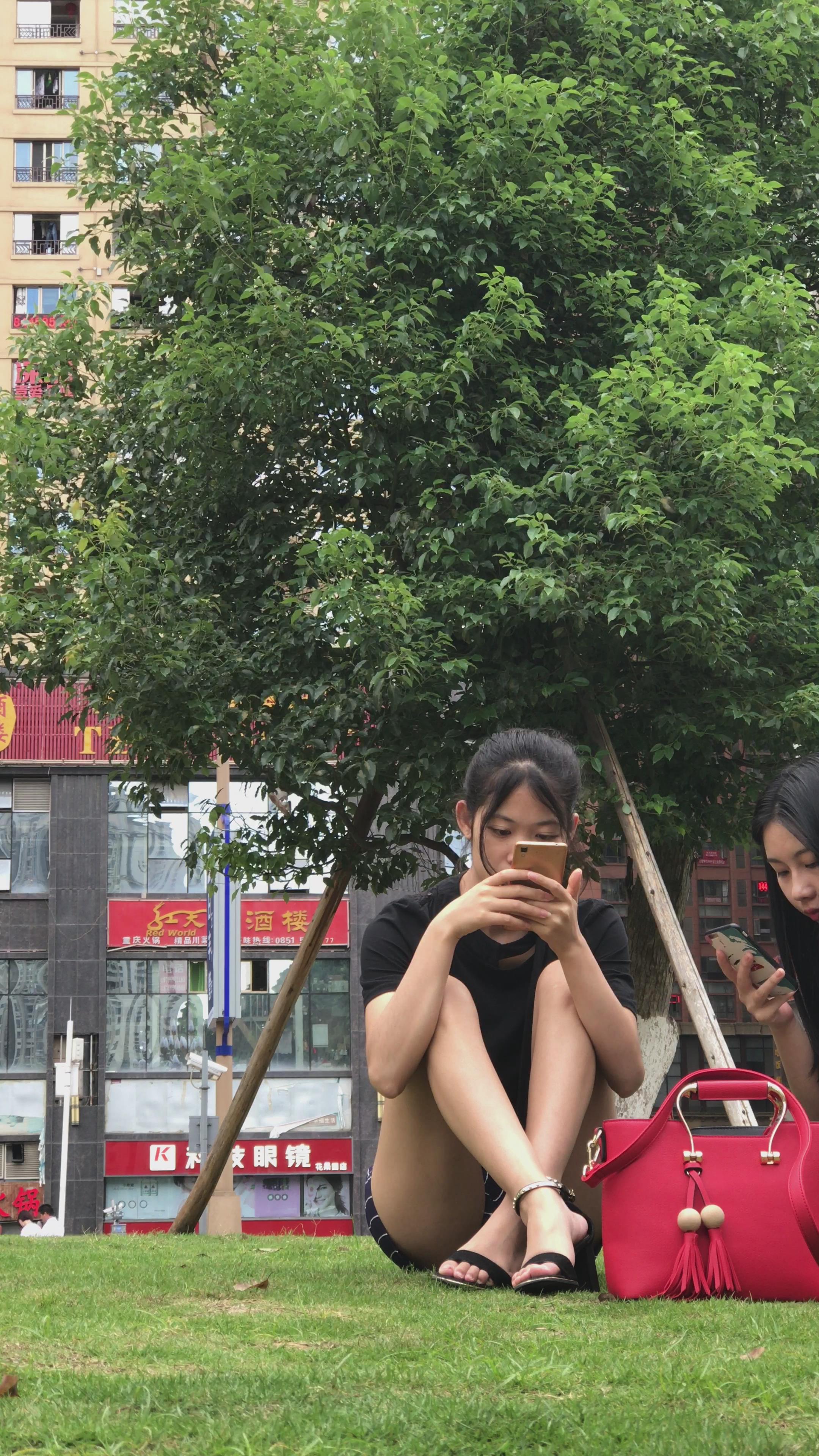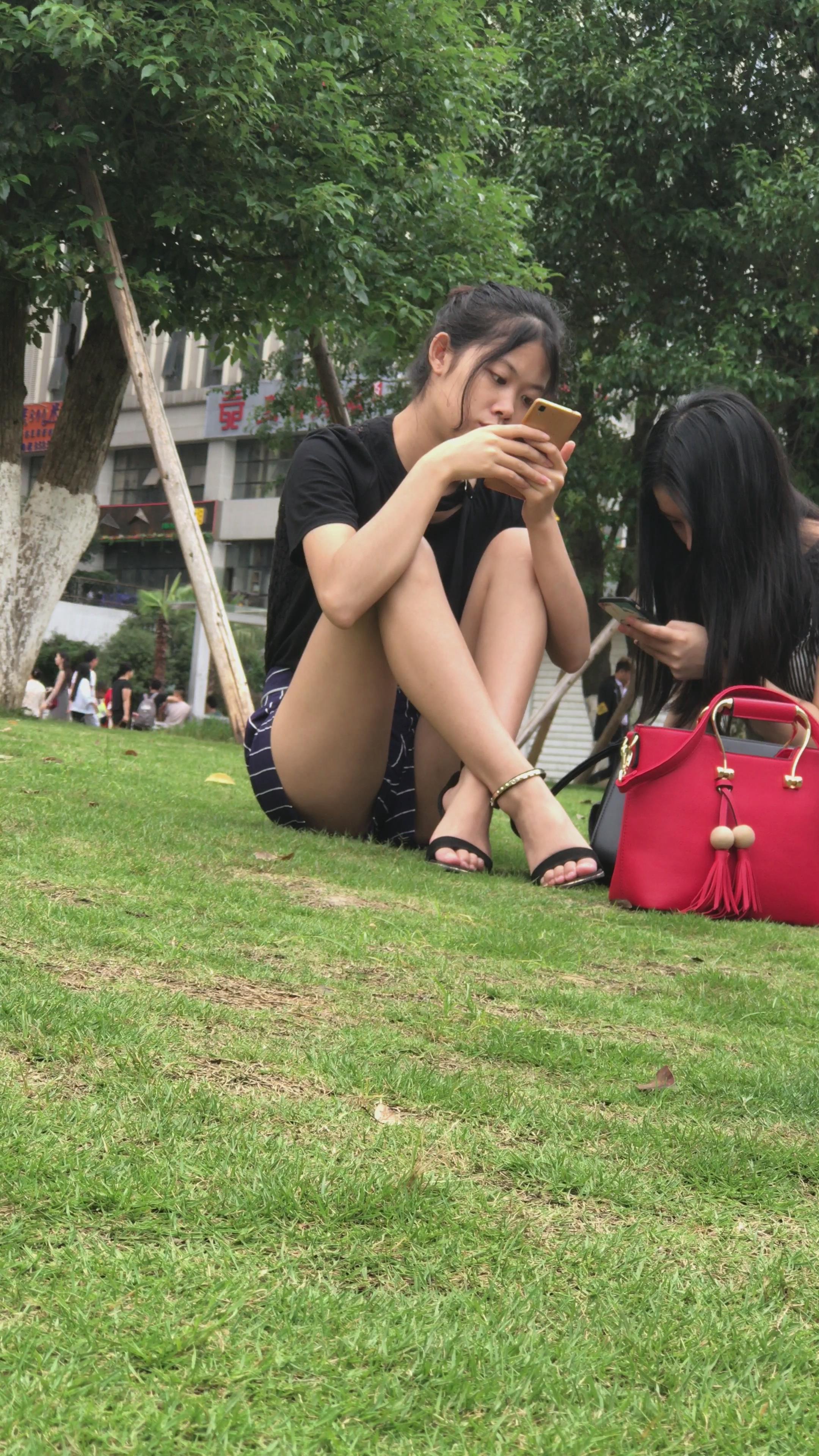 4K - 草地上玩手机的超级气质美丽姑娘 编号3357 |
