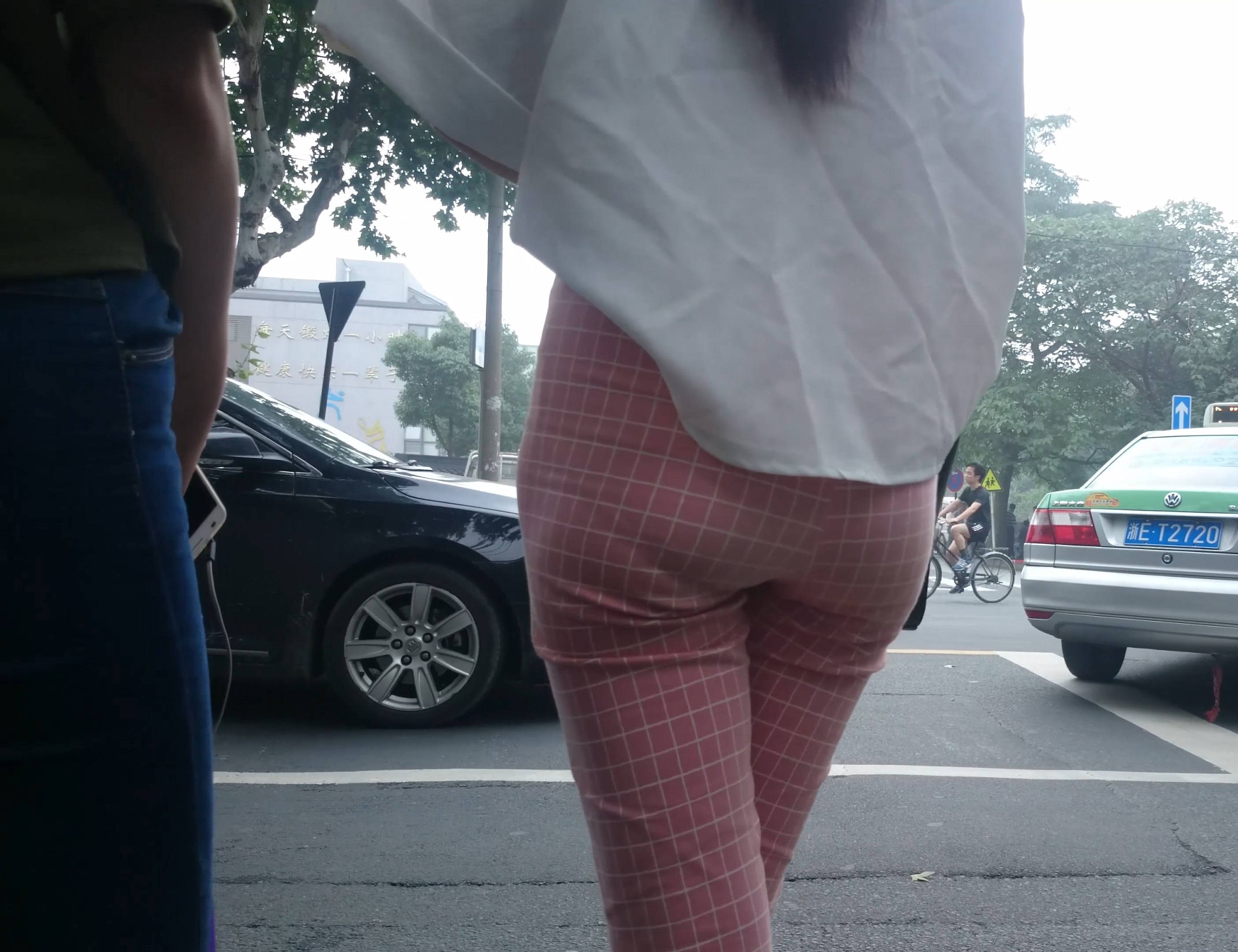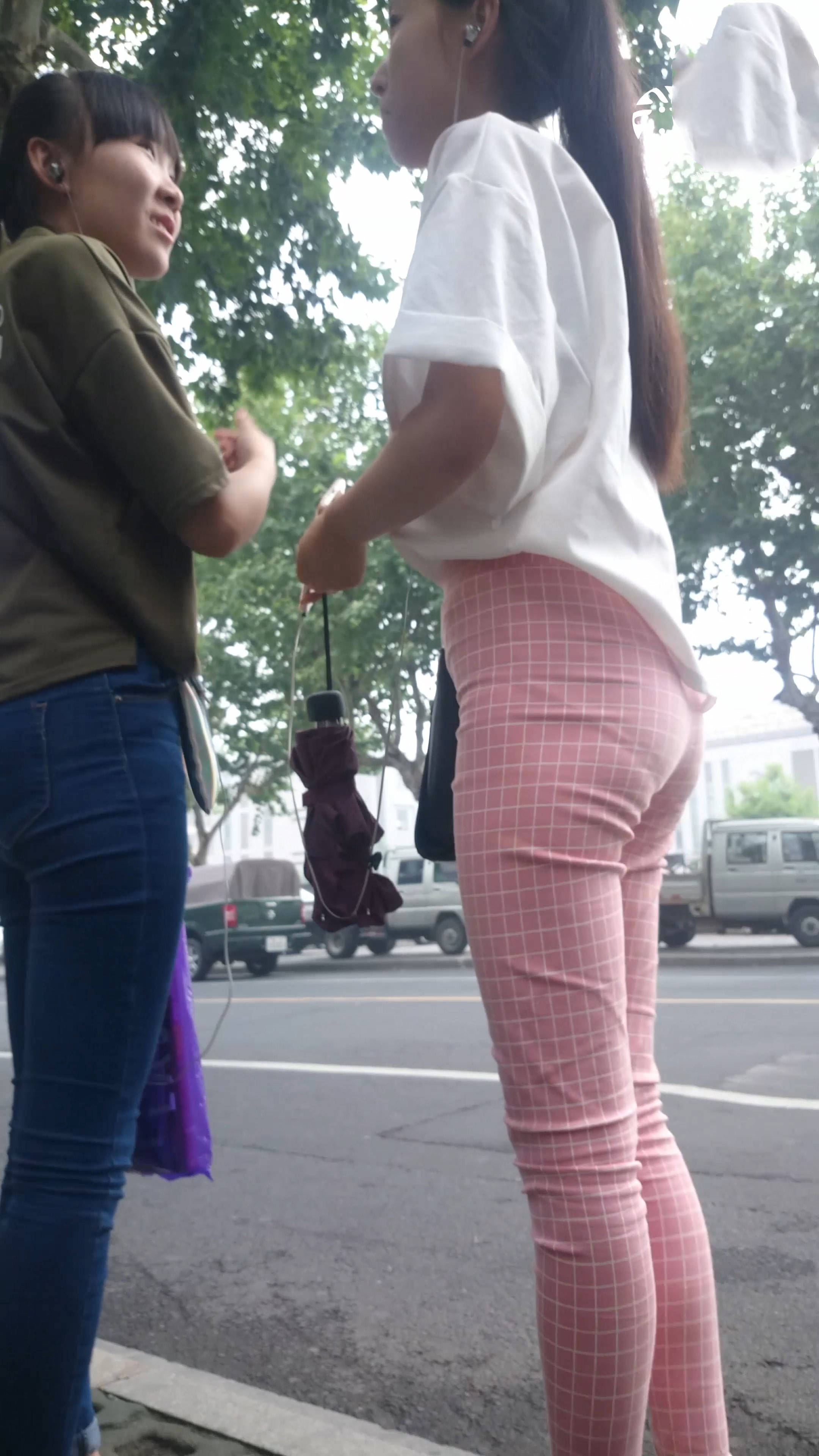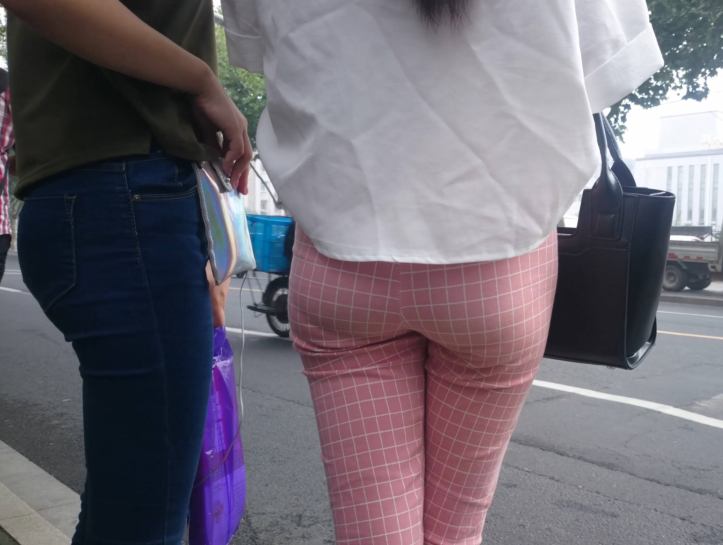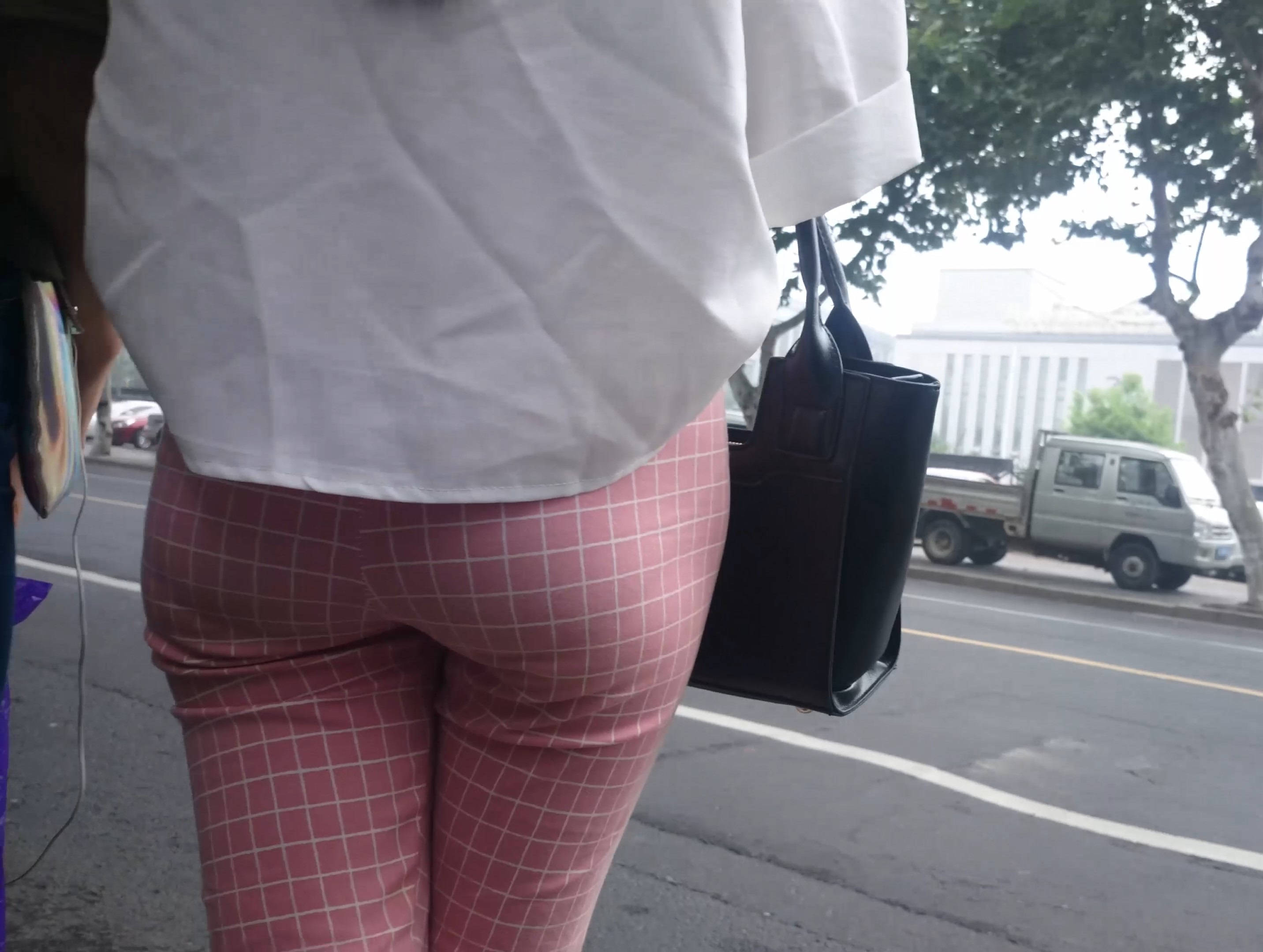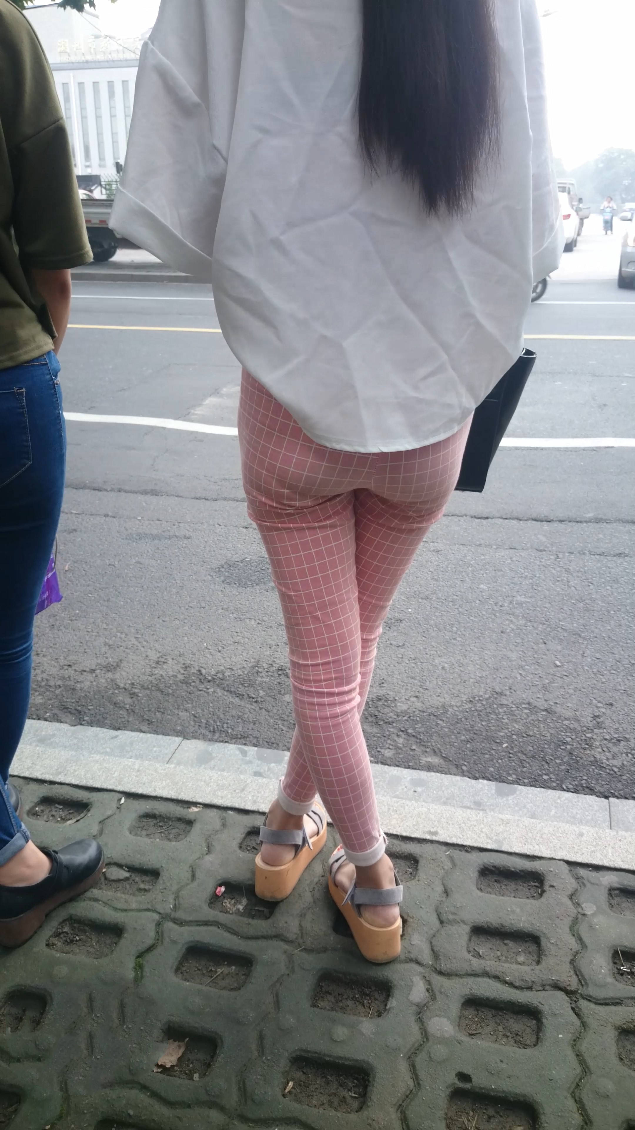 4k-街拍路边等车的粉色格子裤美女 编号7602 |