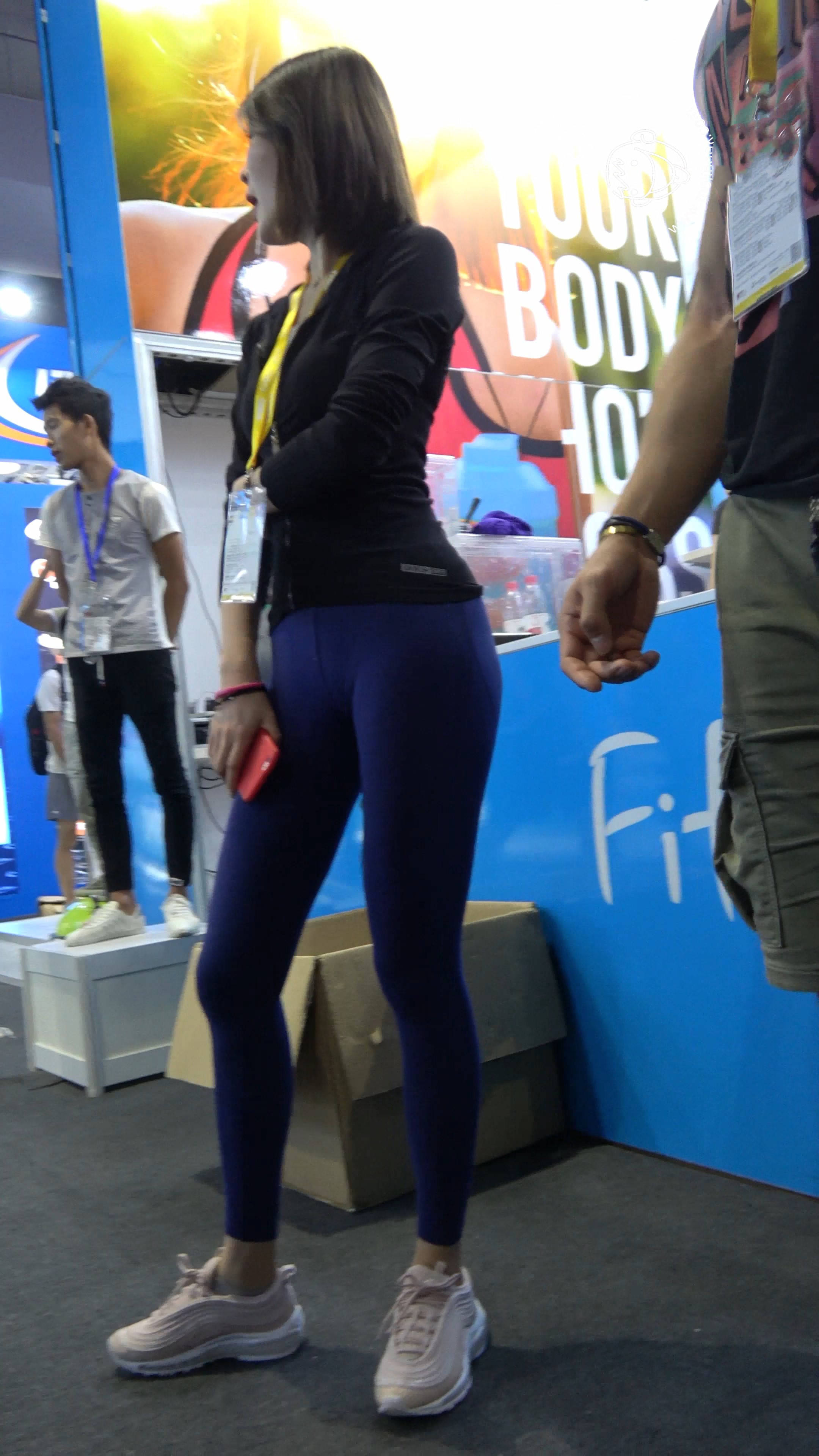 4k-蓝色紧身弹力裤饱满月牙性感美女 编号7672 |