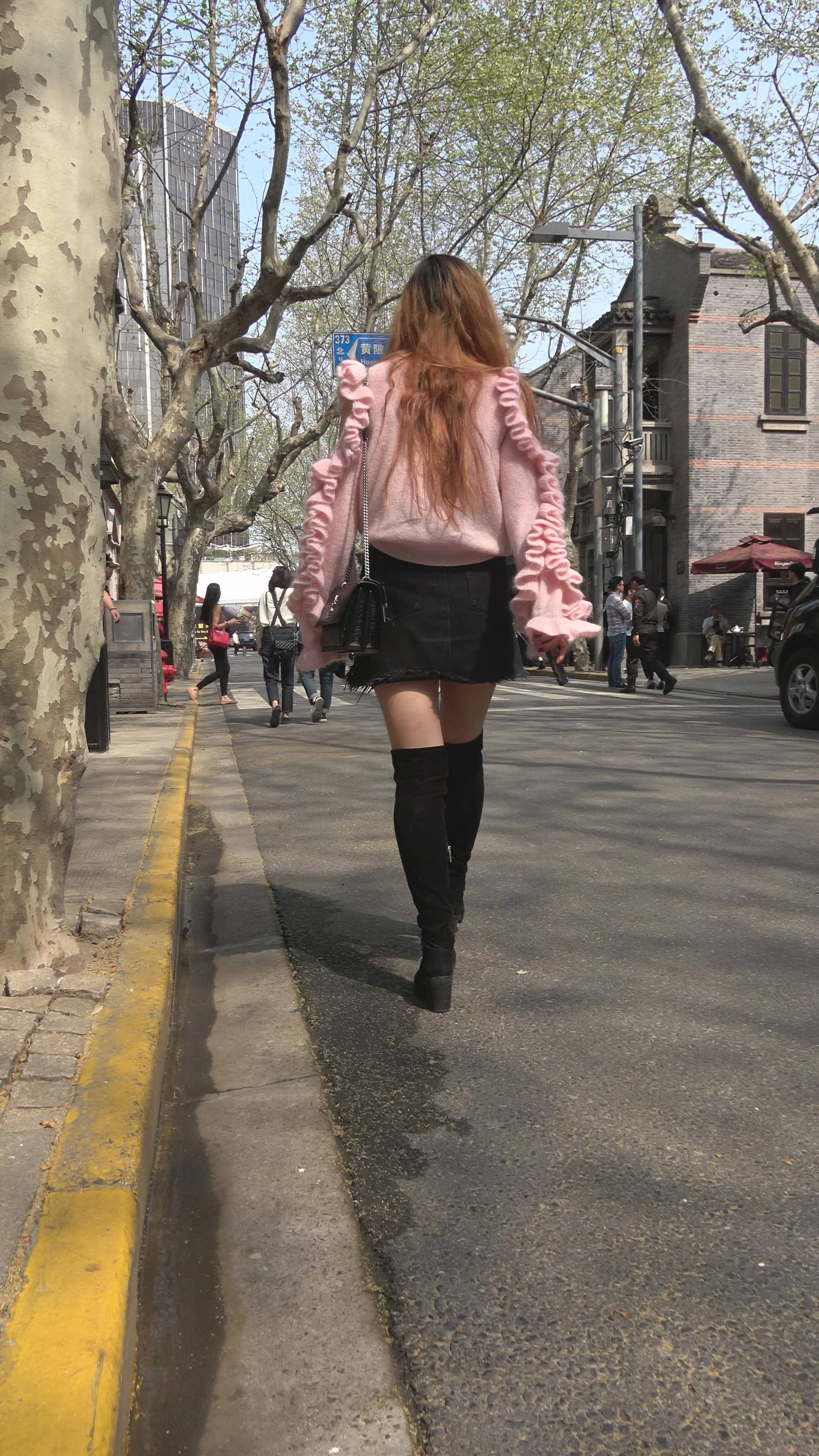4K - 粉衣街拍美腿性感大美女 编号7758 |