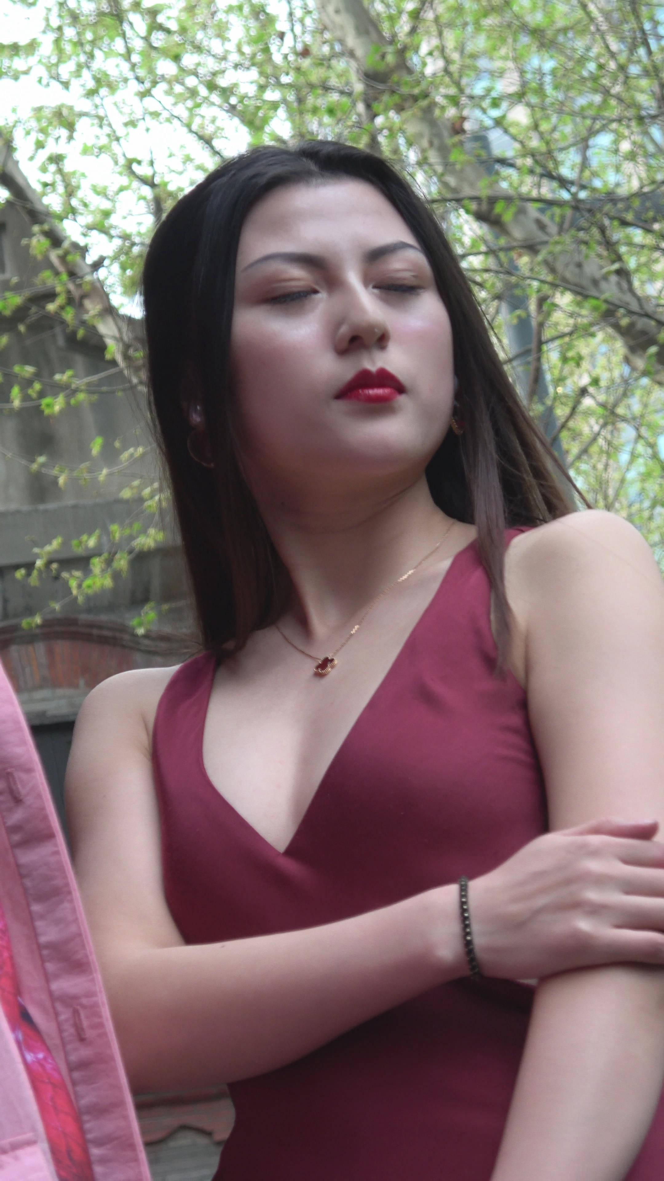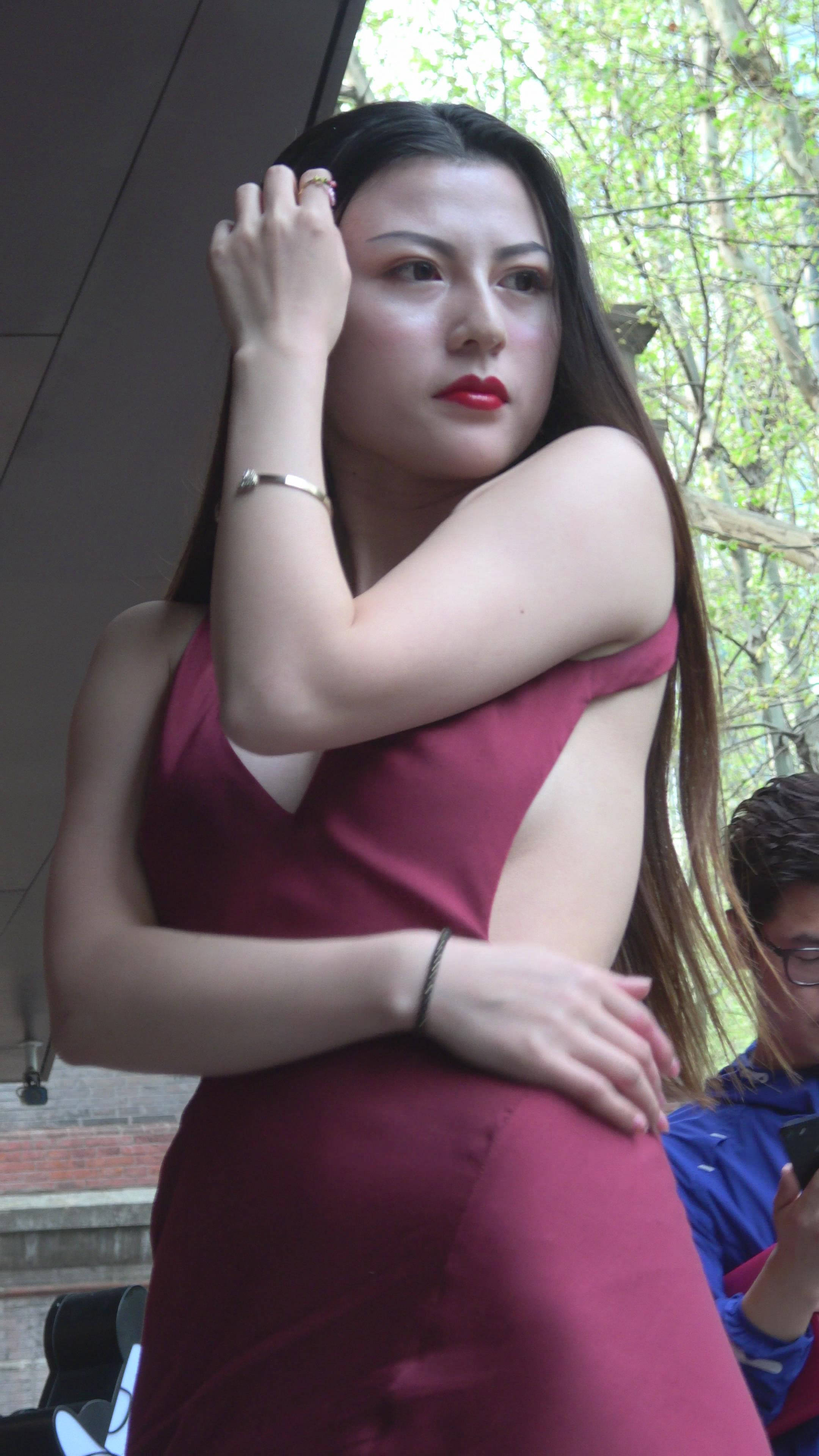 4K - 深V红裙街拍高跟性感美女摆拍 编号7759 |