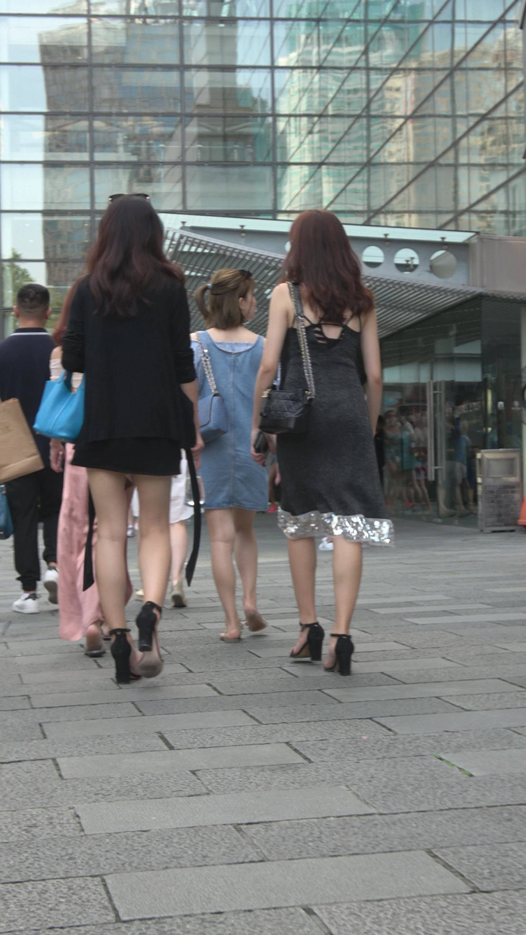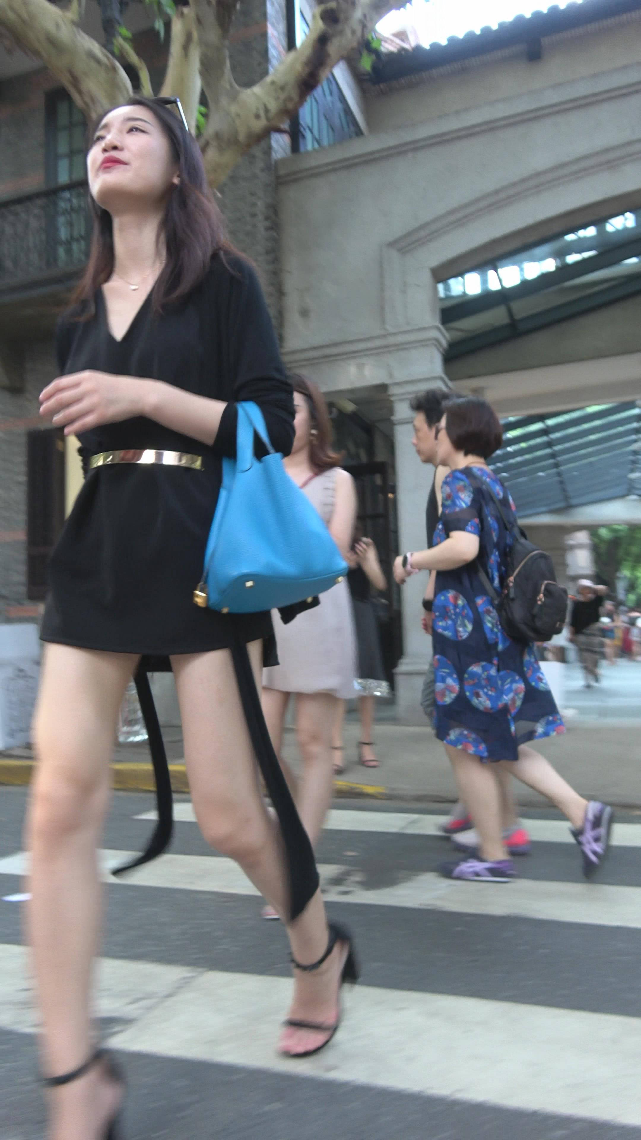 4K v领连衣裙性感美腿凉高跟街拍美女 编号7783 |