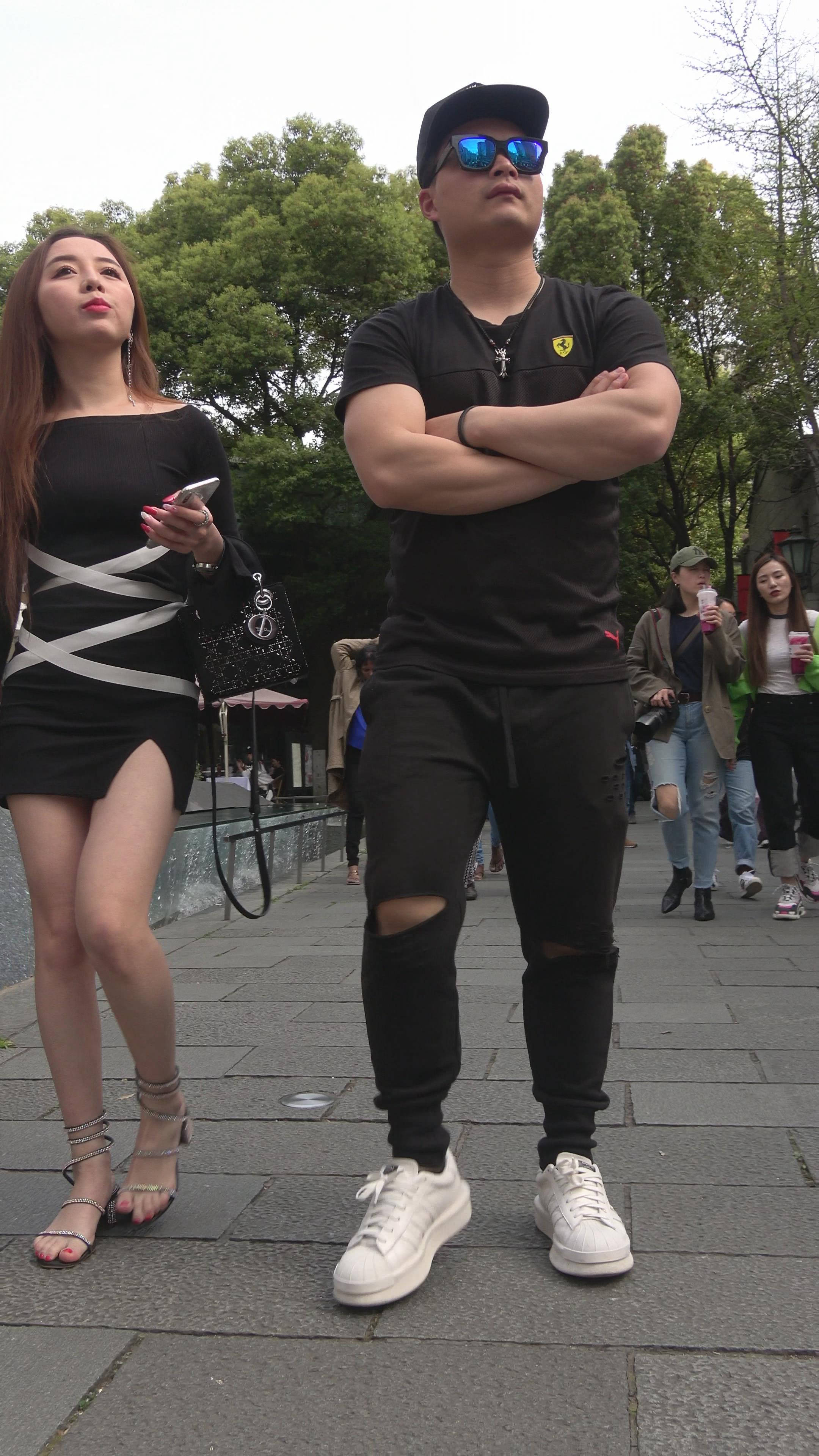 黑色包臀裙街拍美腿凉高跟MM 编号7807 |