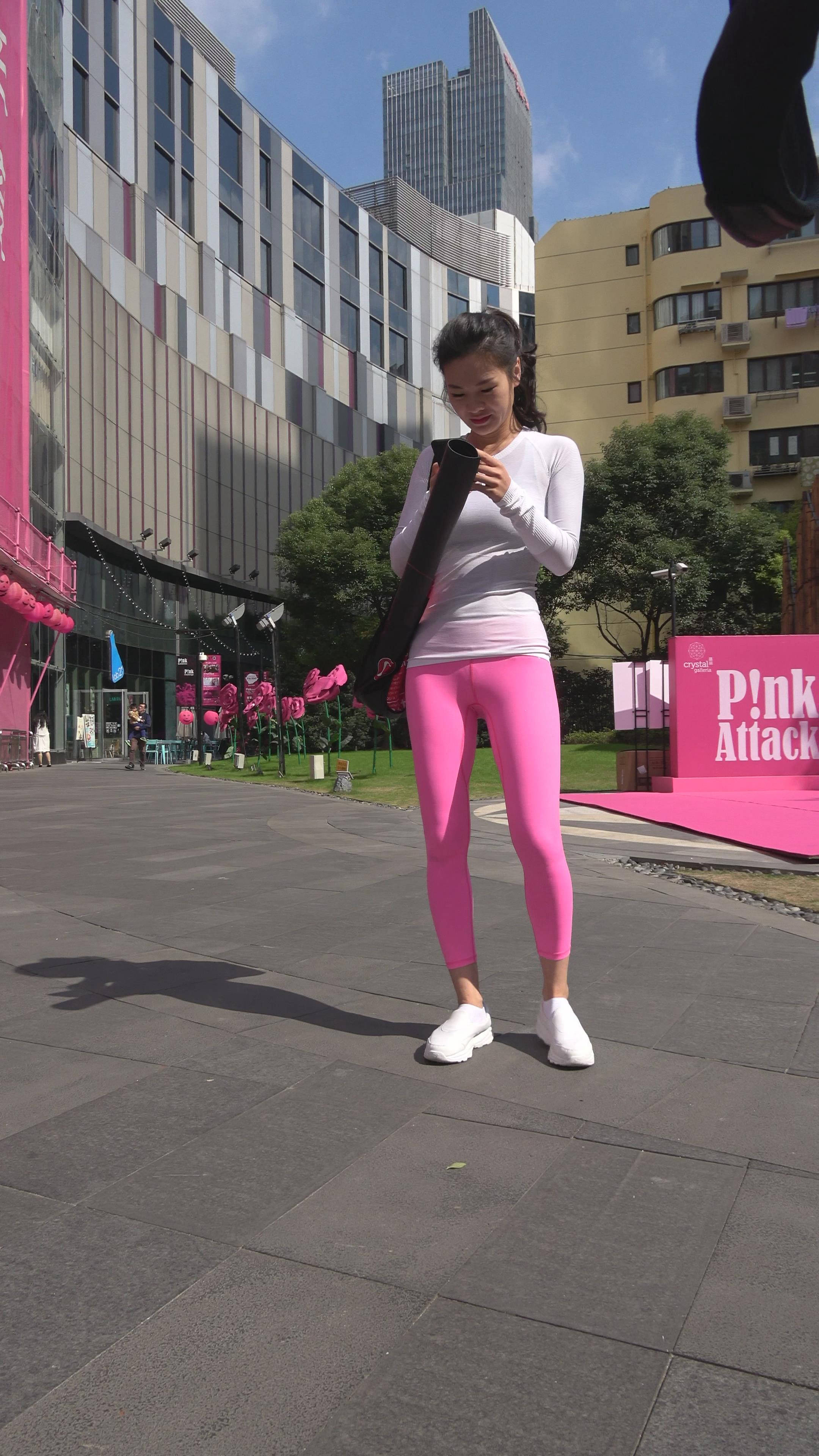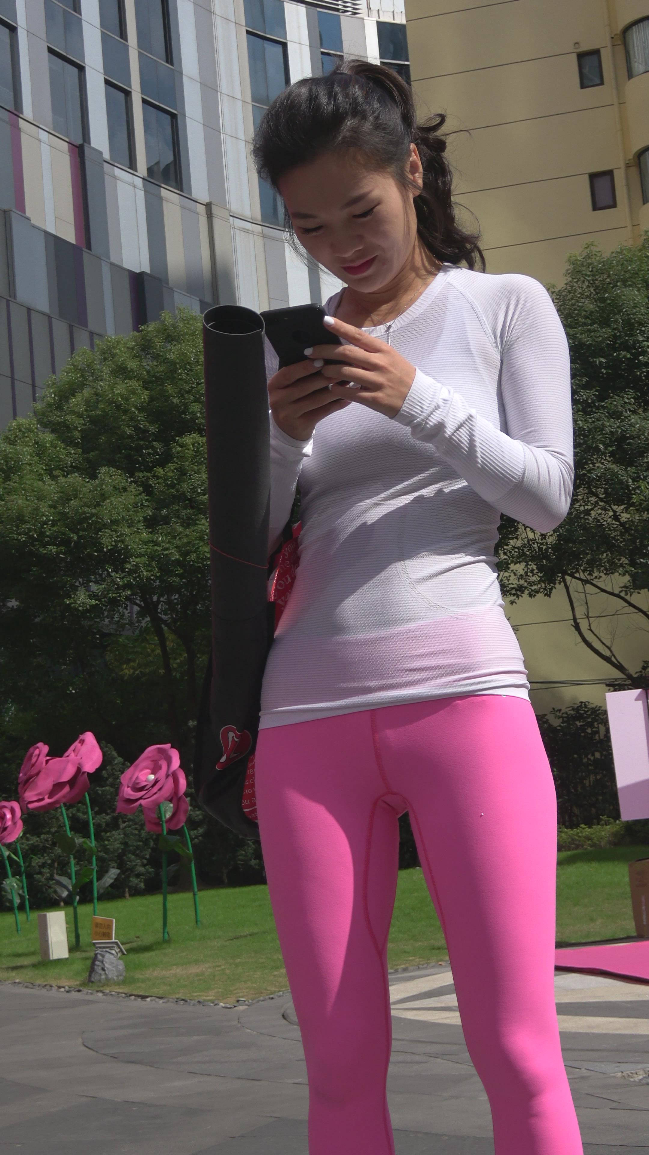 4K - 街拍紧身粉色瑜伽裤性感美女第二季 编号7838 |