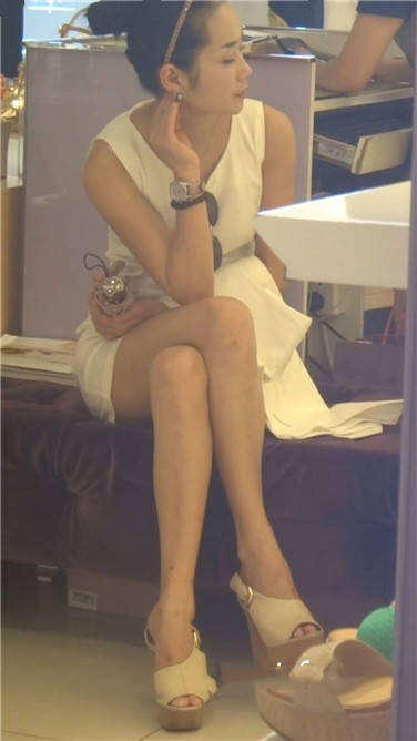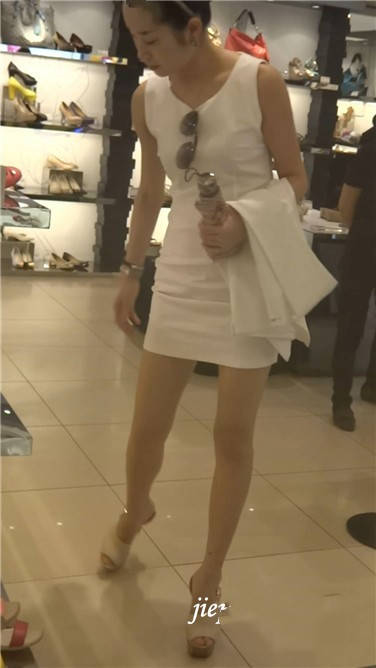 街拍白色连衣裙御姐美女鞋店试鞋 编号3670 |