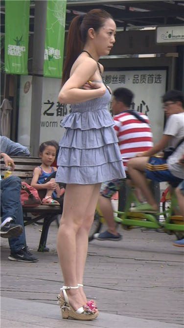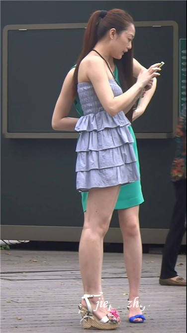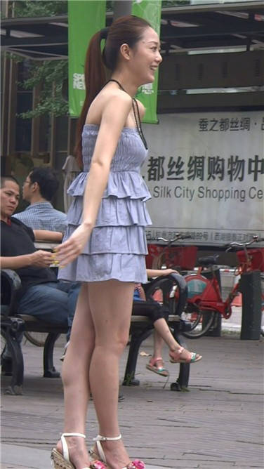 街拍抹胸连衣裙气质极佳坡高跟美女 编号3812 |