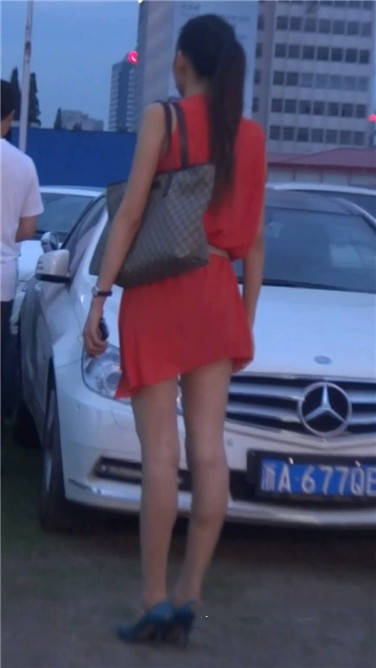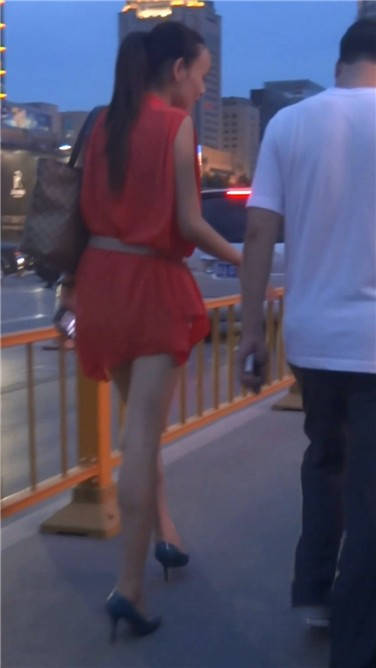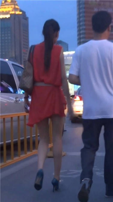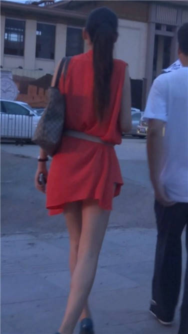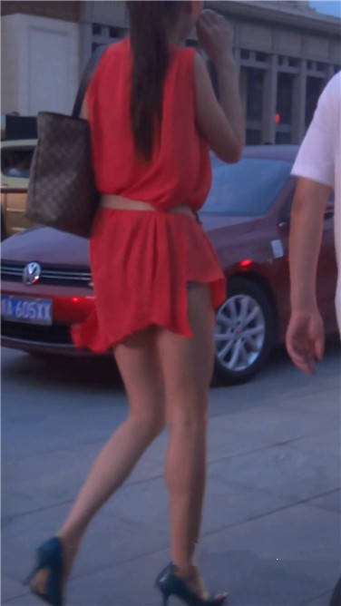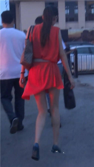 街拍红色连衣裙苗条美女姐姐 编号3832 |