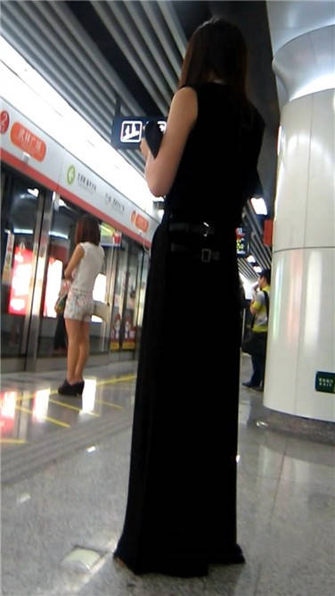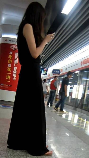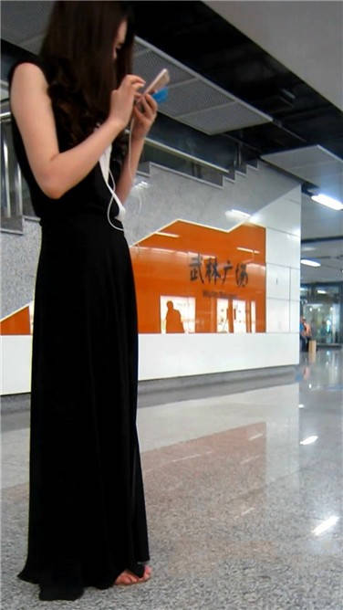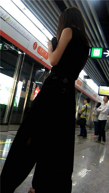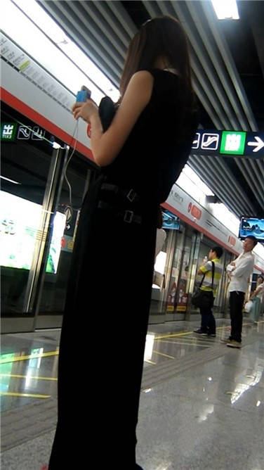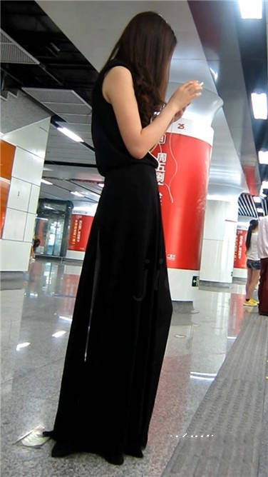 一席黑色长裙美眉在等地铁 编号3870 |