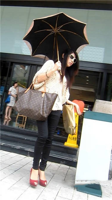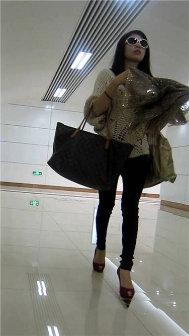 街拍高跟鞋黑色紧身裤墨镜漂亮女孩 编号3905 |