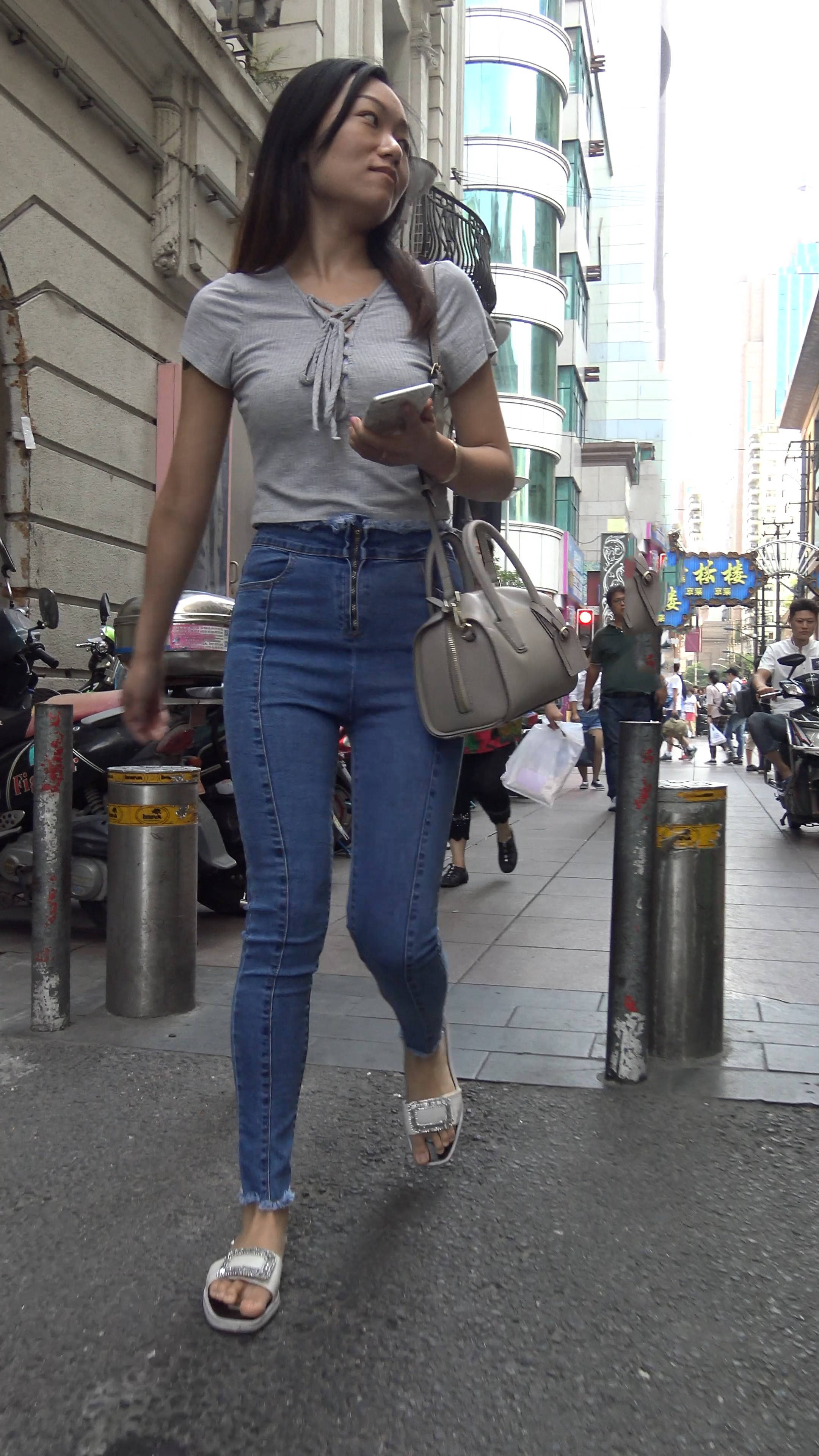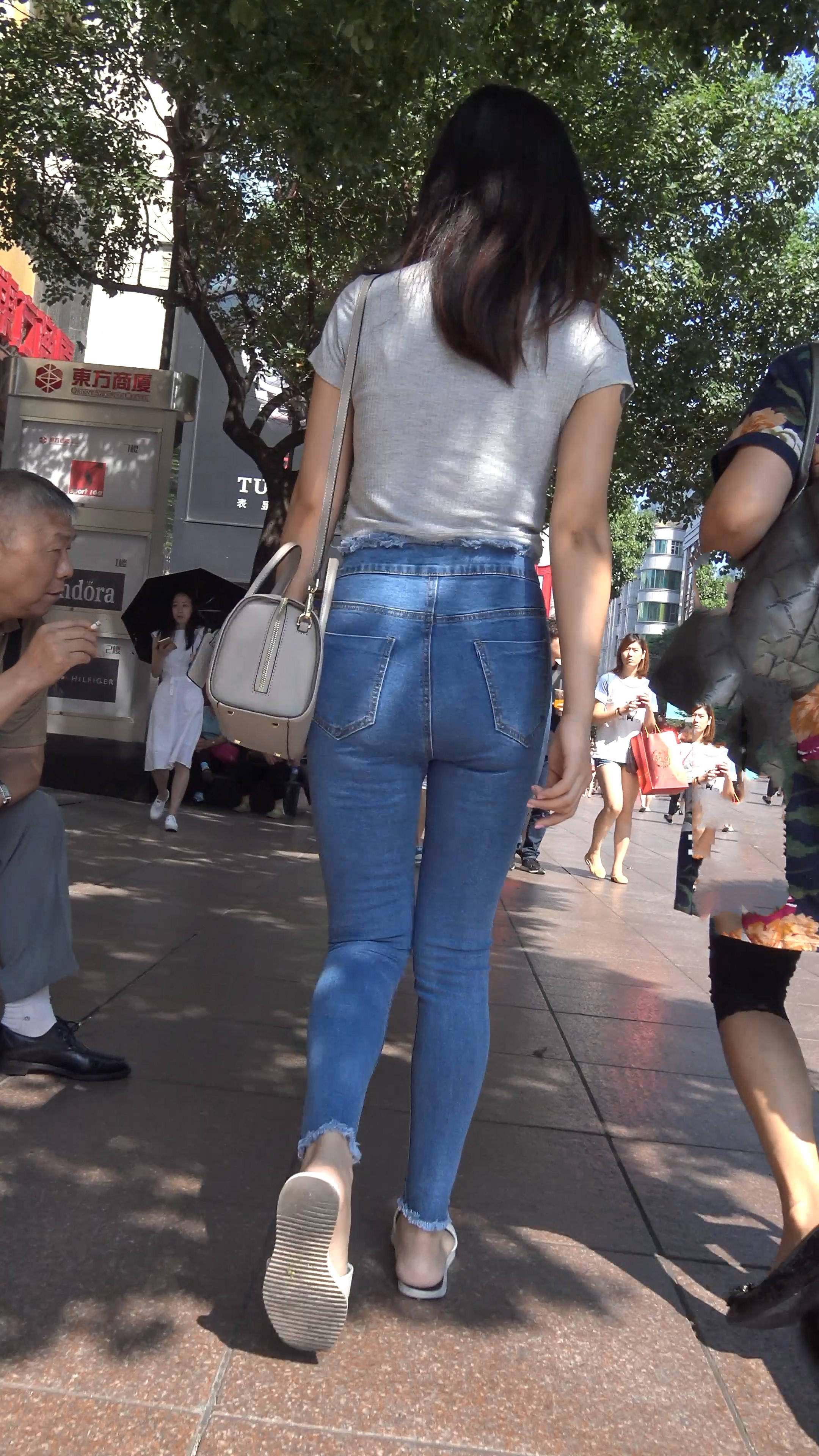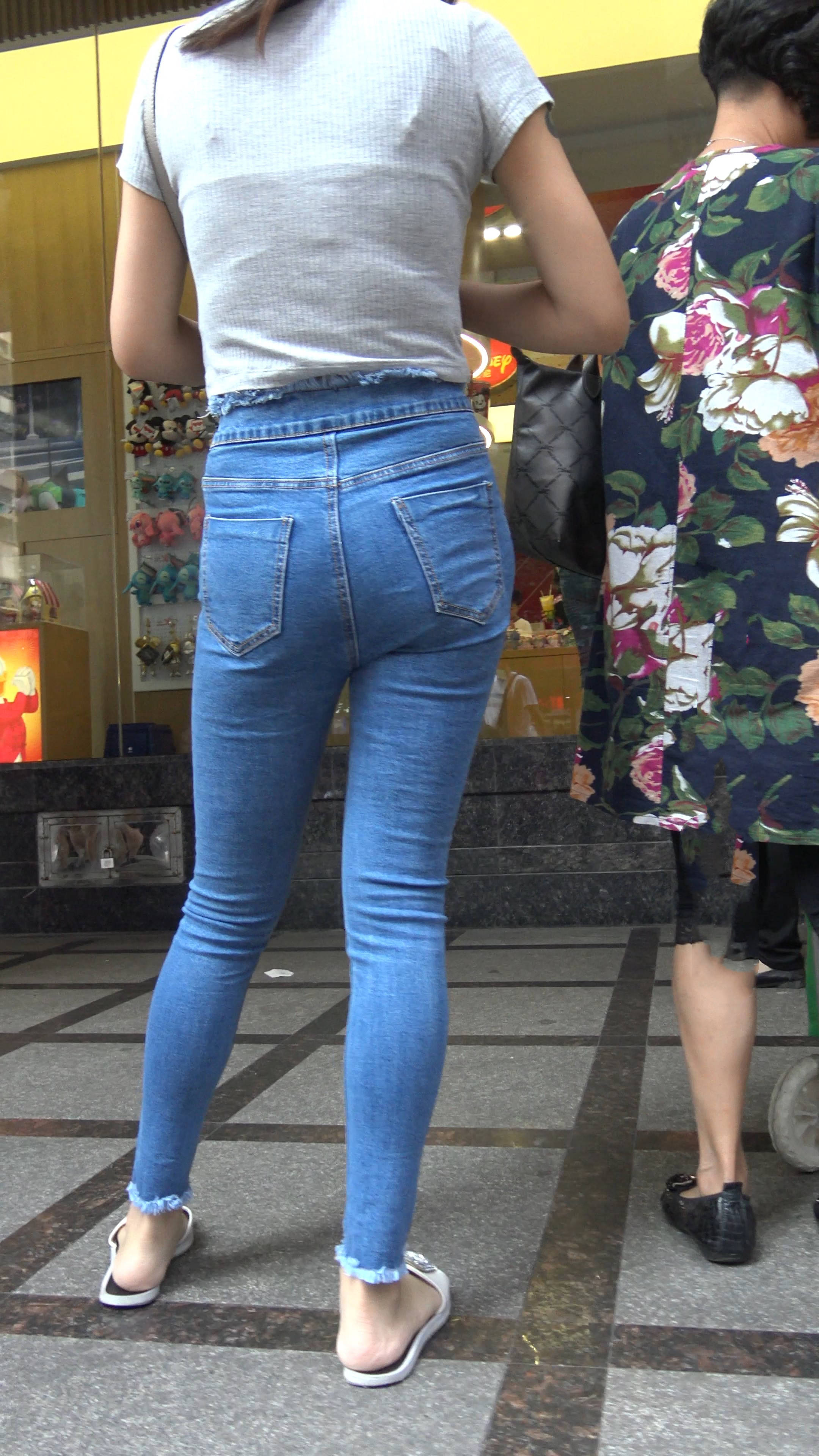 4k-街拍紧身蓝色牛仔裤丰满美女 编号7943 |