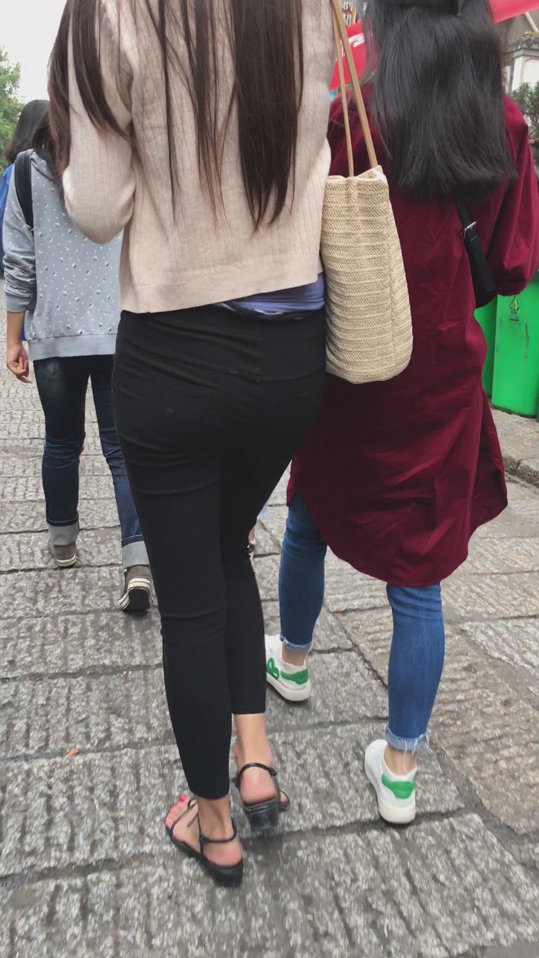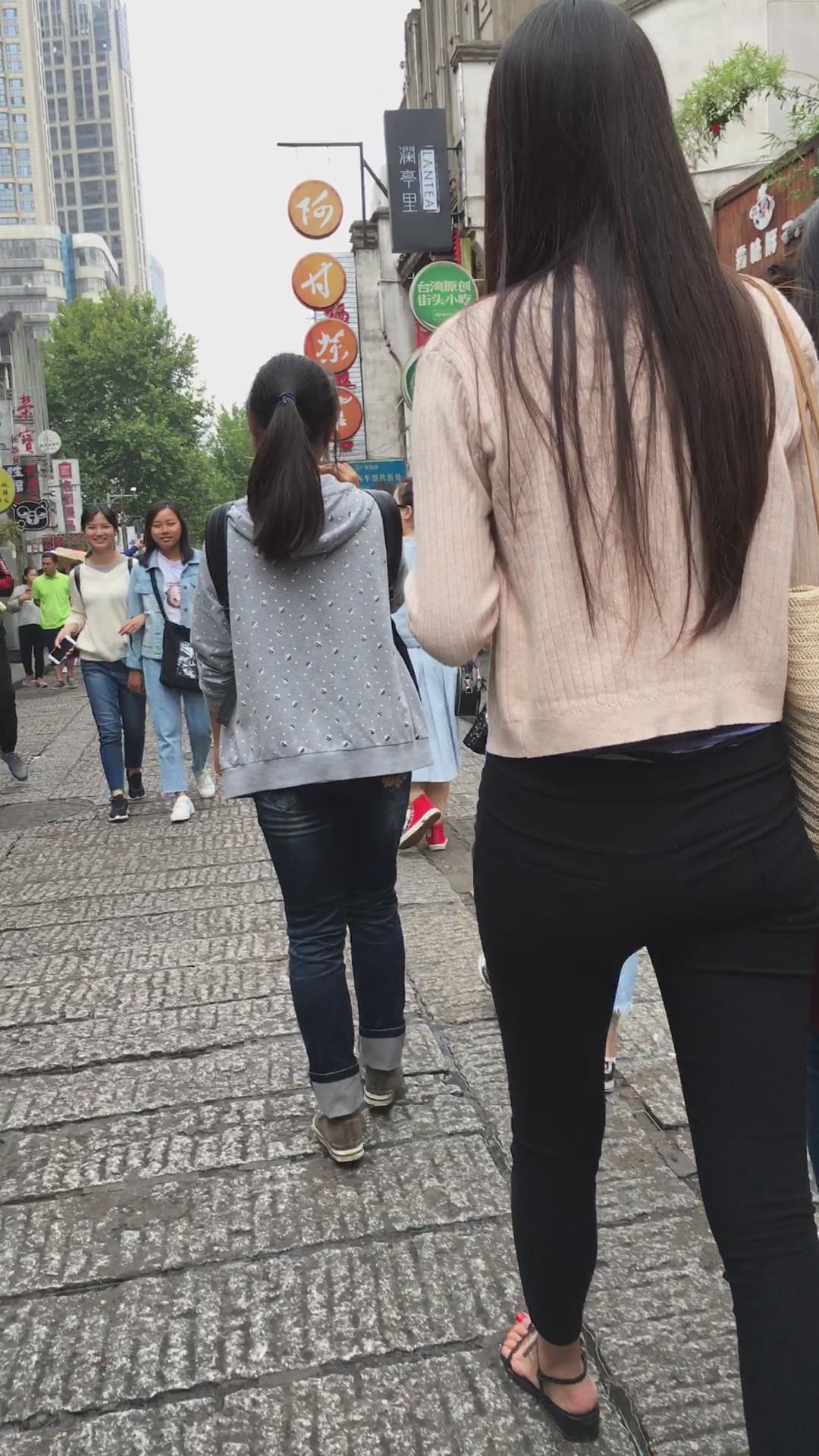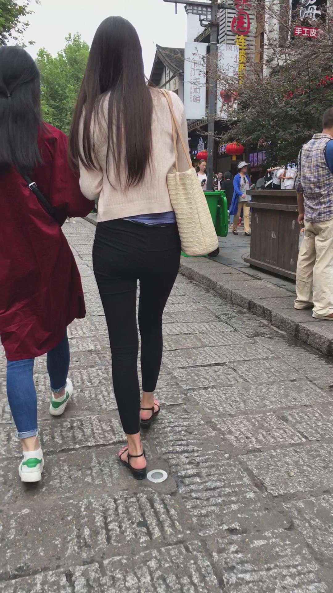 街拍米色小外套黑色紧身裤街拍美女视频 编号6074 |