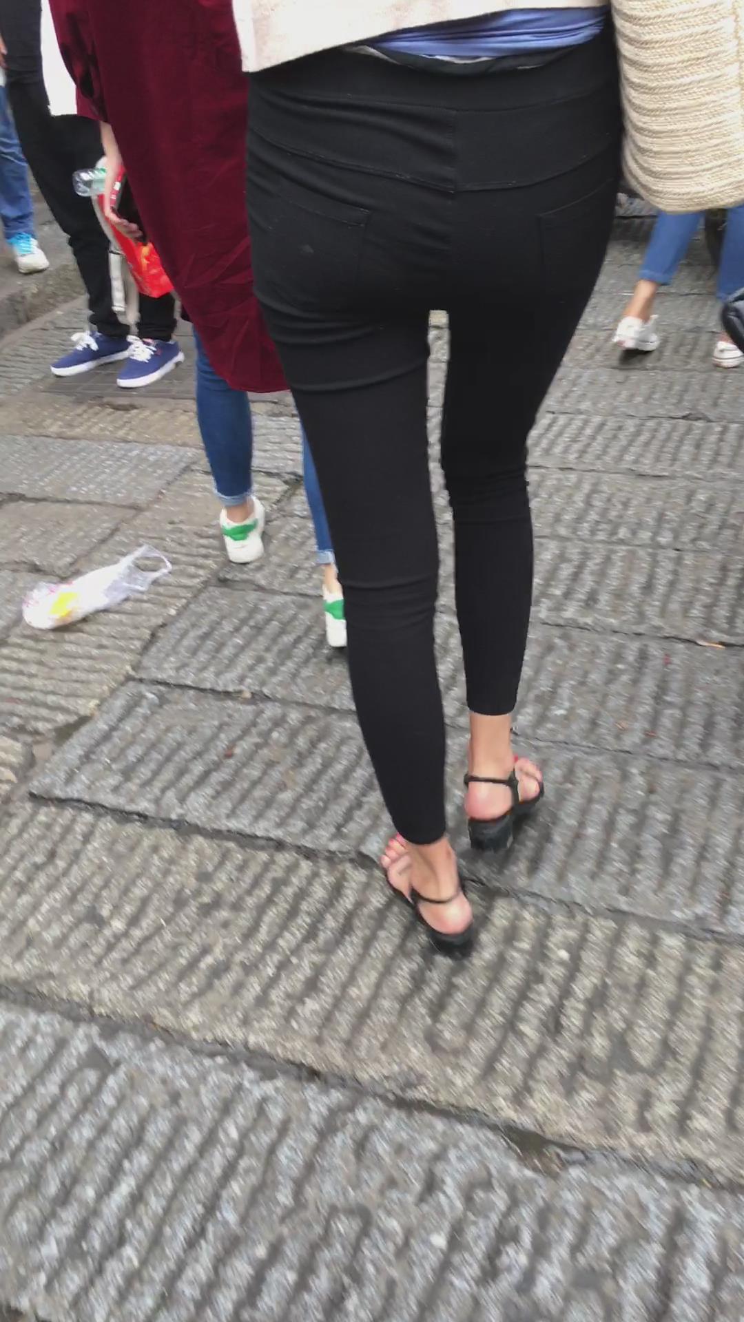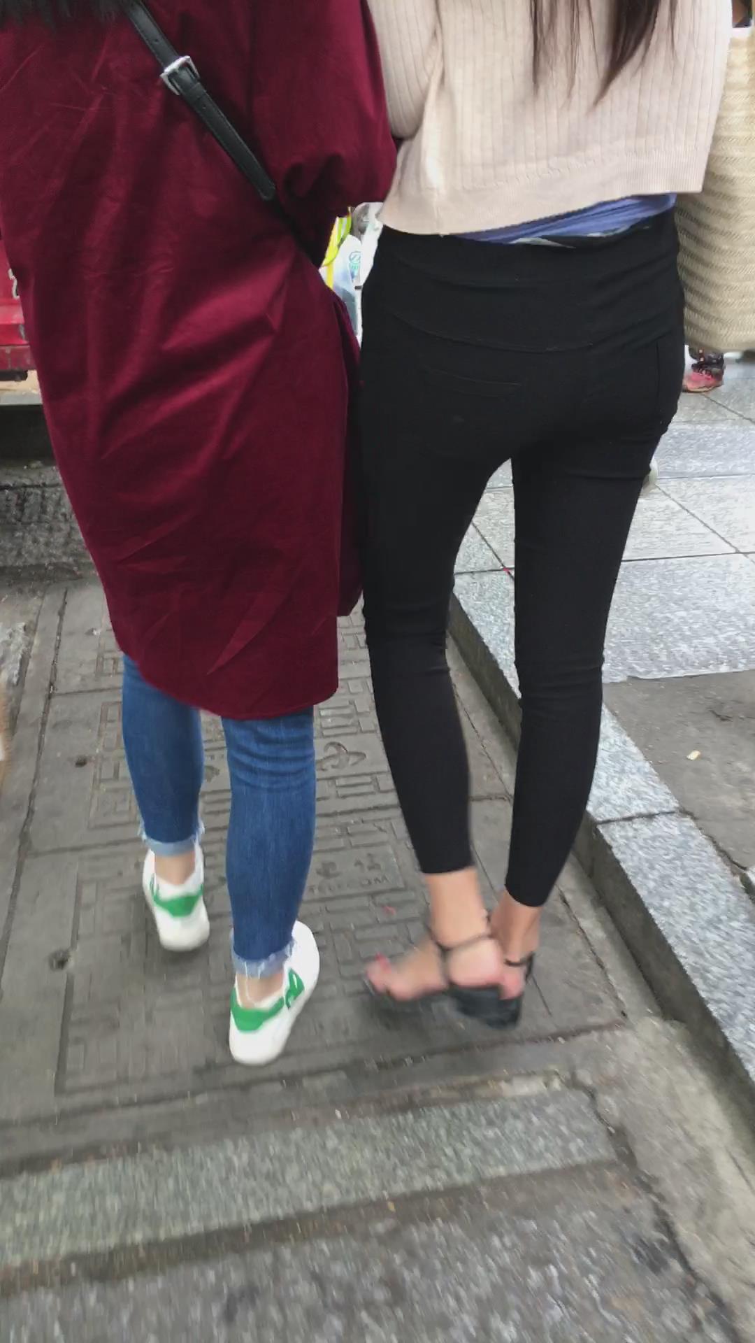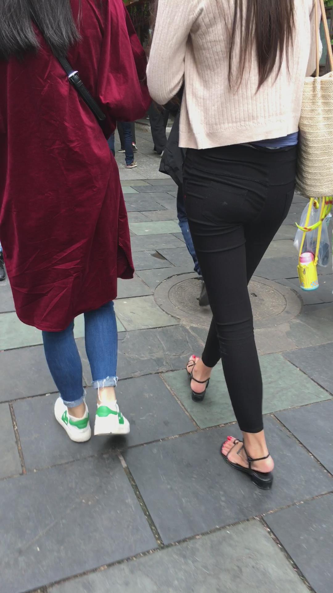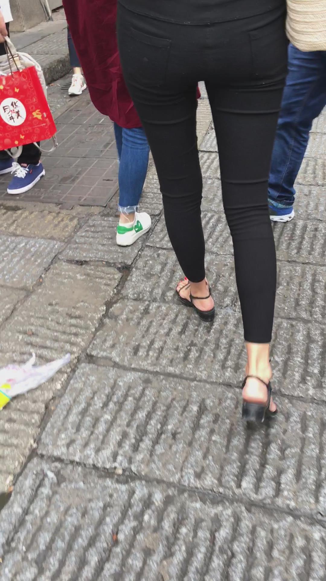 街拍米色小外套黑色紧身裤街拍美女视频 编号6074 |