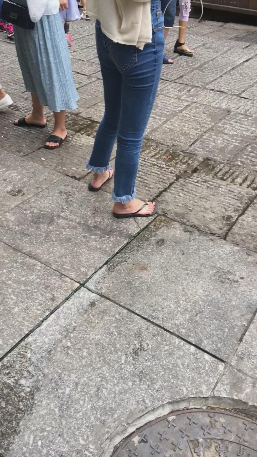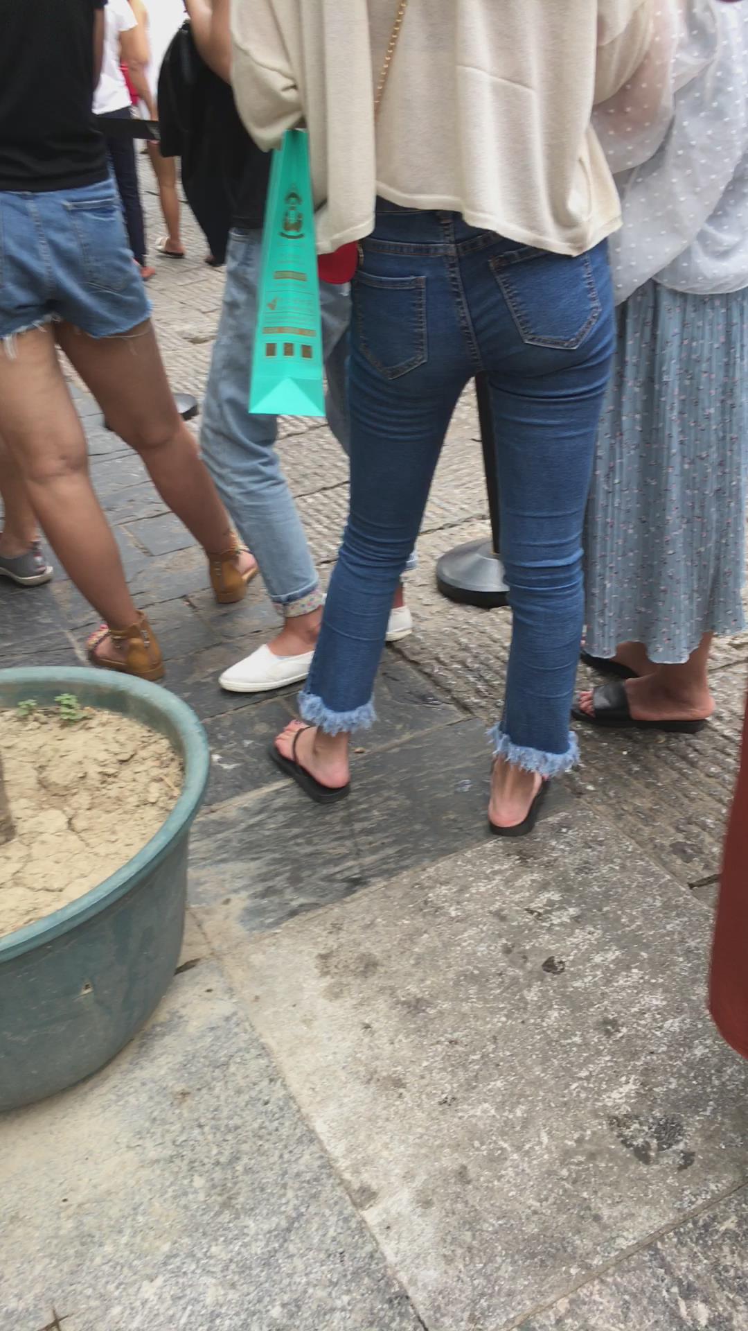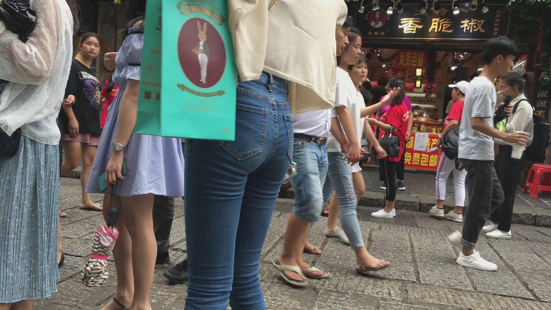 街拍清纯紧身蓝色牛仔裤可人娇小美女 编号6083 |